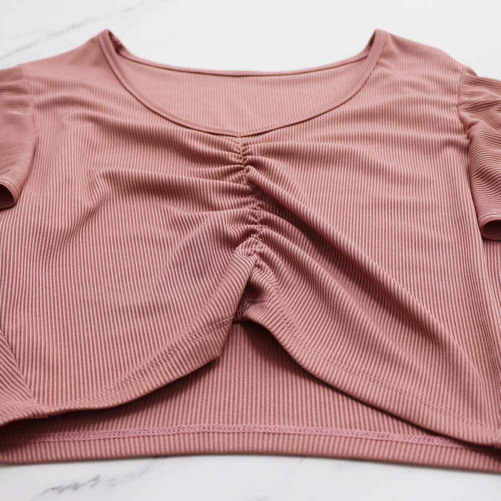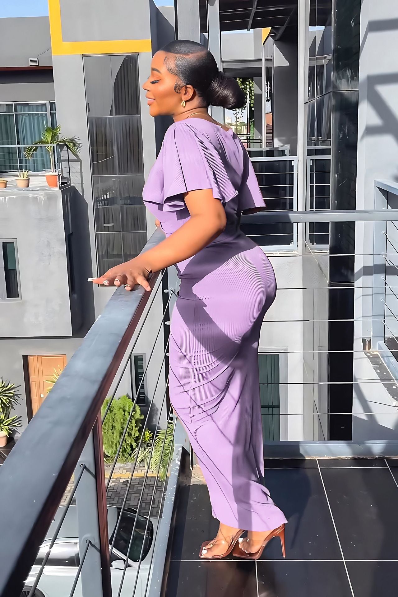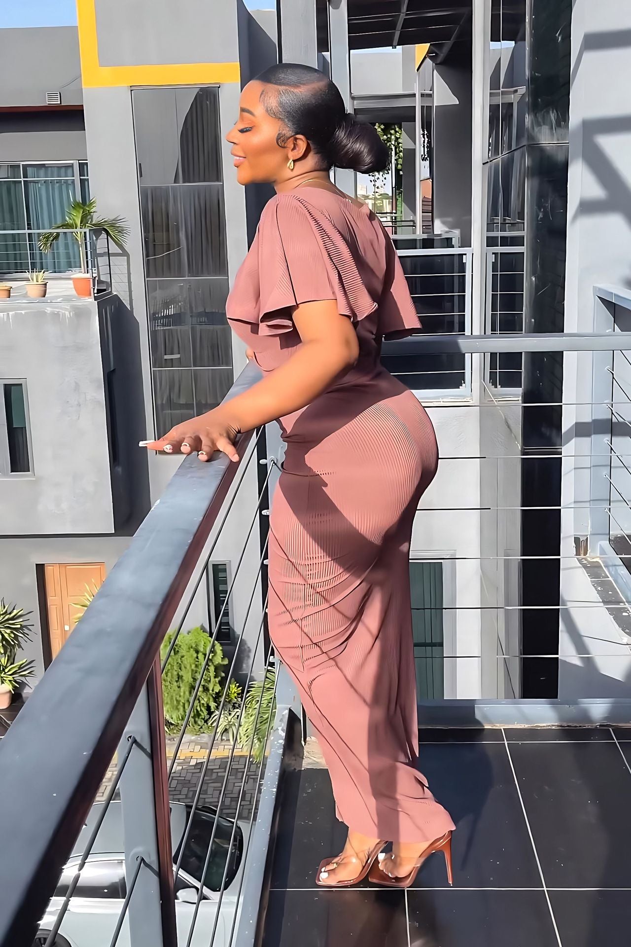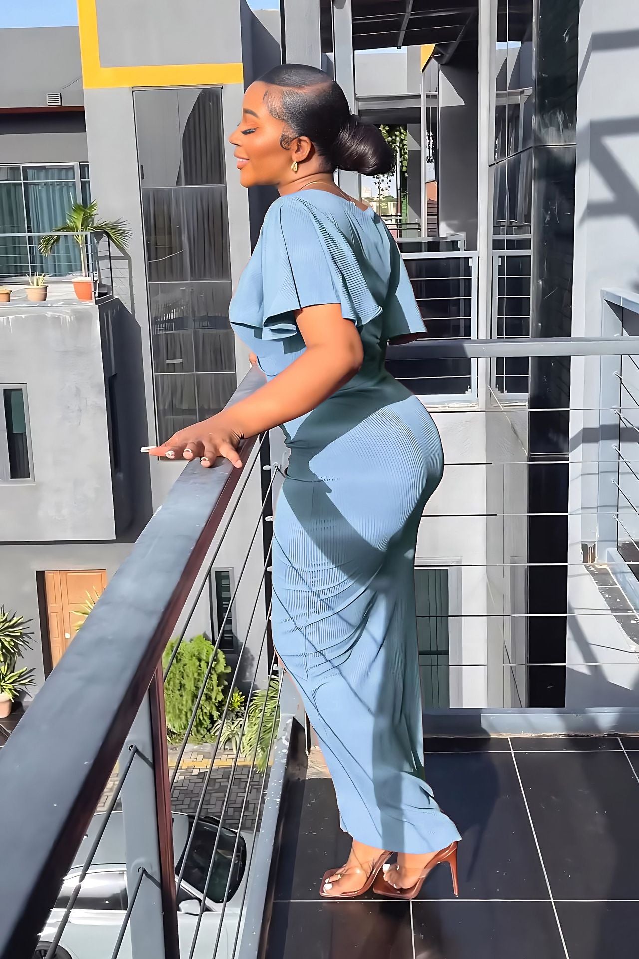 Ruffle Sleeve Cropped V neck Top Split Sheath Dress Summer Two Piece Set