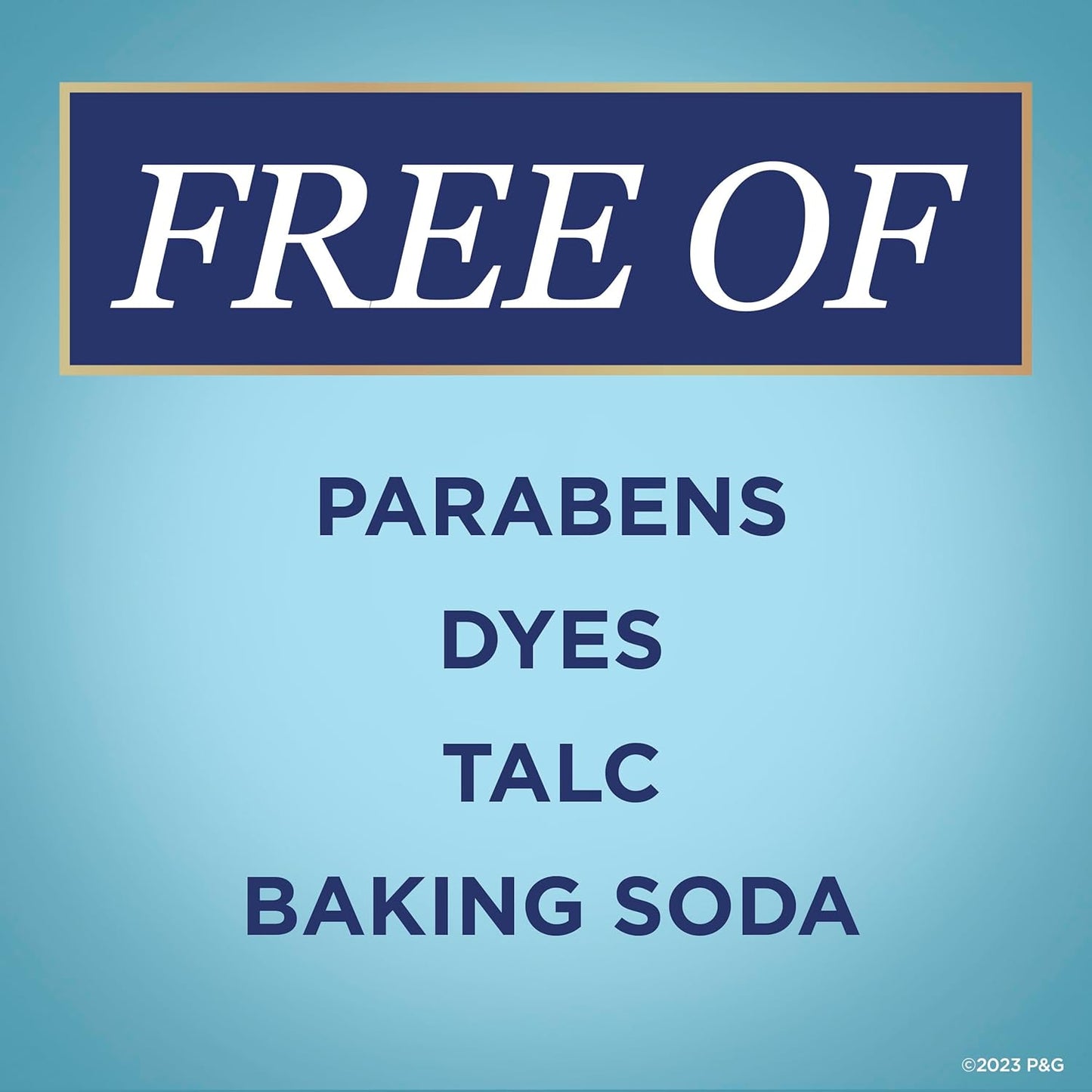 FREE OF ALUMINUM SALTS, PARABENS, DYES, & TALC - Allowing you to stay fresh without compromising on ingredients.