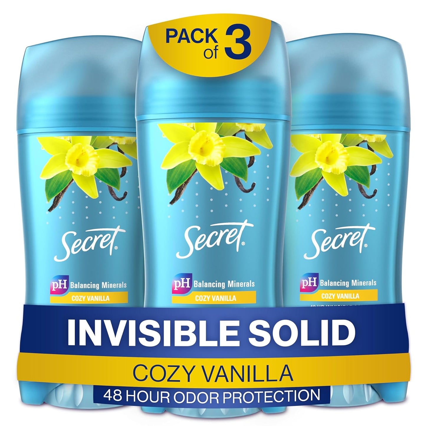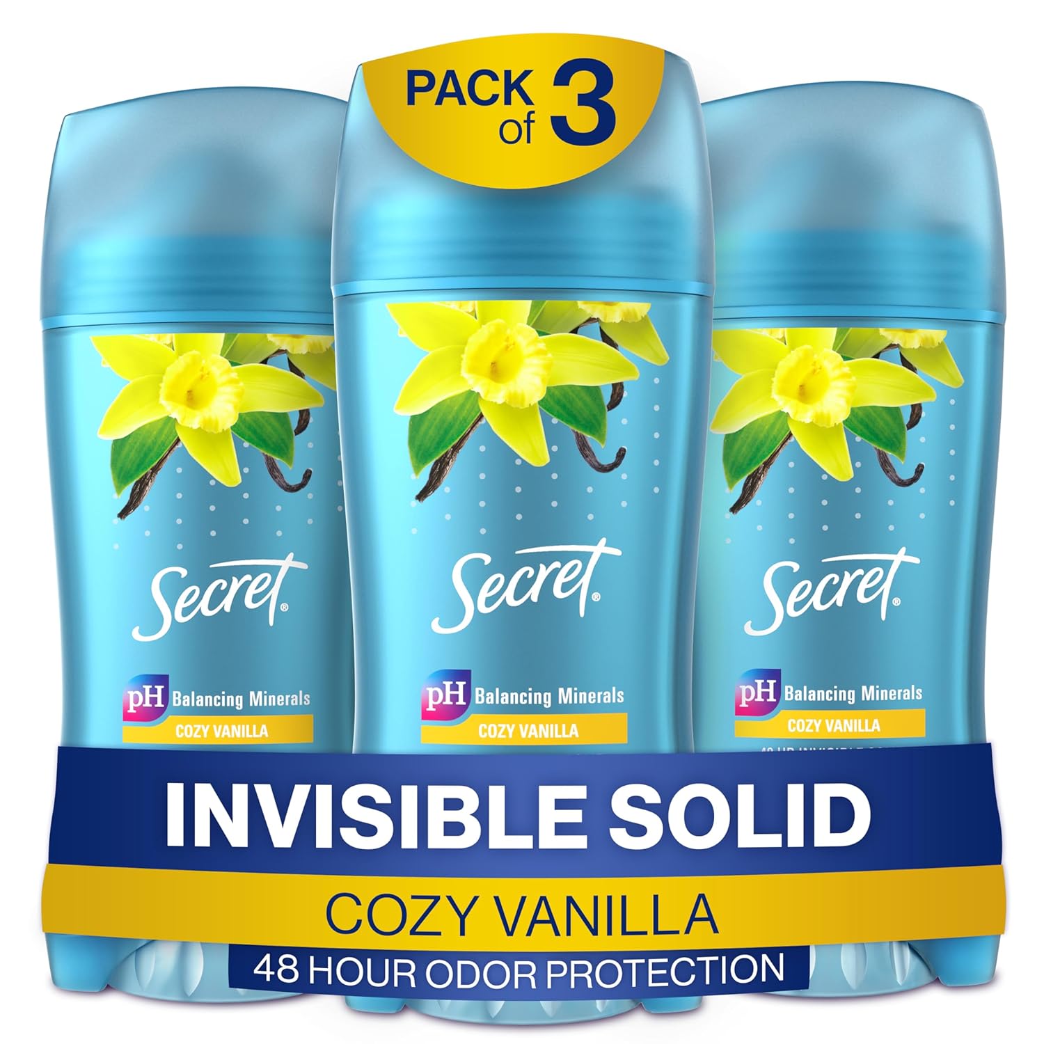 Secret Antiperspirant and Deodorant for Women, 48 Hr Invisible Solid Vanilla Scent 2.6 oz (Pack of 3)
