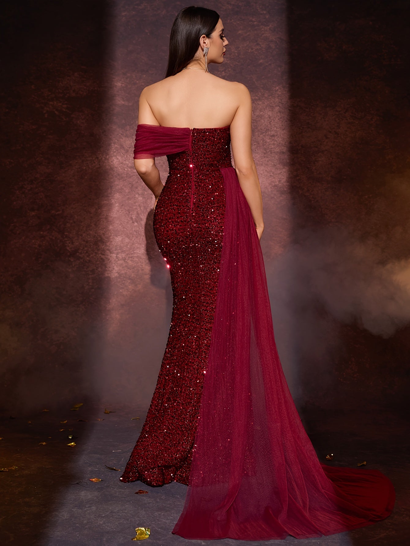 Sequined Off-Shoulder Fitted Dress - Accentuates Waist, Perfect for Parties, Formal Events, Stylish and Elegant