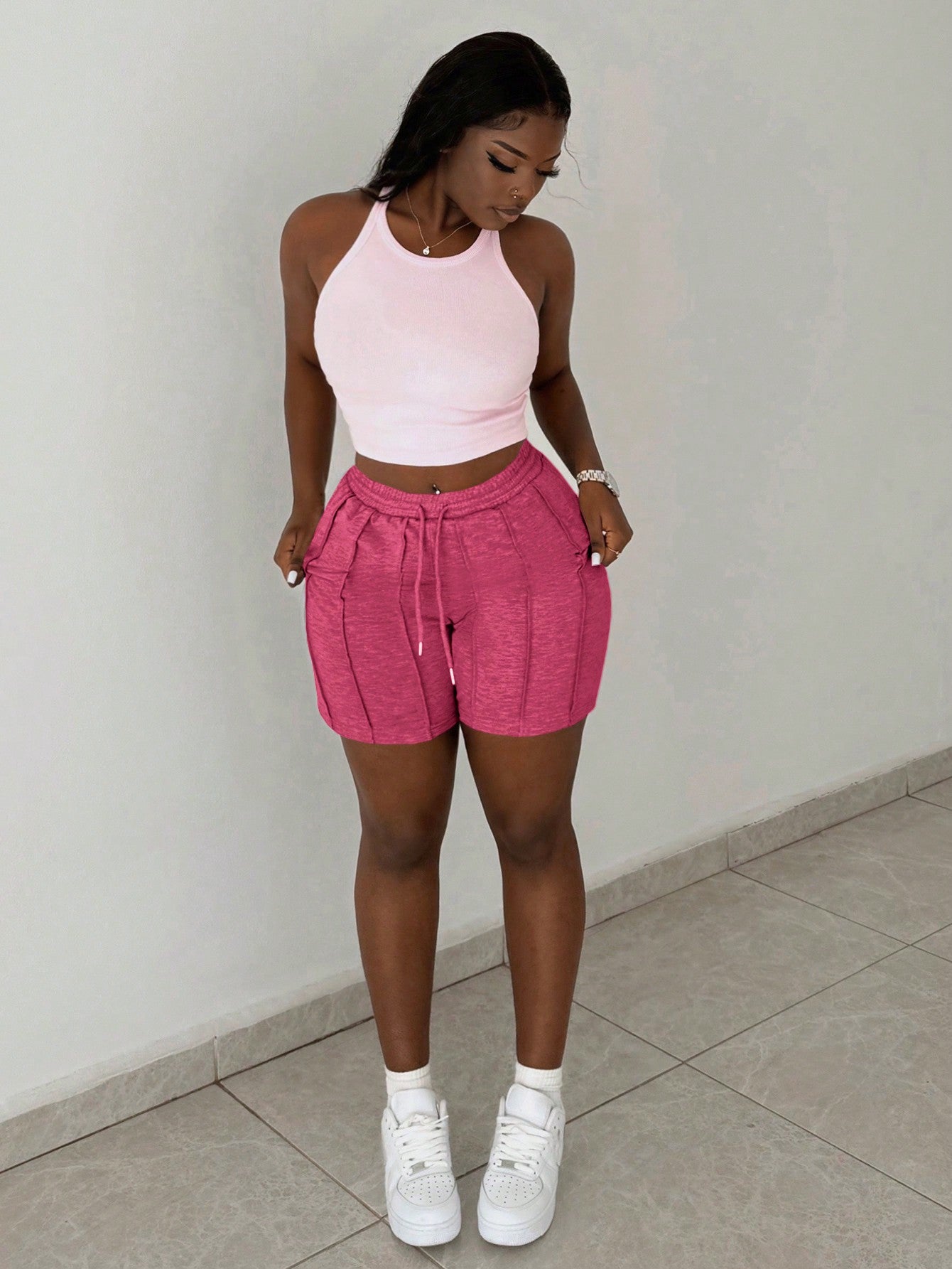 Slaydiva Summer Casual Sports Front Toothpick Pleat Design Five-Quarter Pants Cycling Pants Sweatpants Light Gray Women's Shorts