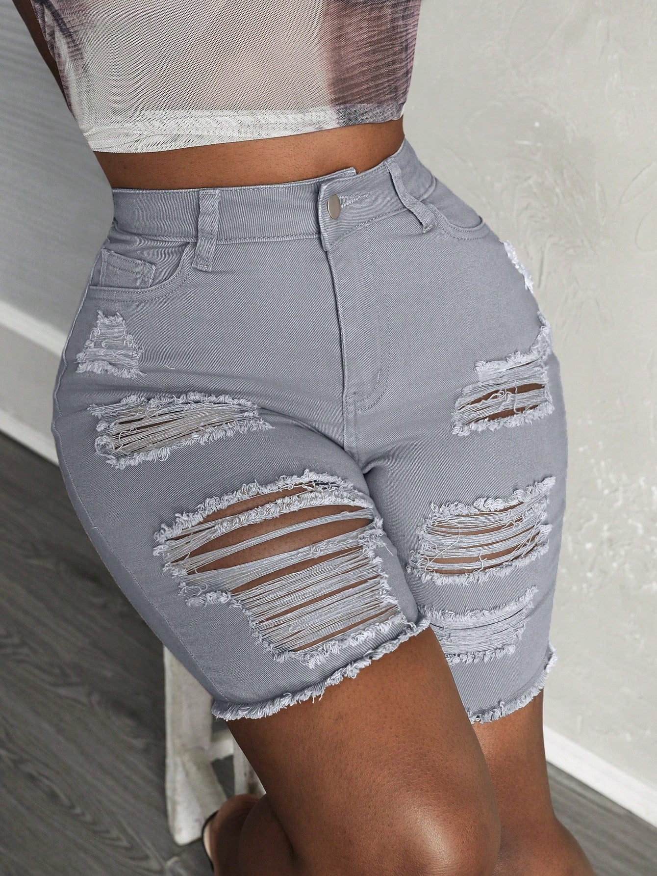 Slayr Women's Slim Fit Casual Denim Shorts With Distressed Pocket Detail