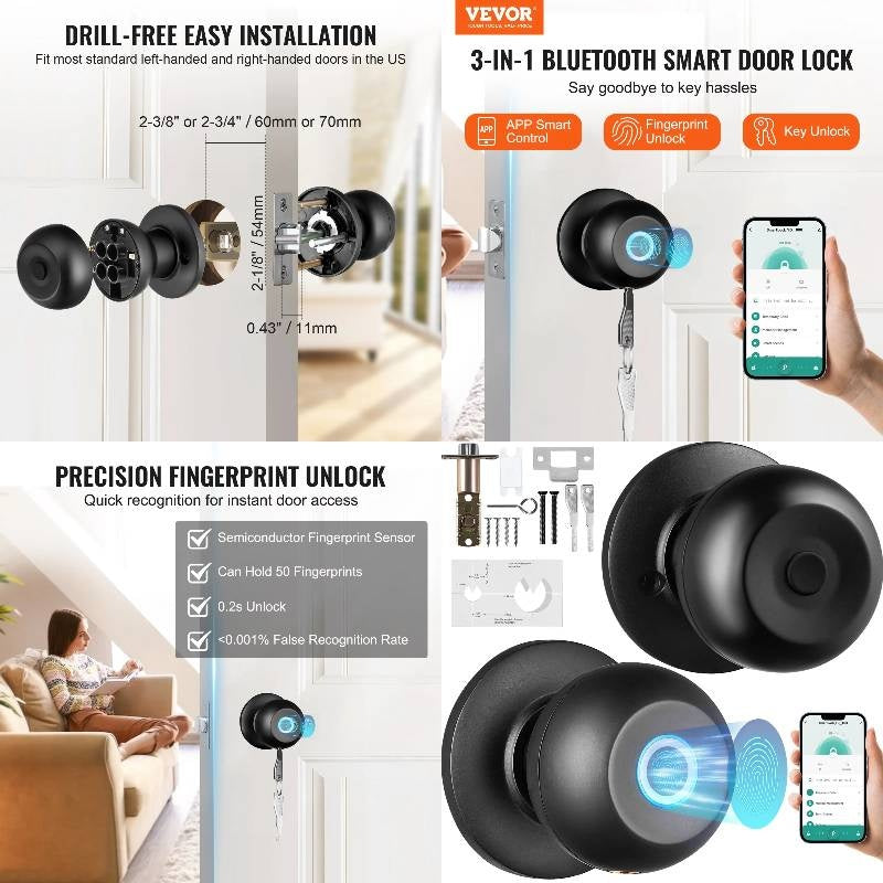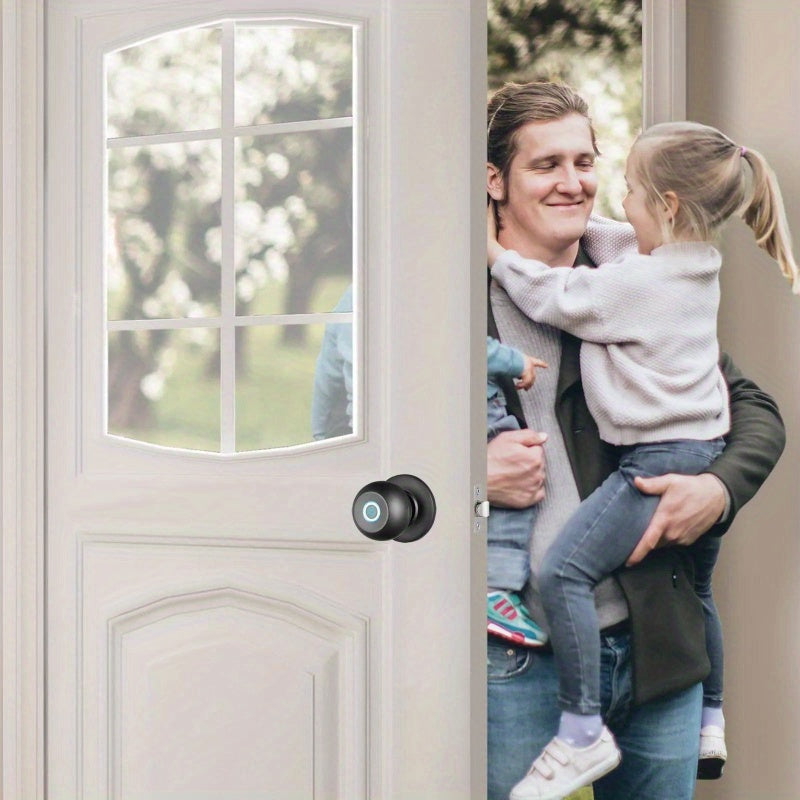 Smart Door Knob with Biometric Fingerprint Lock - Wireless Door Lock, App Control, Easy Installation, Battery-Powered (Non-Rechargeable) - for Home, Office, Hotel, Apartment - Compatible with US Standard Doors - Modern Black Design, Smart Locks for Entry