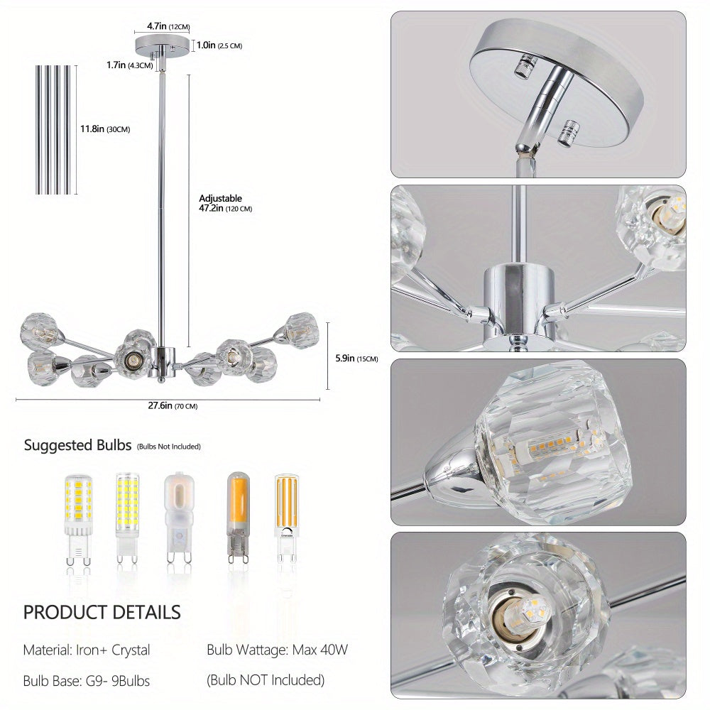 High Quality Sofucor 27.6-Inch Modern Crystal Chandeliers, 9 Lights Chrome Chandelier for Living Room Bedroom, Dining Room Chandelier Over Table, Kitchen Light Fixtures (Bulbs Not Included)