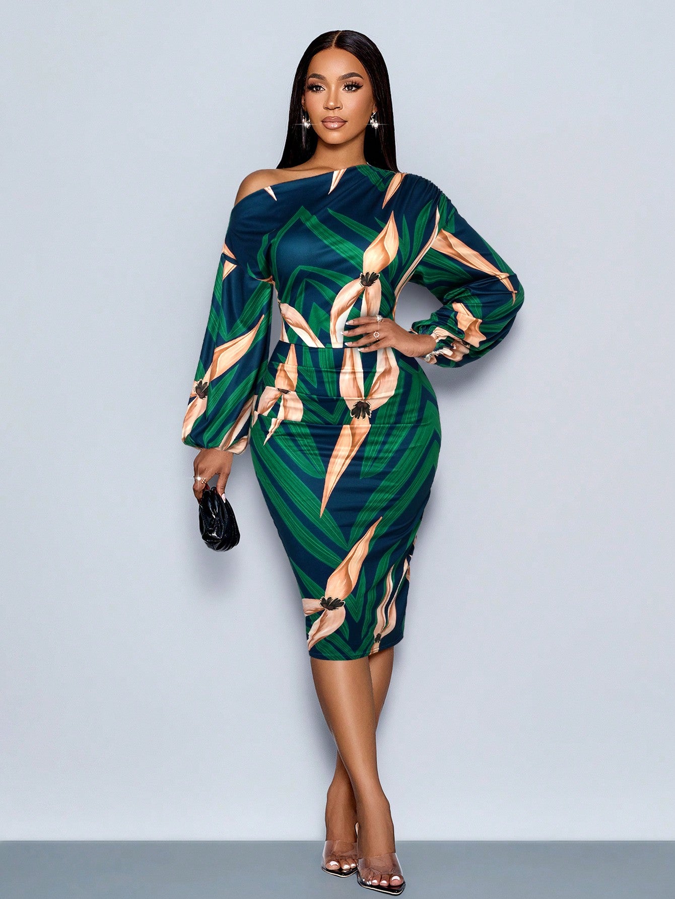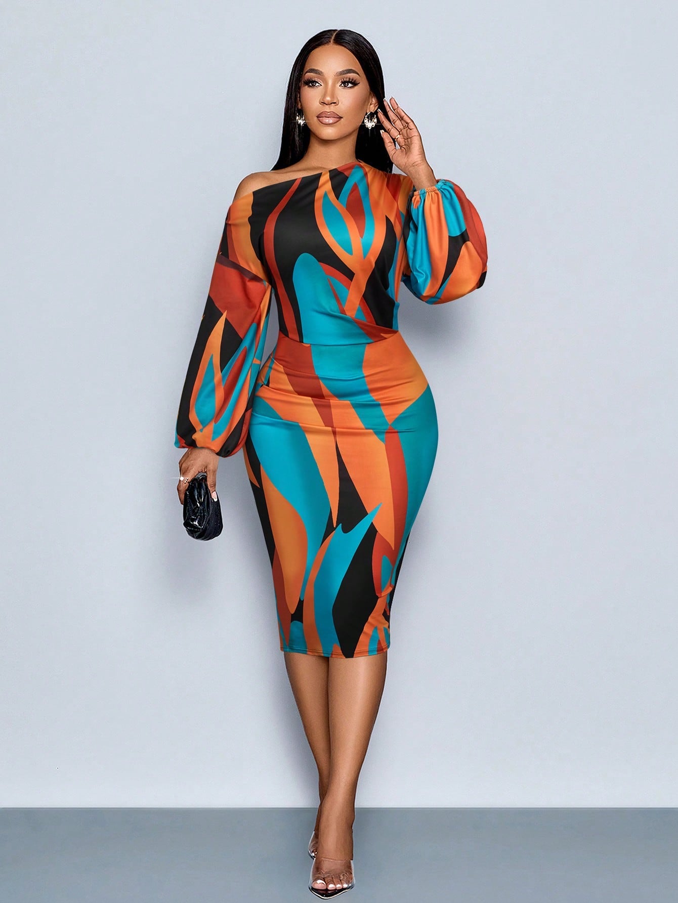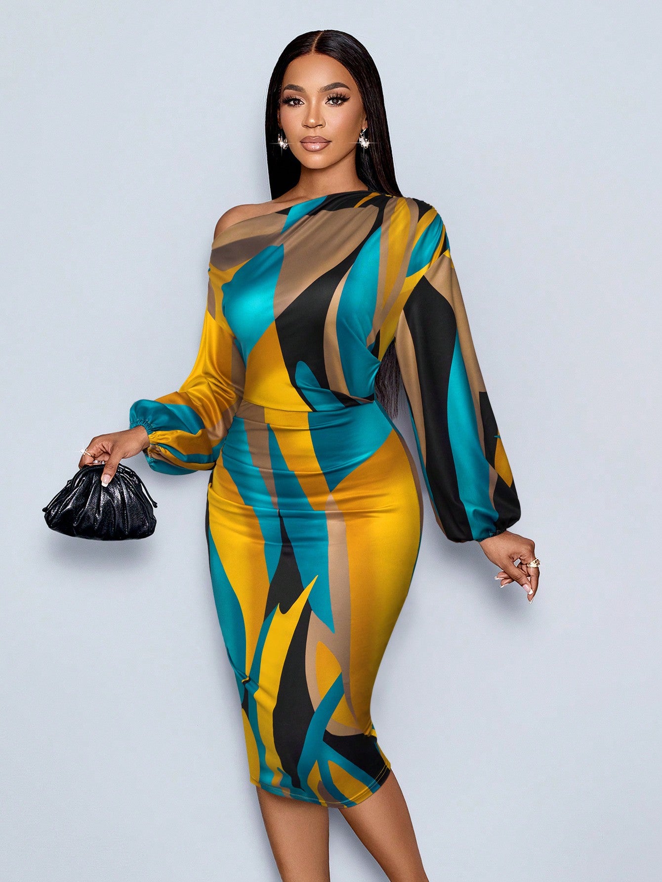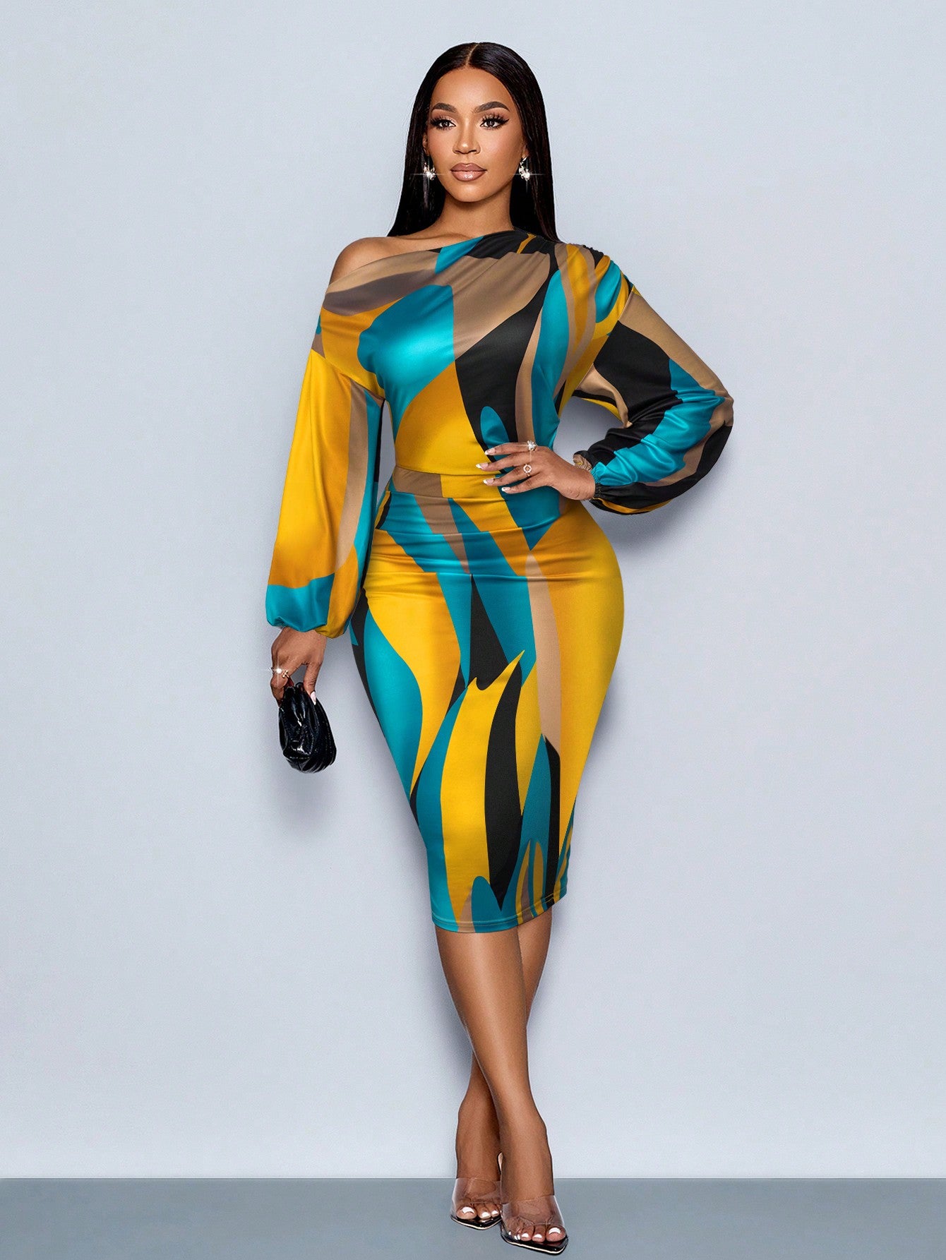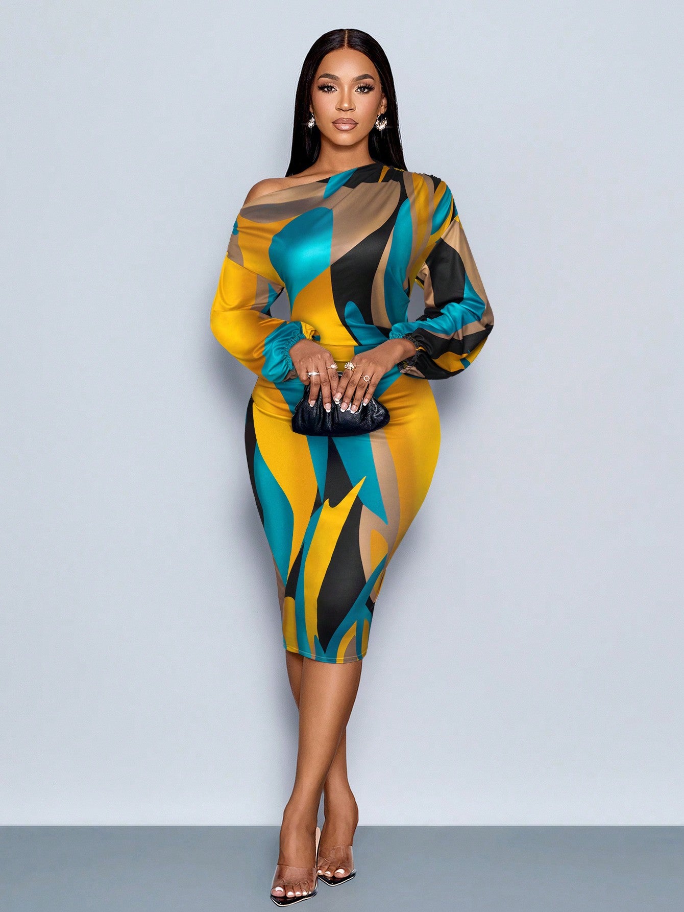 SOLERSUN Women's Winter Elegant New Year's Party Valentine's Day Ball Christmas French White Polka Dot Pattern Off Shoulder Long Sleeve Knitted Hip Cover Old Money Style New Year's Eve Sexy Casual Women's Midi Dress
