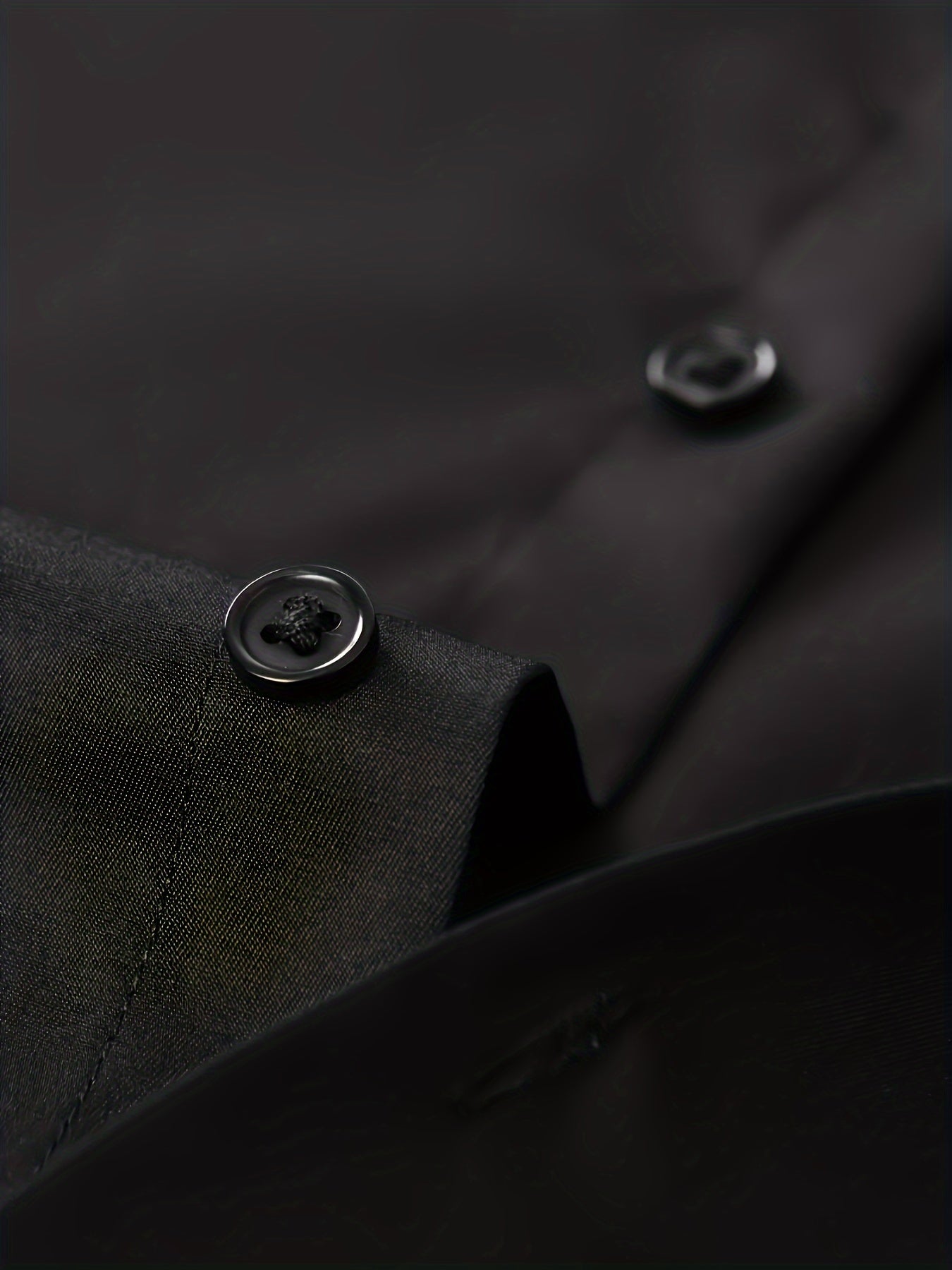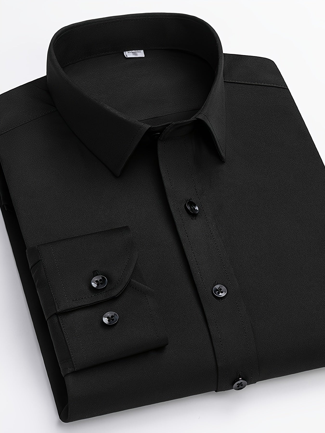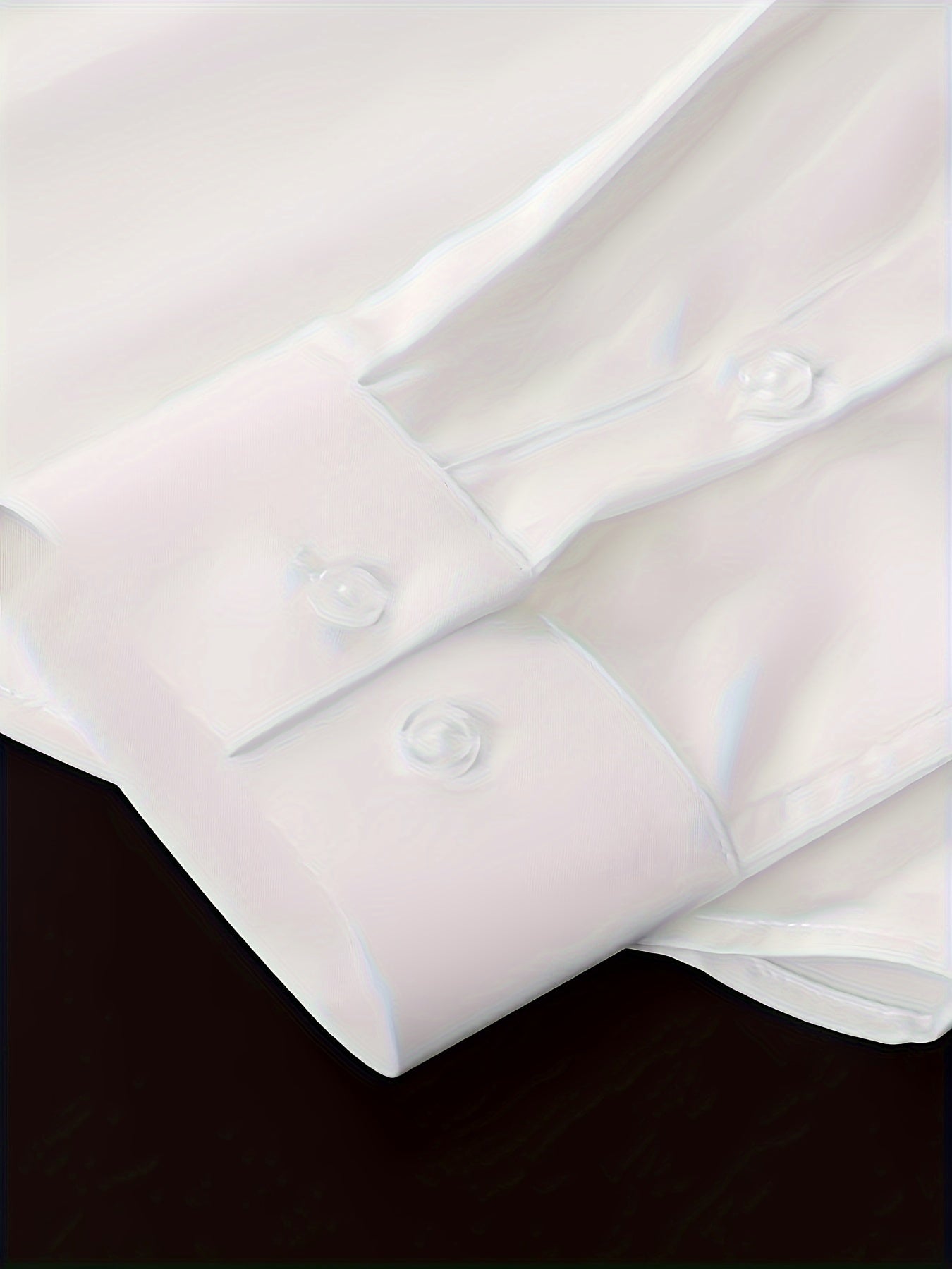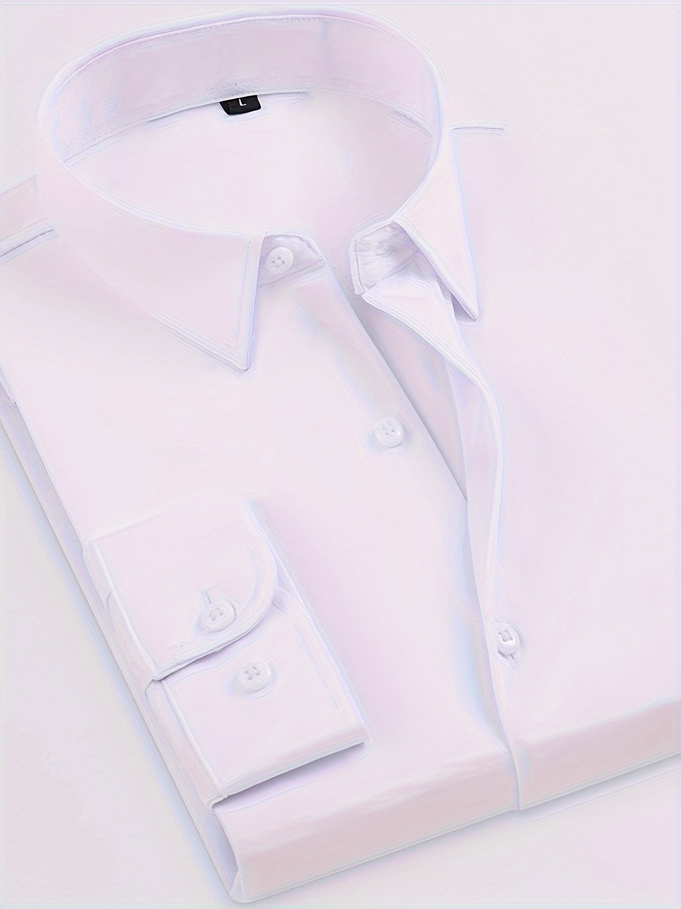 [Solid Color Polyester Dress Shirts] 2pcs Men's Solid Color Polyester Dress Shirts - Regular Fit, Long Sleeve, Lapel Collar, Slight Stretch Fabric, with Button Details, for All-Season Woven Shirting