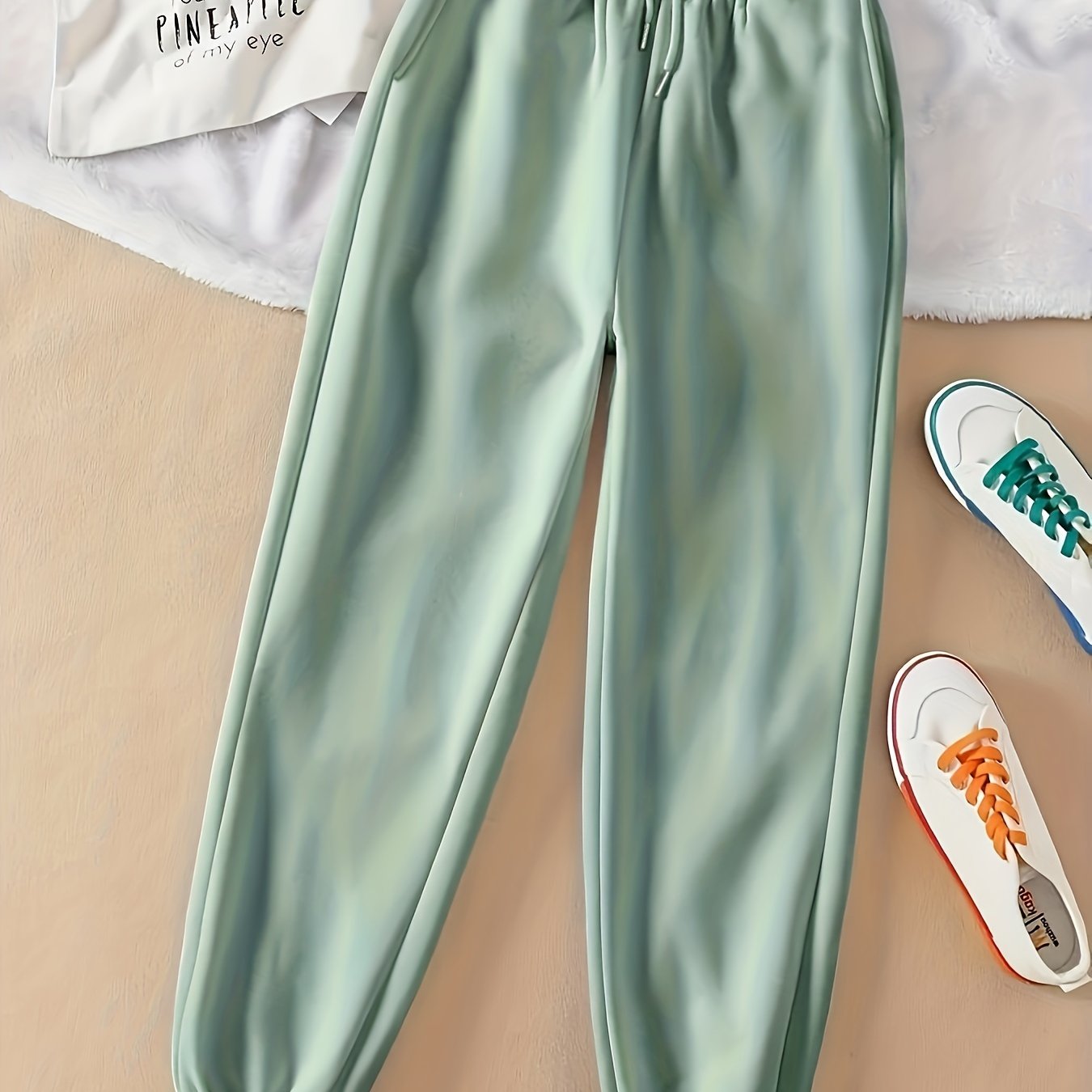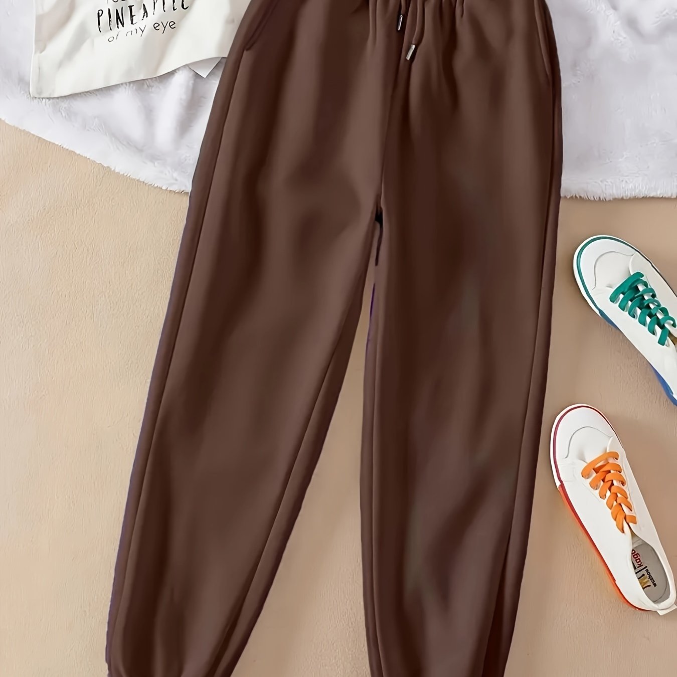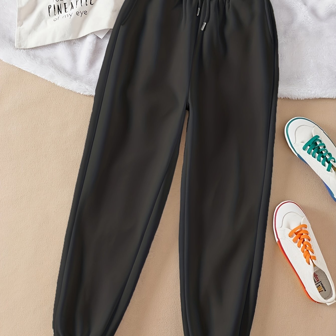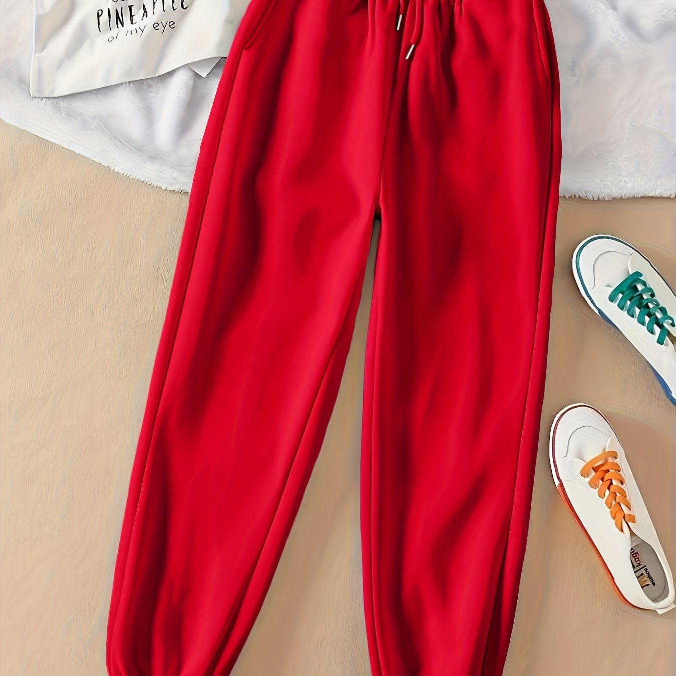 Solid Color Polyester Slim Fit Joggers - Women's Casual Drawstring Machine Washable for Fall/Winter