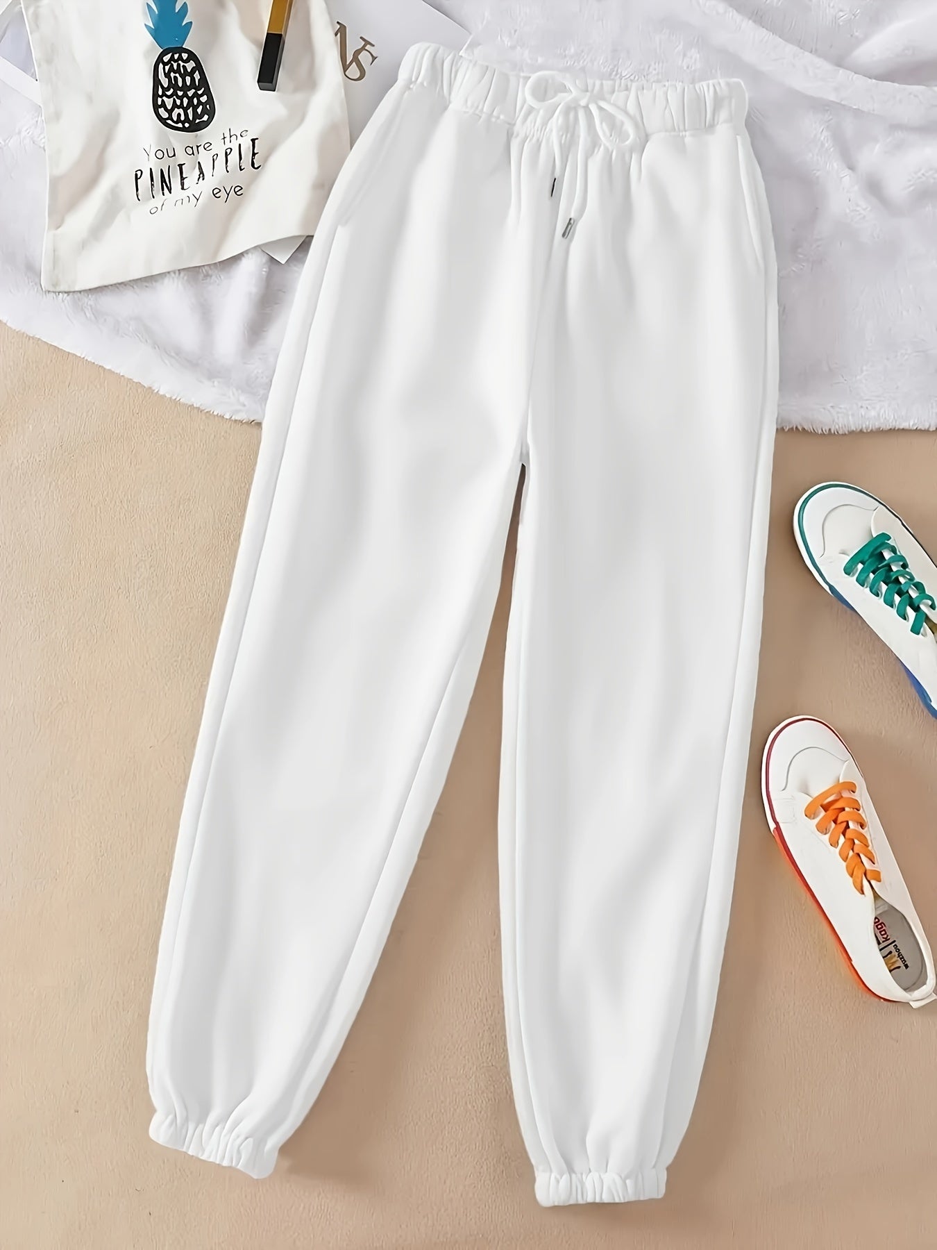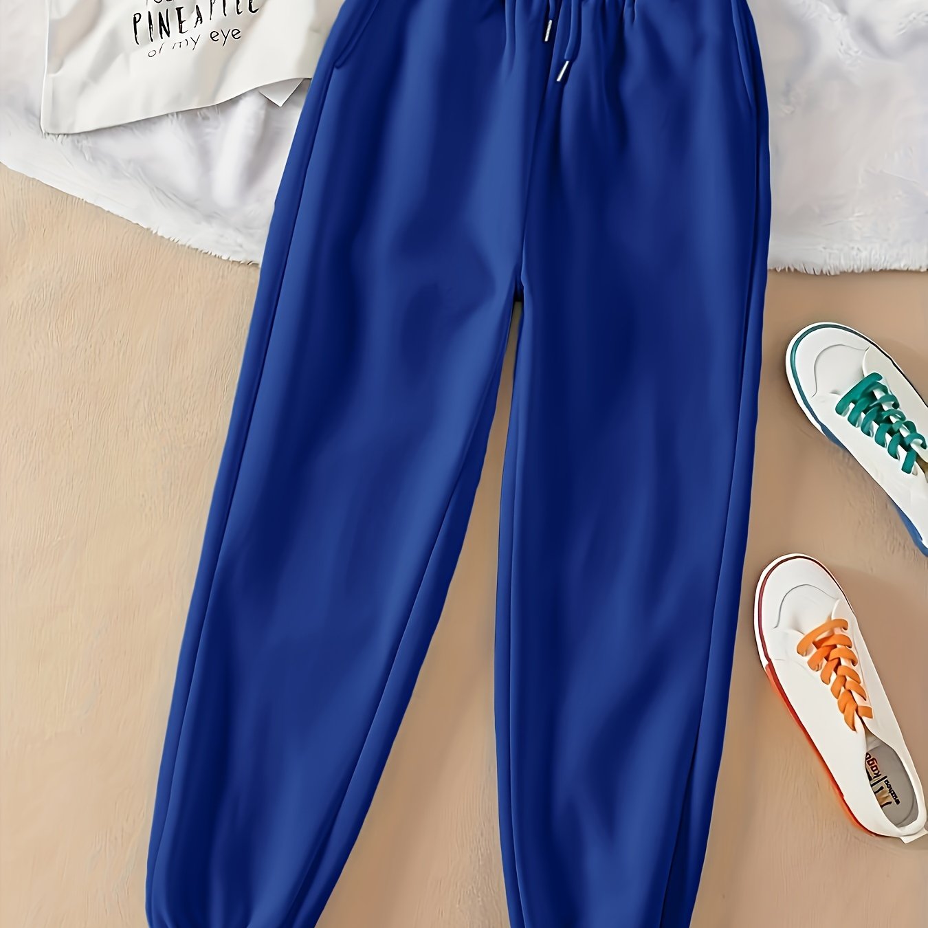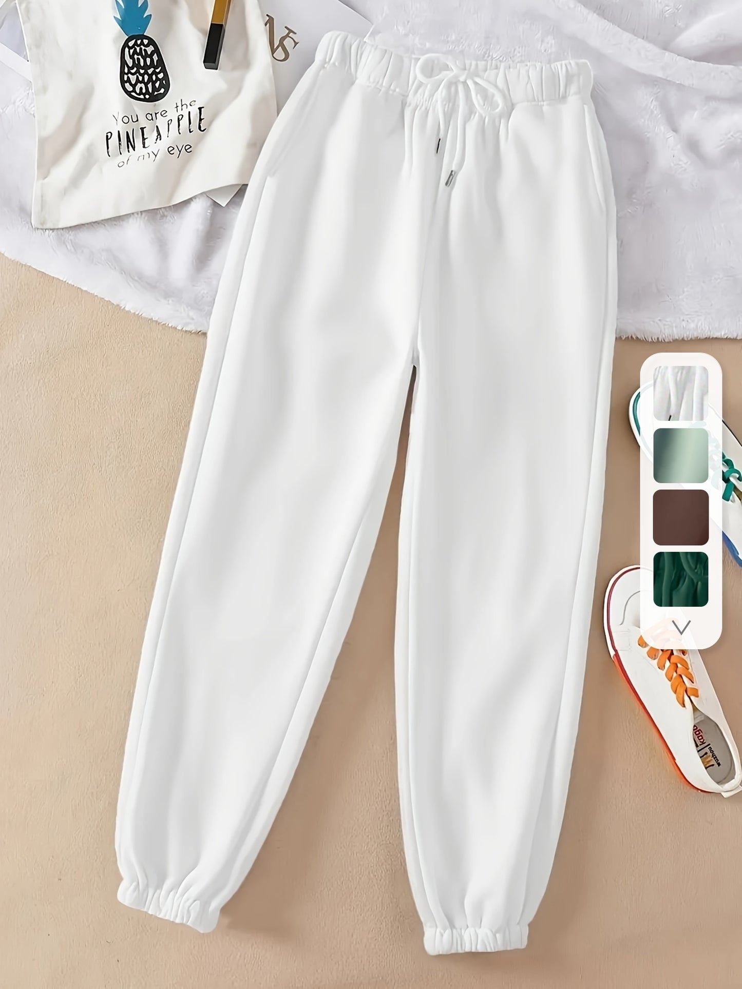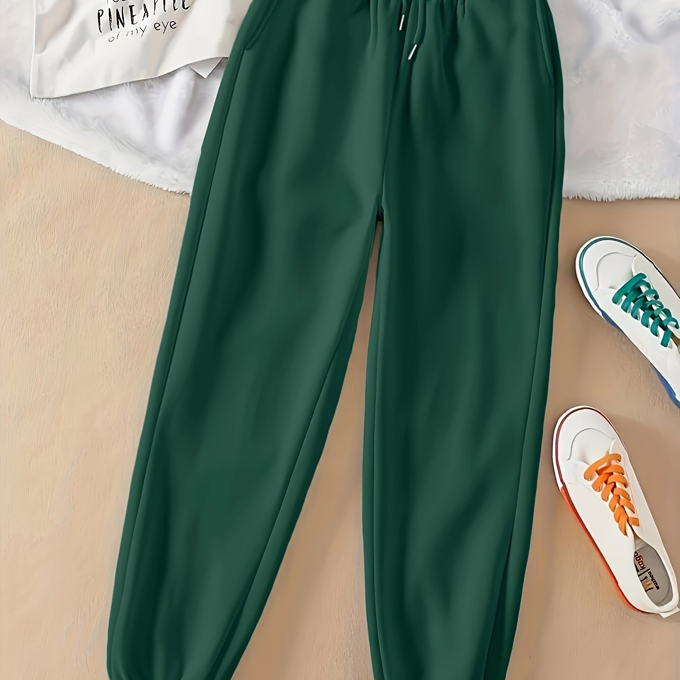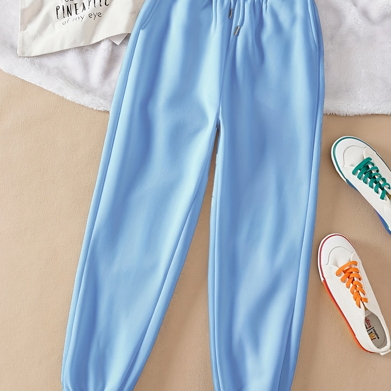 Solid Color Polyester Slim Fit Joggers - Women's Casual Drawstring Machine Washable for Fall/Winter