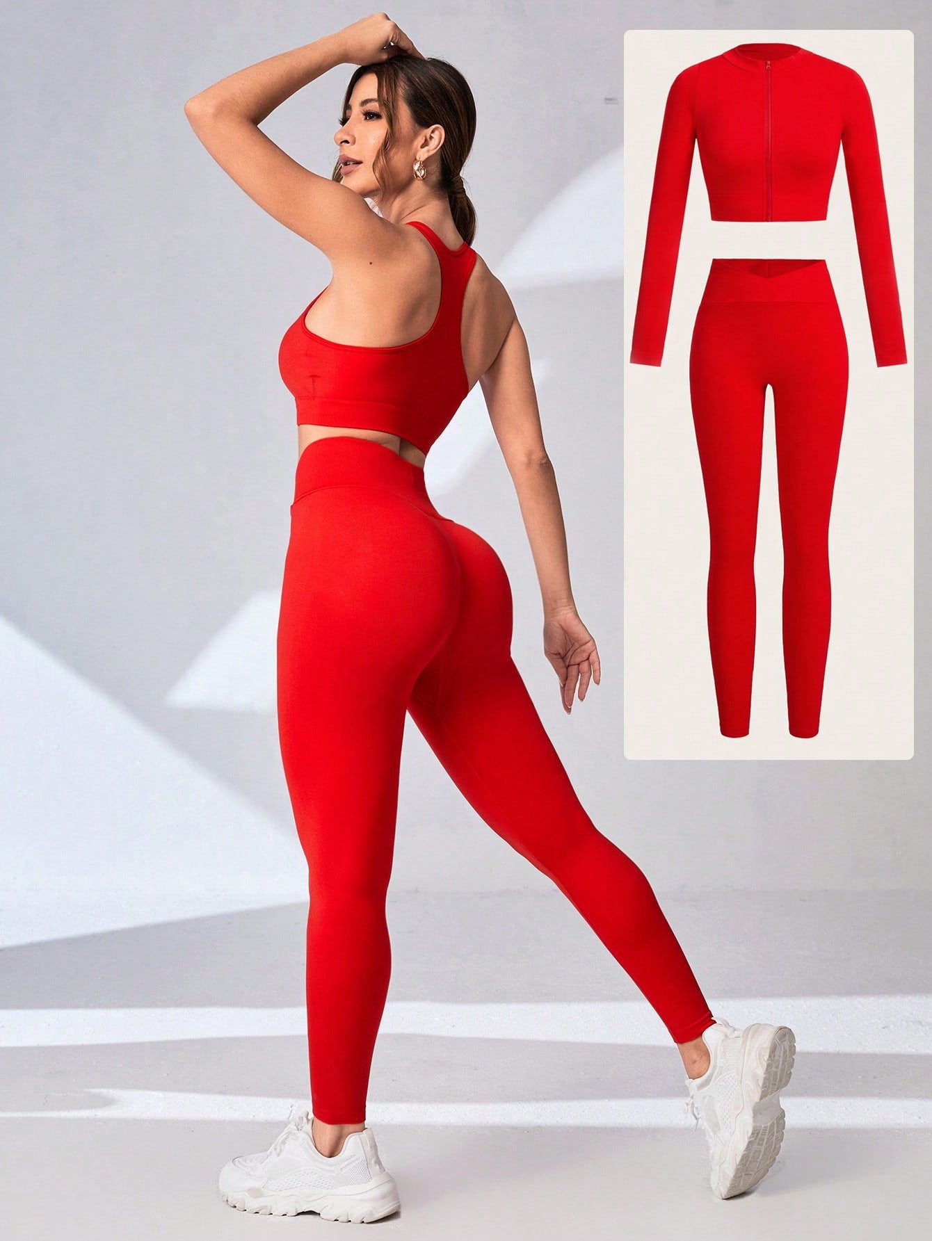 Sport Studio 3pcs Seamless Zipper Up Sports Jacket & Tank Top & Leggings Workout Women Set