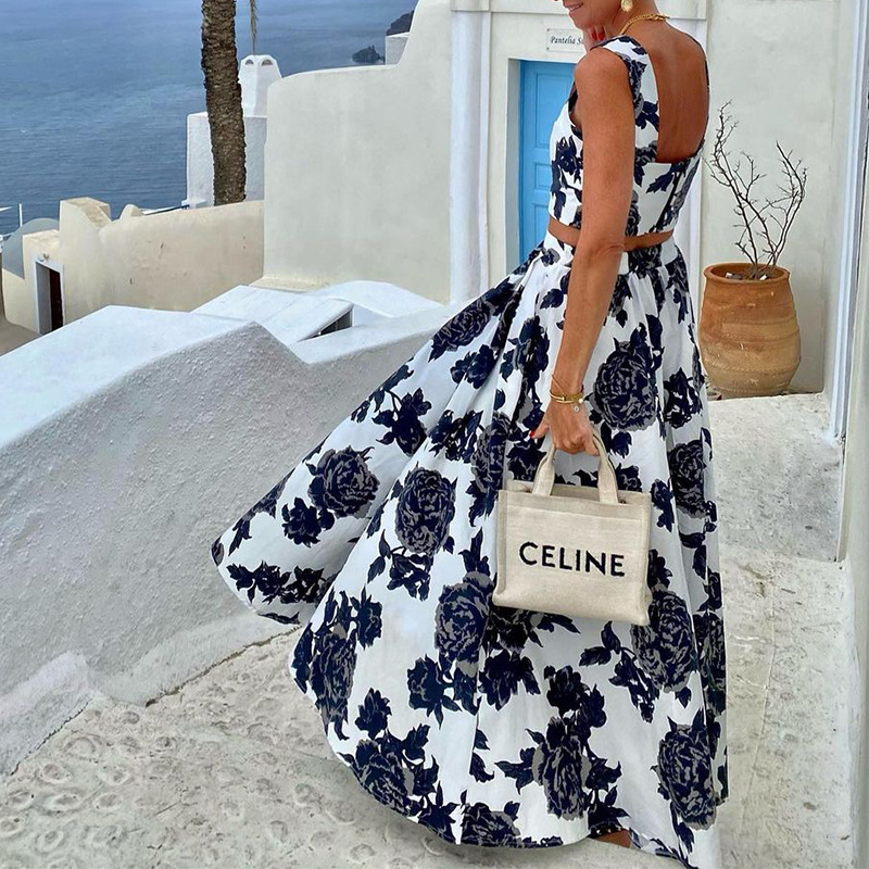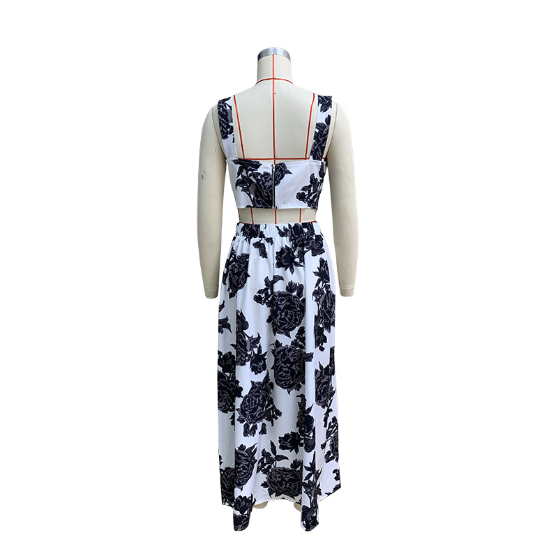 Spring Summer Women Clothing Printed Sling Top Skirt Two Piece Set
