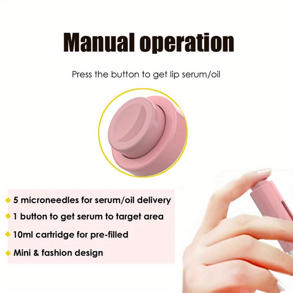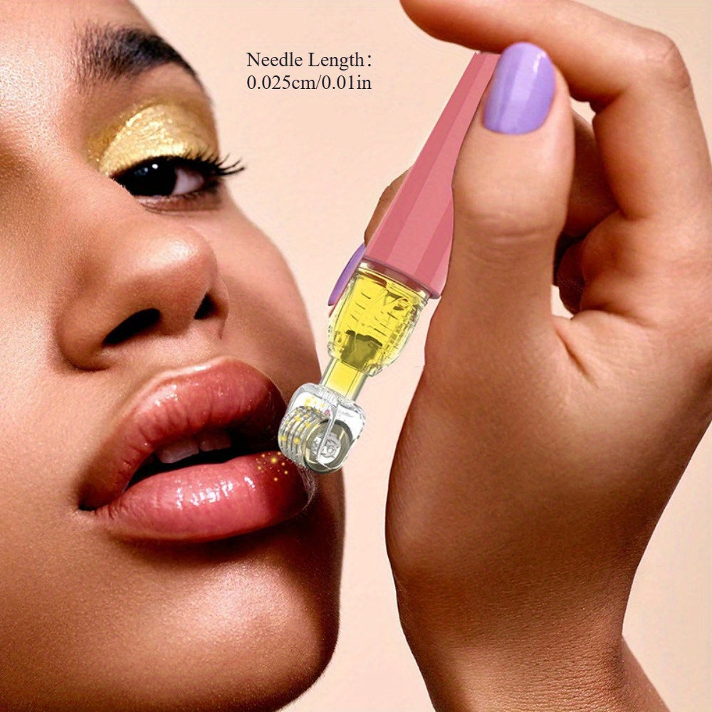 Stainless Steel Lip Care Microneedle Roller, 105 Needles, 8ml Precision Control Fluid Dispenser, Hypoallergenic, No-Battery Manual Lip Massager with Interchangeable Needle Lengths for Face and Body