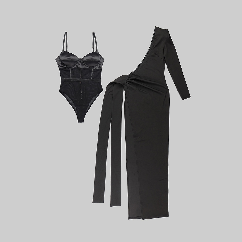 Stitching High Slit Shoulder Formal Dress Sling Vest Two Piece Set Casual Set