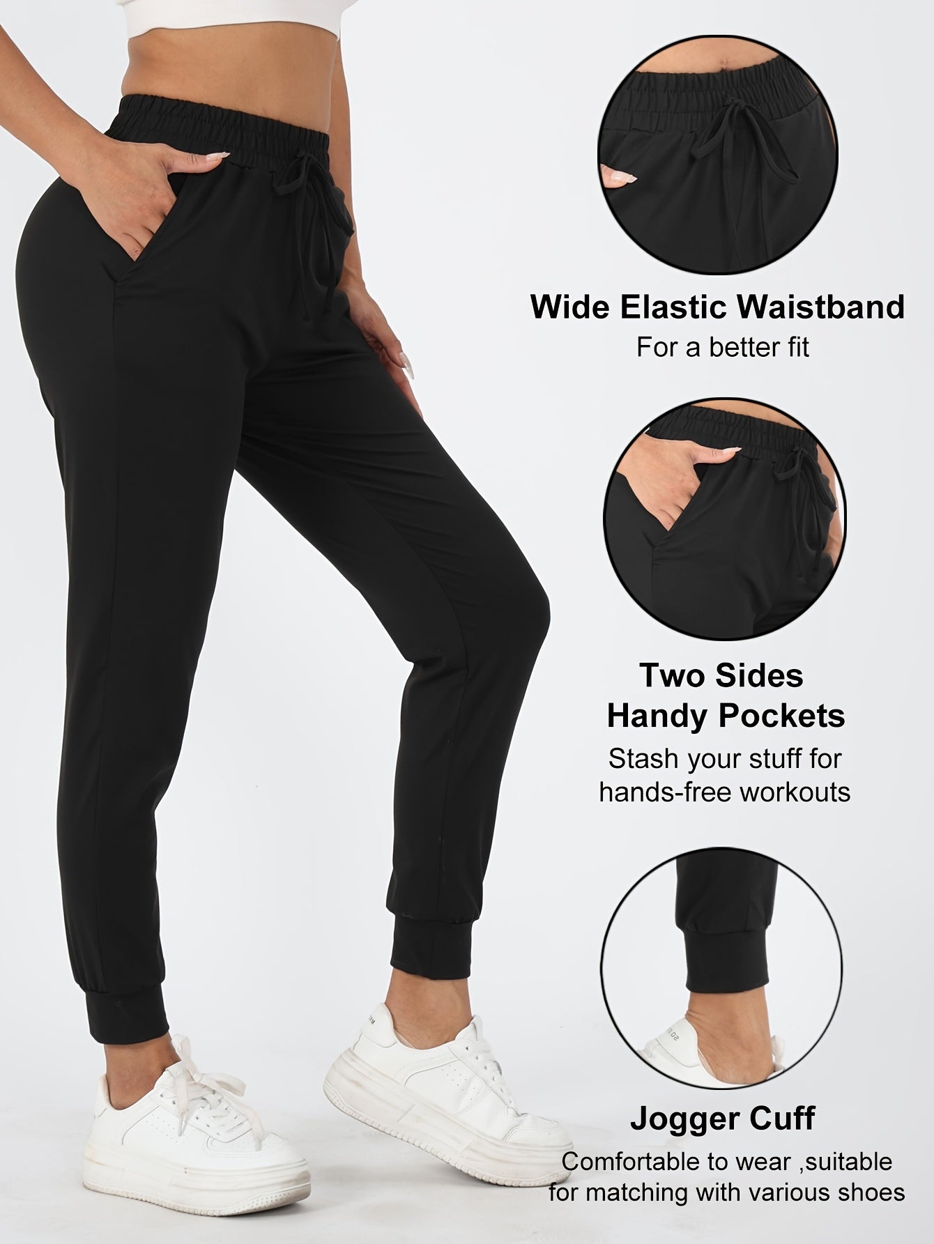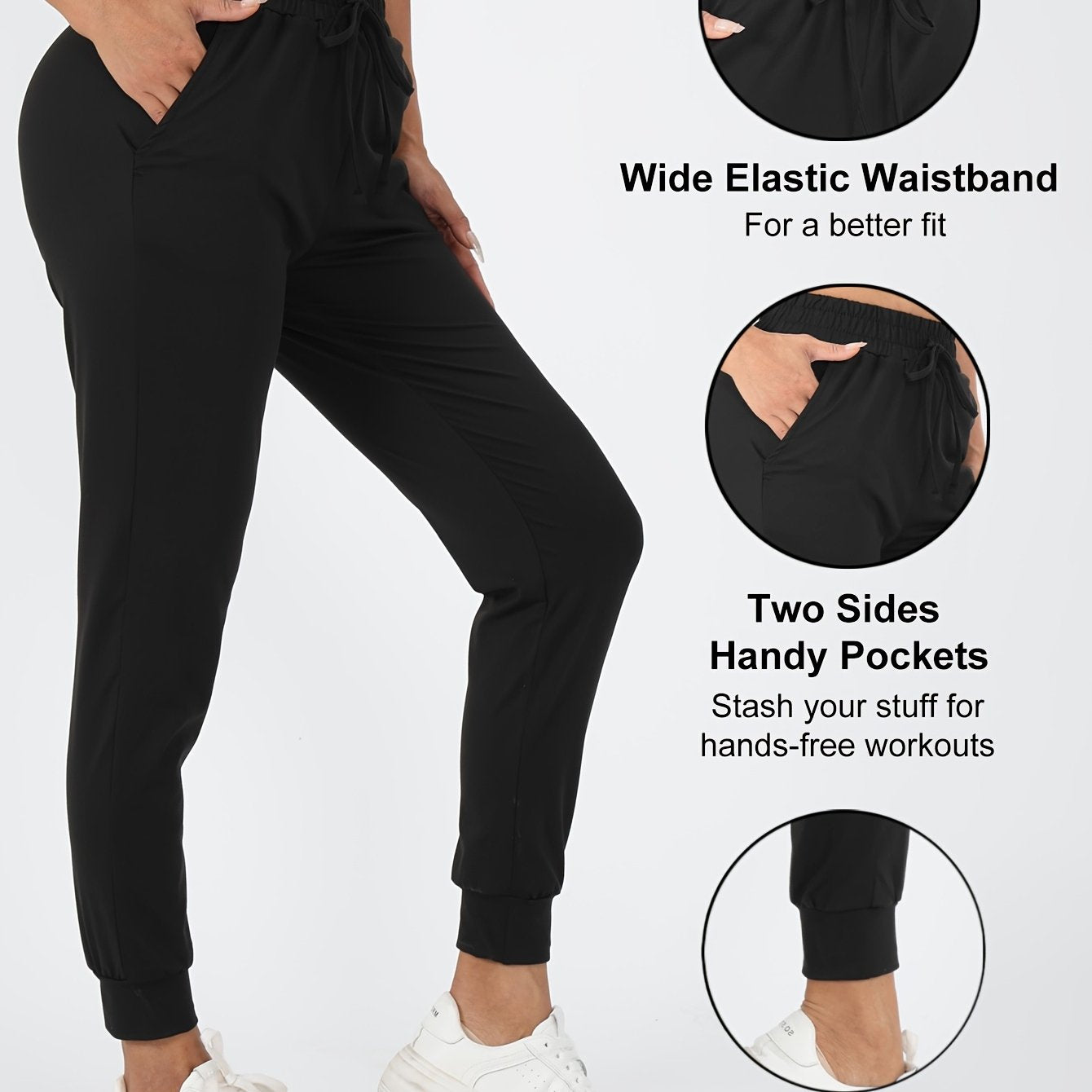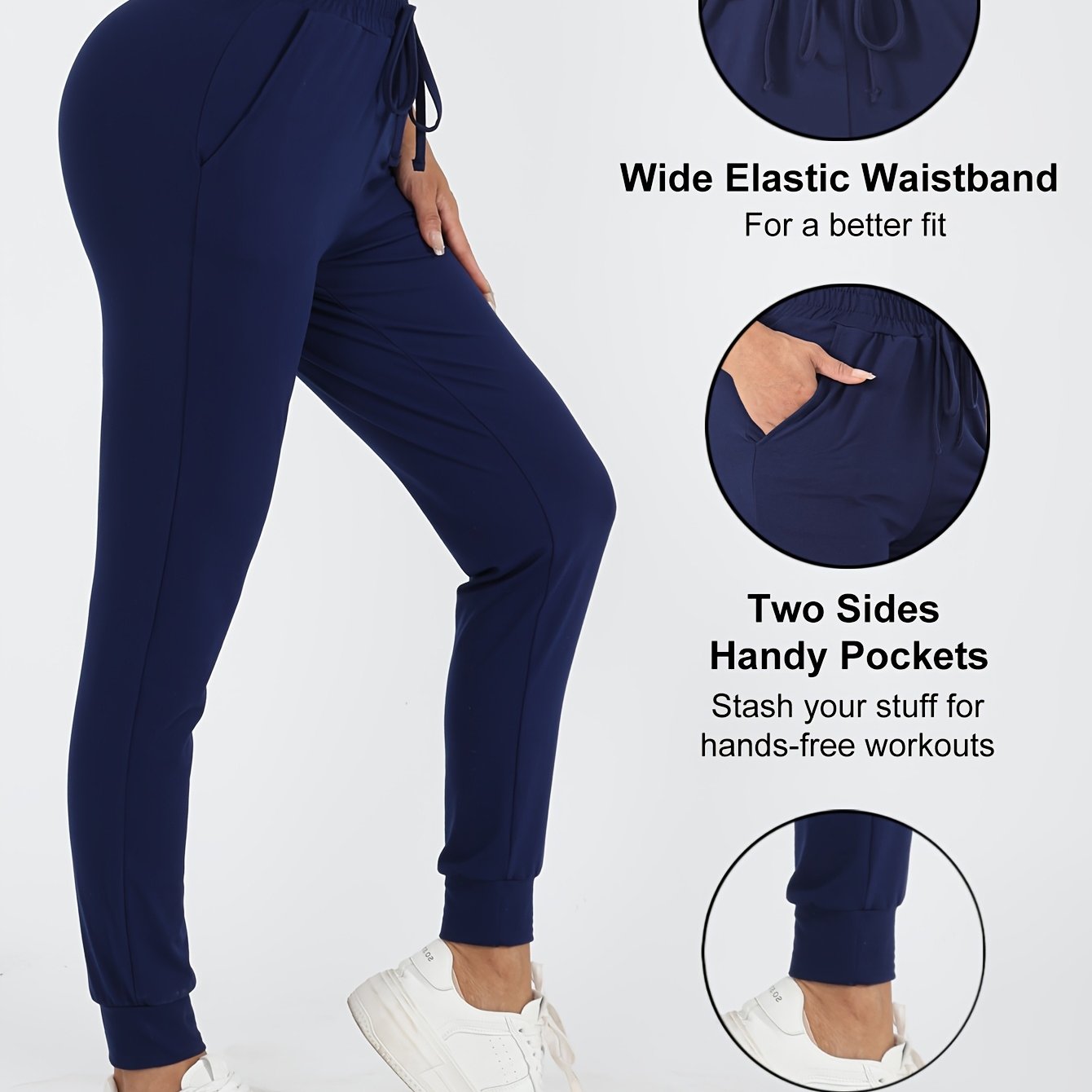 Stretchy & Comfortable Navy Blue High-Waist Jogger Pants - Women's Polyester/Spandex Blend with Dual Side Pockets - Machine Washable for Workouts & Casual Wear