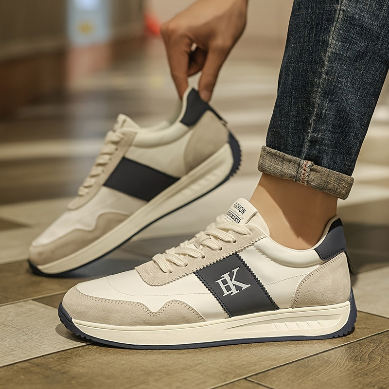 Stylish Low-Top Sneakers for Men - High-Quality with Navy Blue Accents, White & Red Accents, Breathable Fabric Lining, Durable PU Sole, Perfect for Casual Wear, Cute Shoes