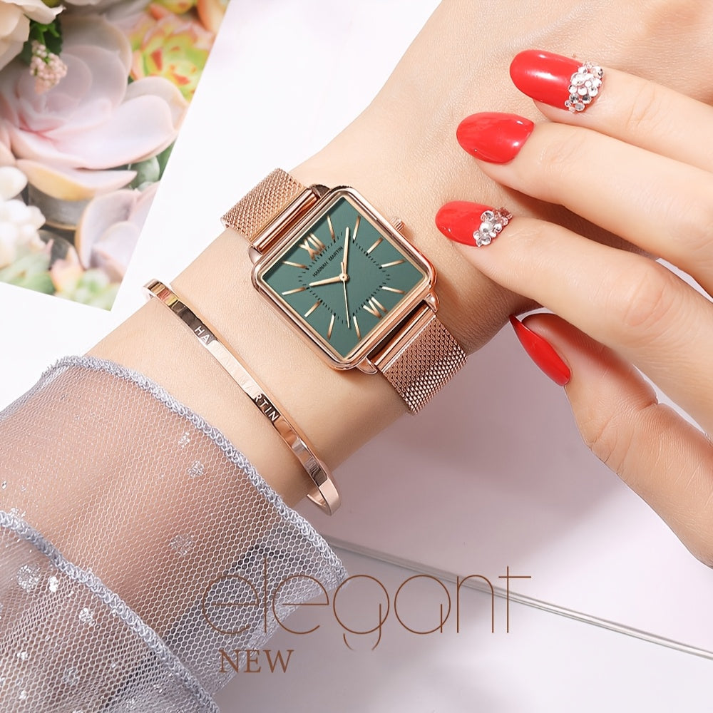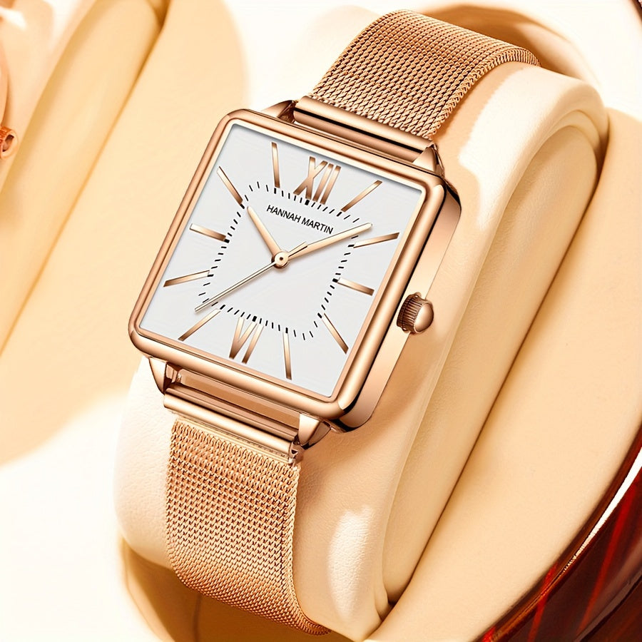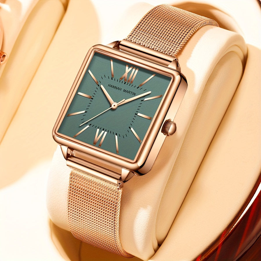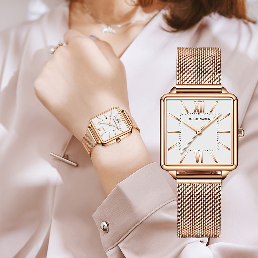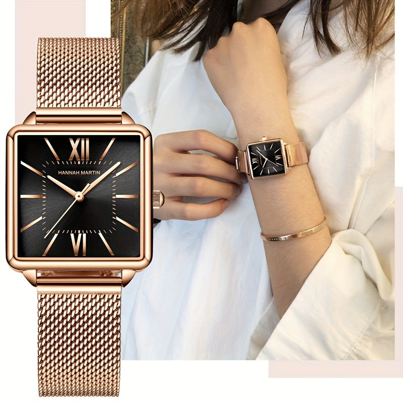 Stylish Women's Square Watch - Luxurious Stainless Steel Band, Fashionable Quartz Movement, 1pc Collection