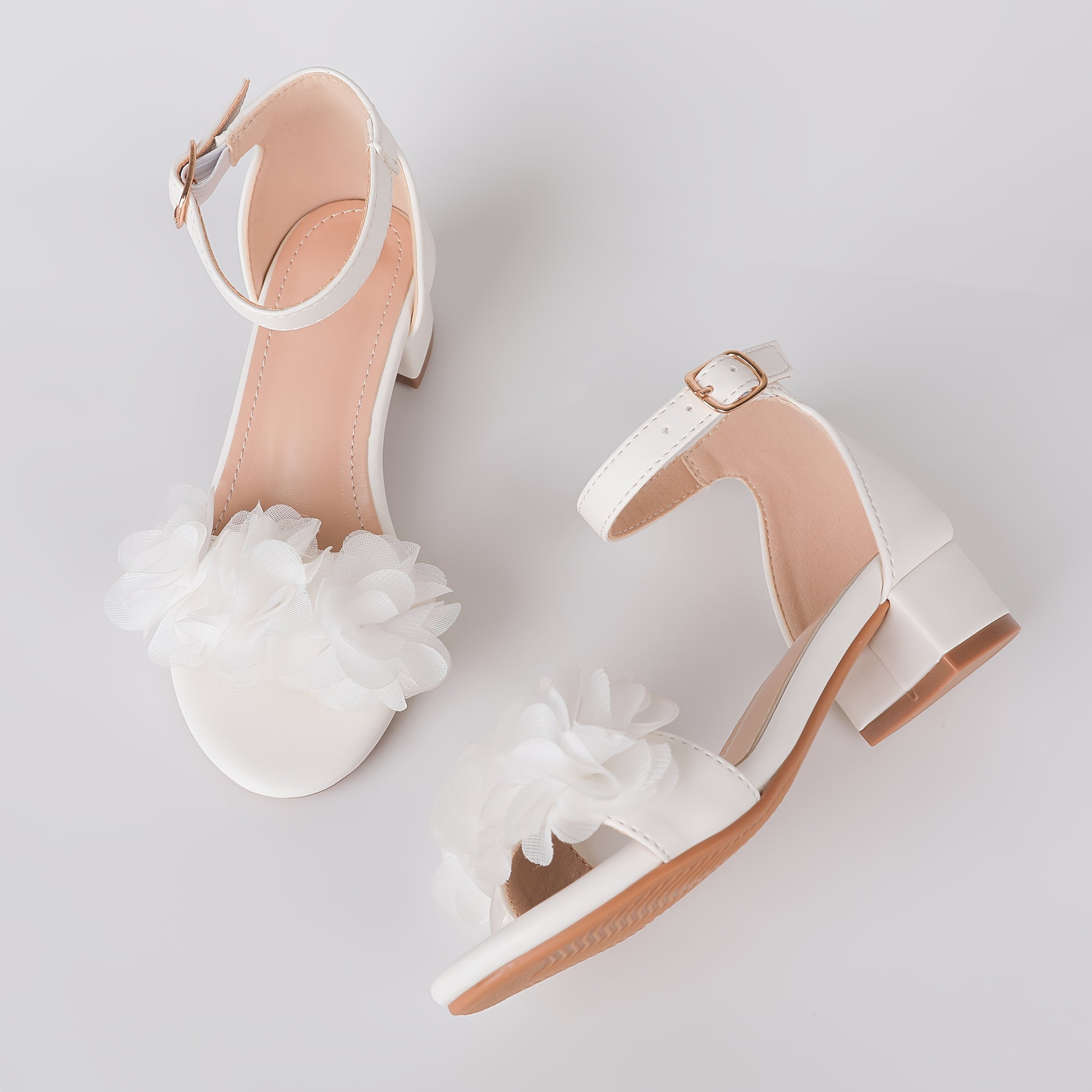 Summer Open-Toe High-Heeled Sandals for Flower Girls, Suitable for Weddings And Parties, Designed for Toddlers And Older Children.