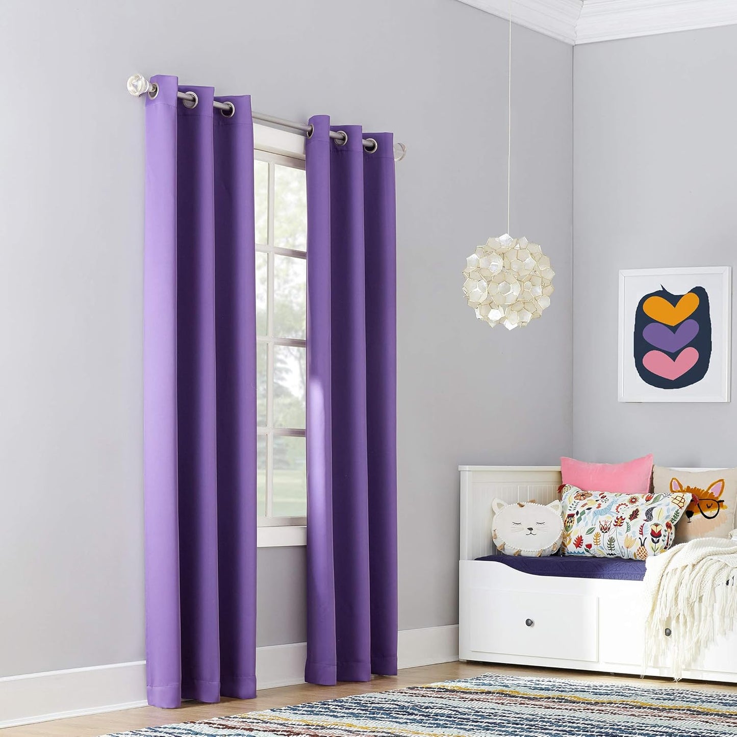 Sun Zero Riley Kids Bedroom Blackout Grommet Curtain Panel, 40" x 84", Purple