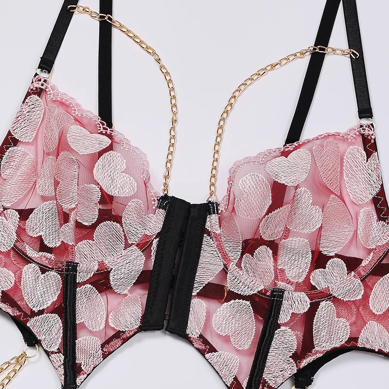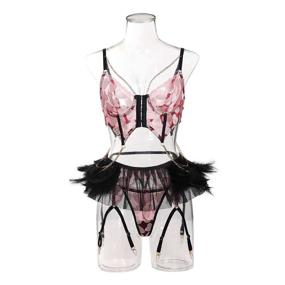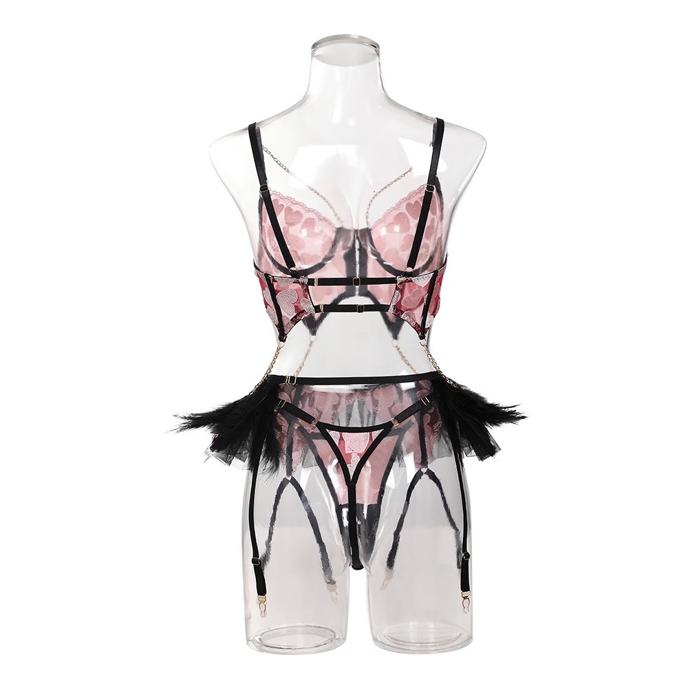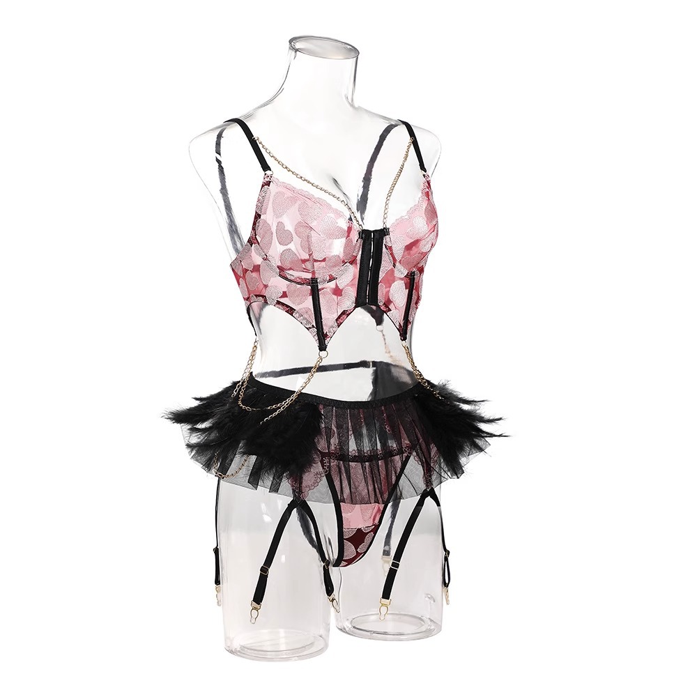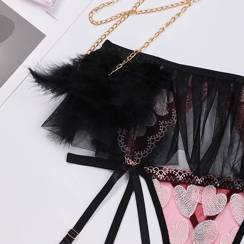 Supply Sexy Peach Heart Pattern Feather Pettiskirt Split Sexy Lingerie Sets