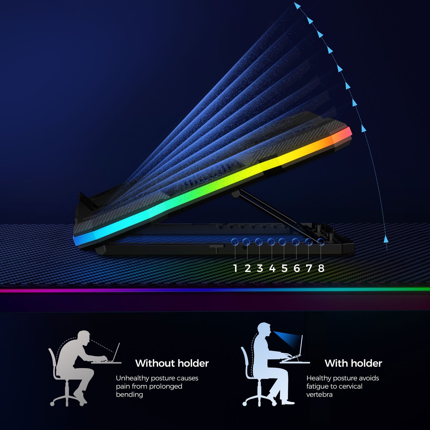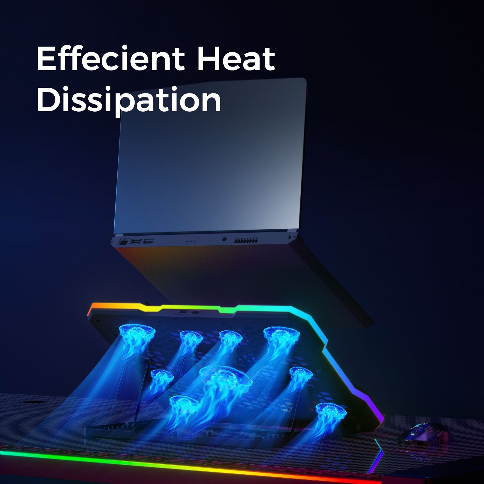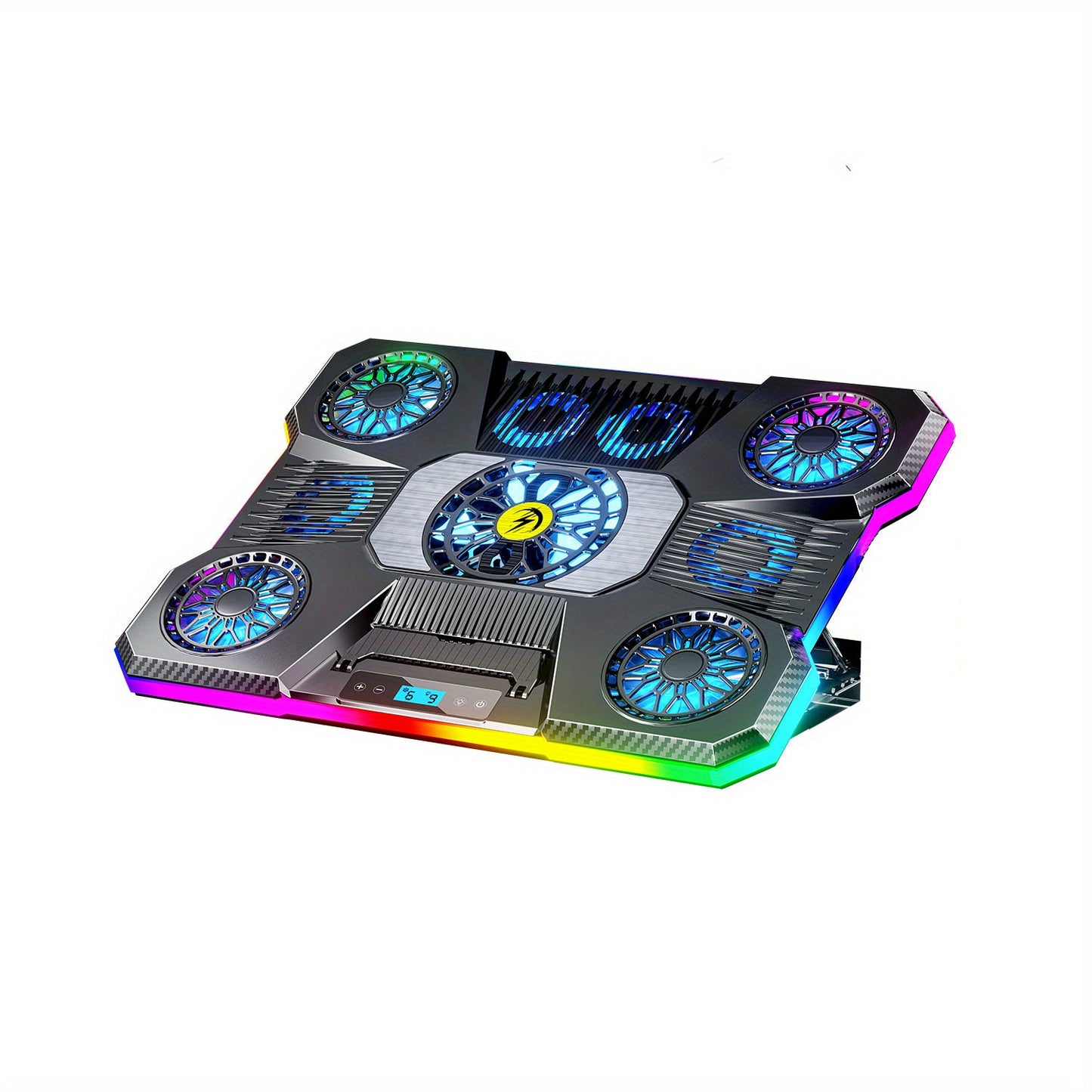 Support réglable pour ordinateur portable en ABS avec éclairage RVB, support rectangulaire pour appareil, radiateur de refroidissement à haute efficacité, vent silencieux et puissant, avec éclairage RVB, pour les jeux et le bureau, idéal pour les cadeaux