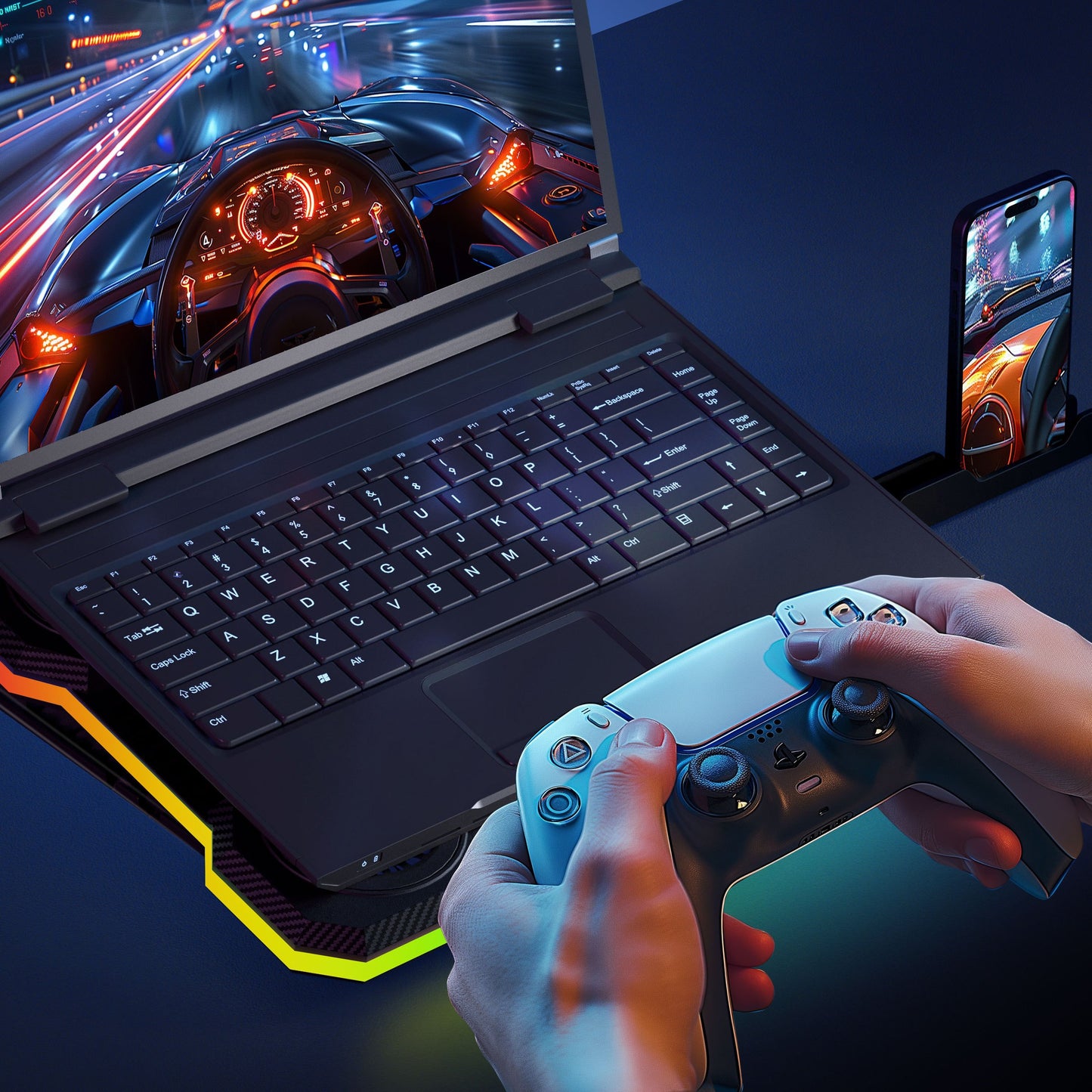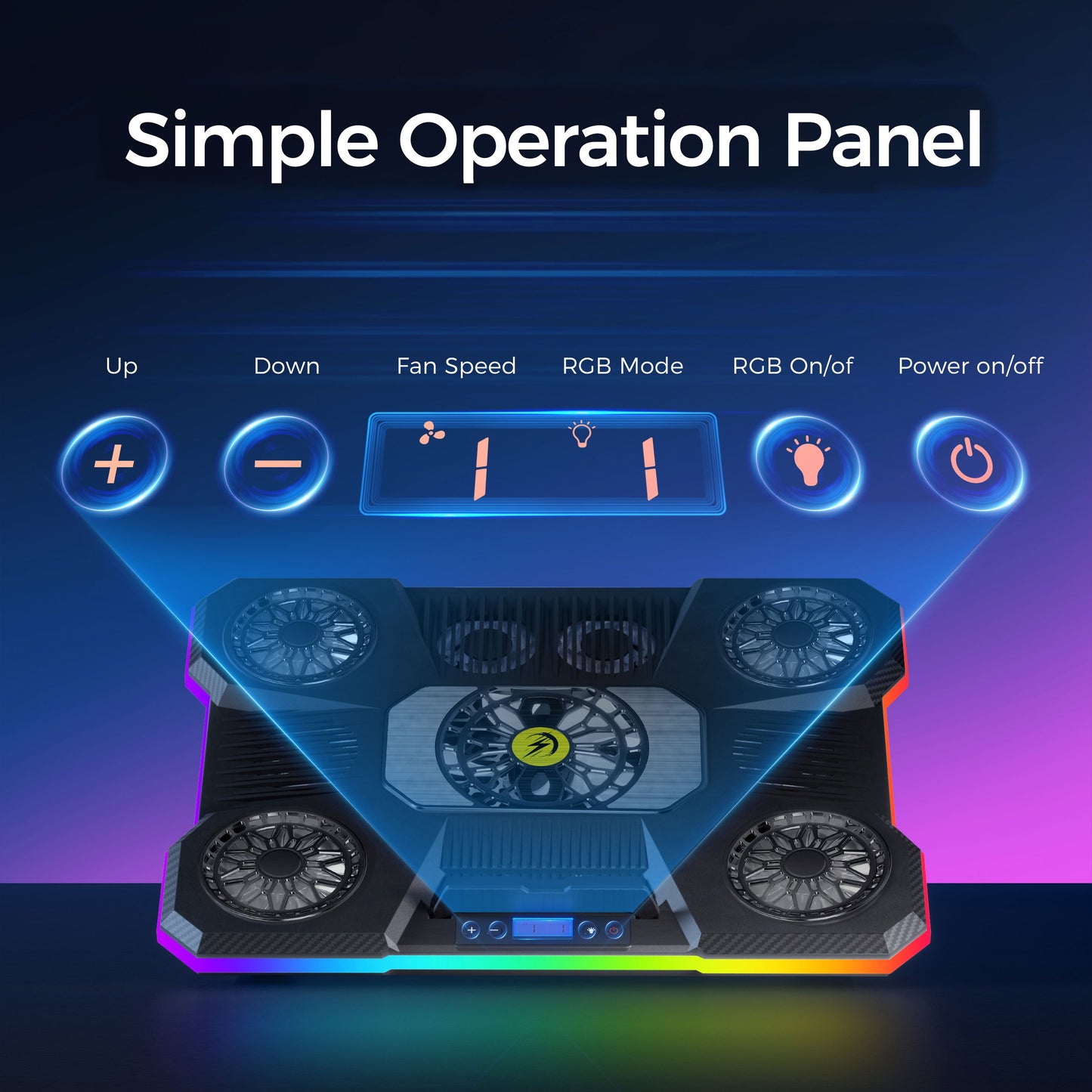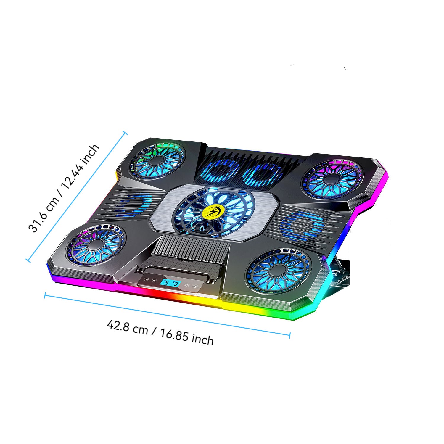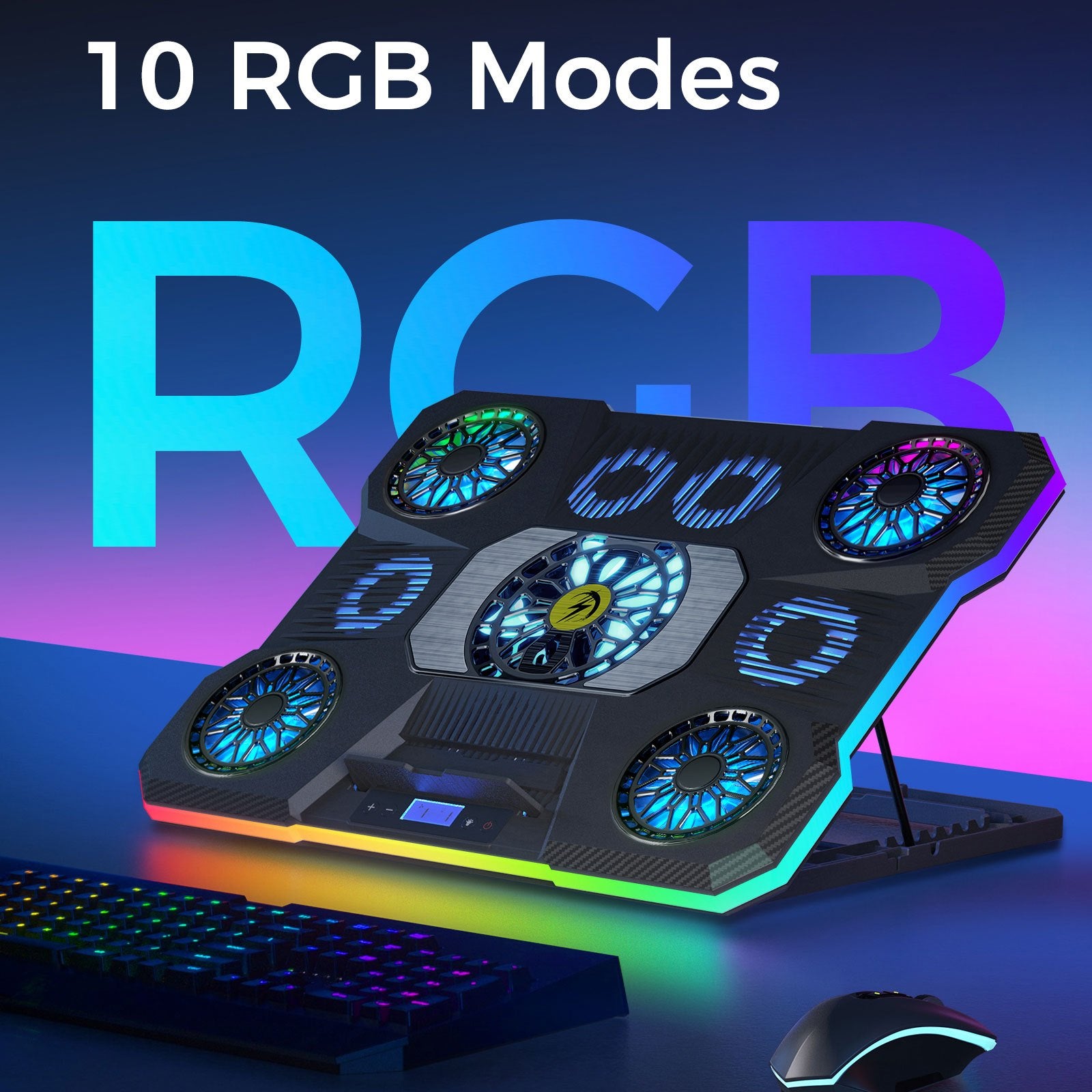 Support réglable pour ordinateur portable en ABS avec éclairage RVB, support rectangulaire pour appareil, radiateur de refroidissement à haute efficacité, vent silencieux et puissant, avec éclairage RVB, pour les jeux et le bureau, idéal pour les cadeaux
