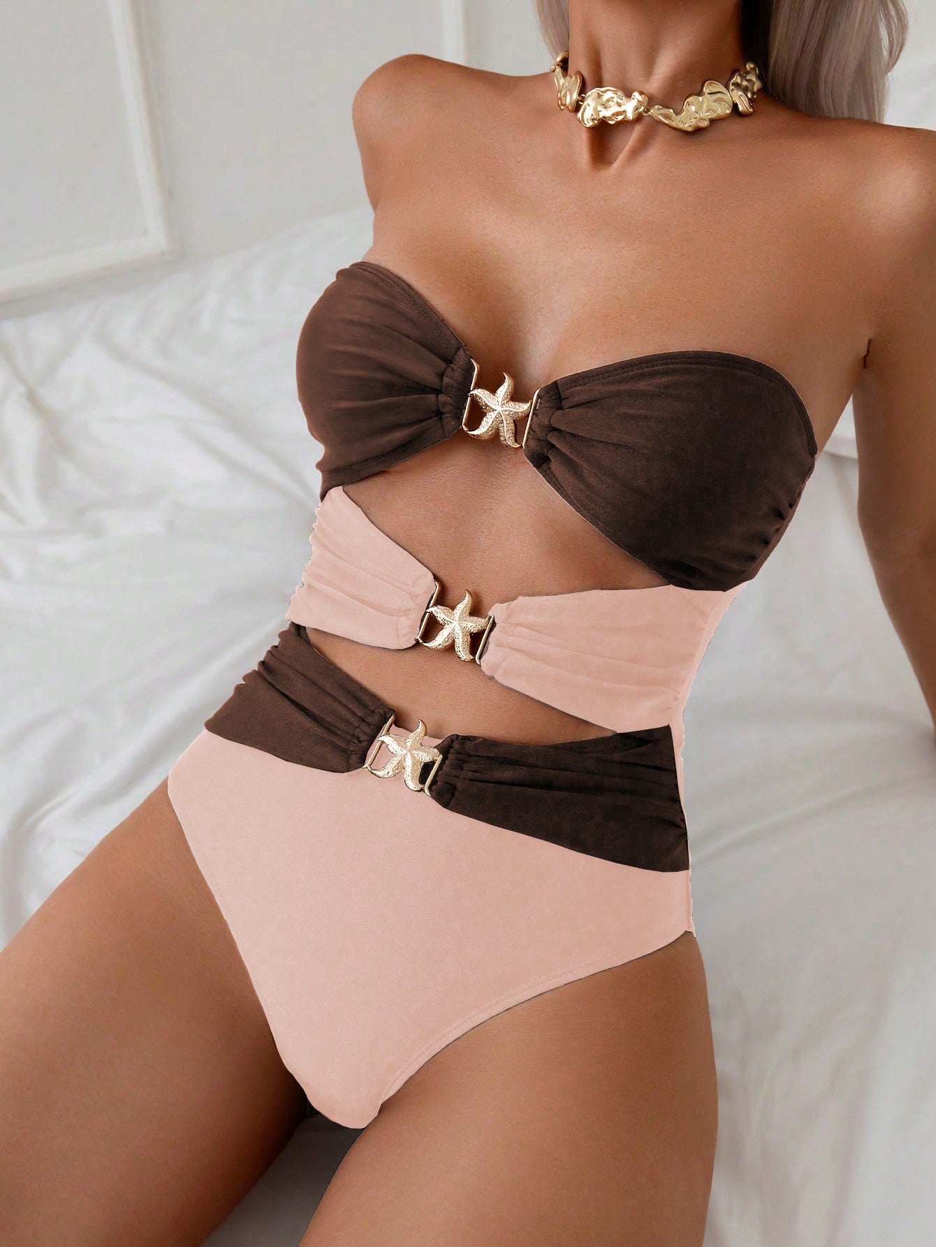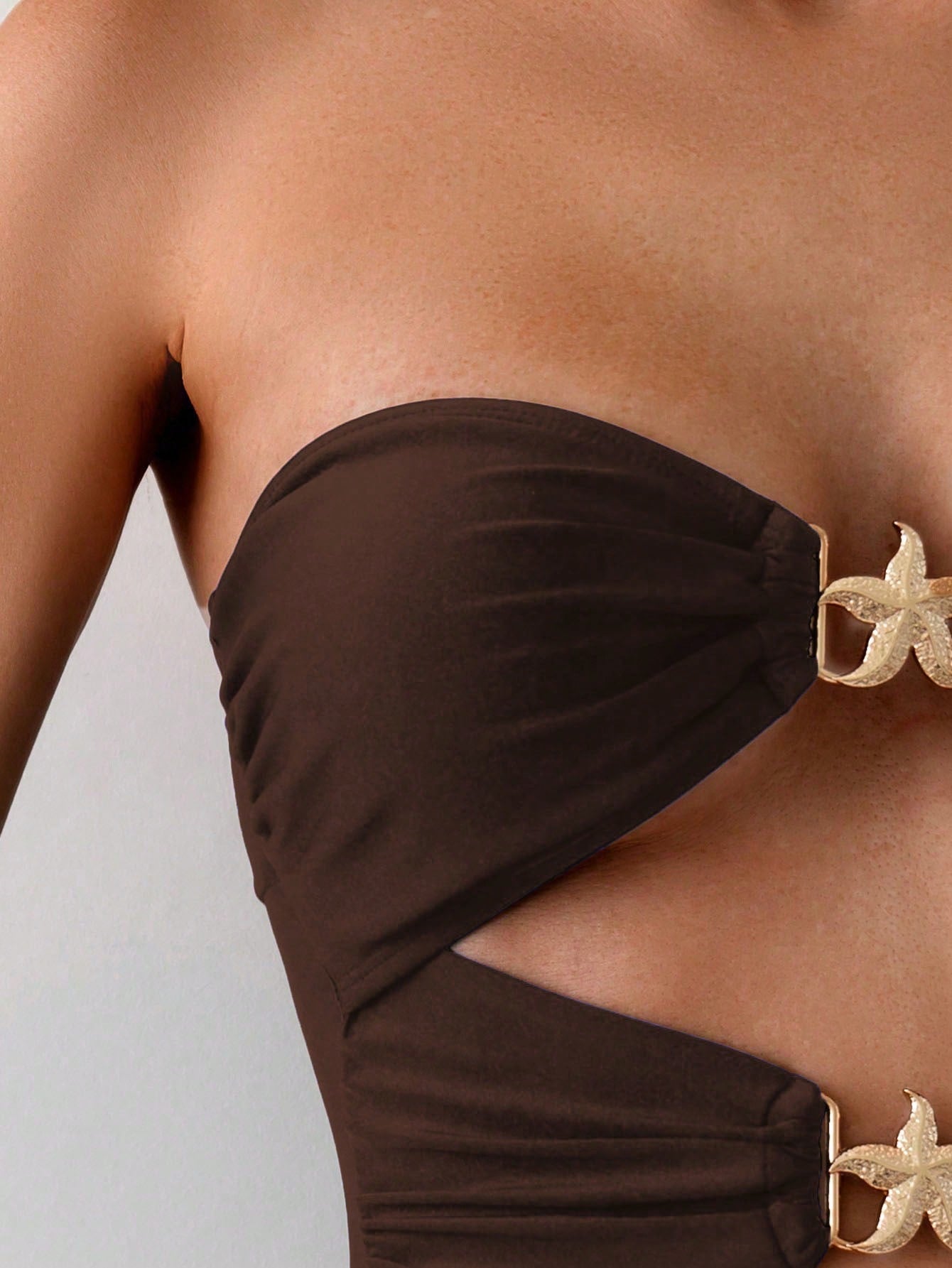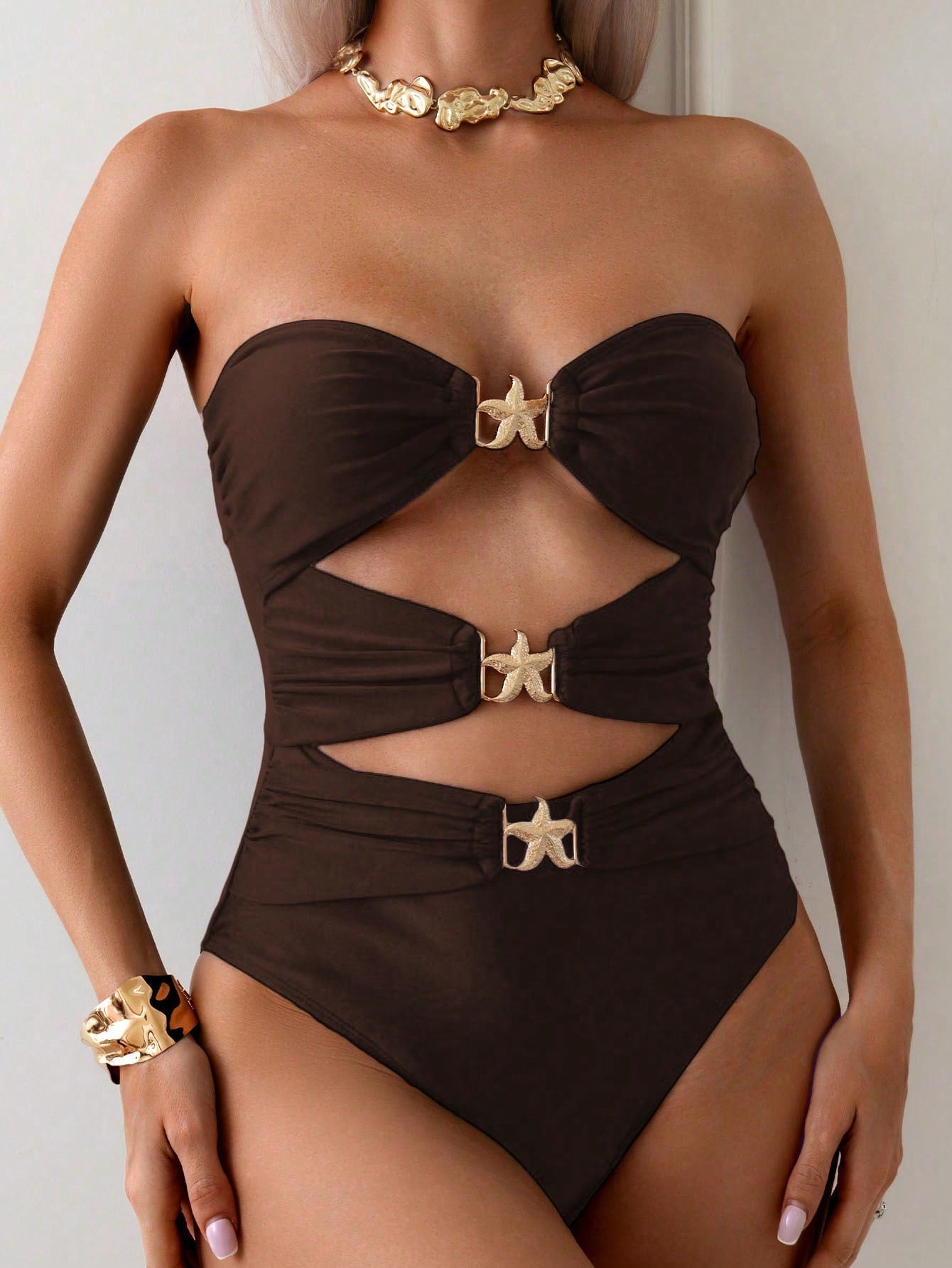 Swim Chiccia Women Simple Solid Color Hollow-Out Fitted Strap Casual Jumpsuit For Summer Beach Vacation
