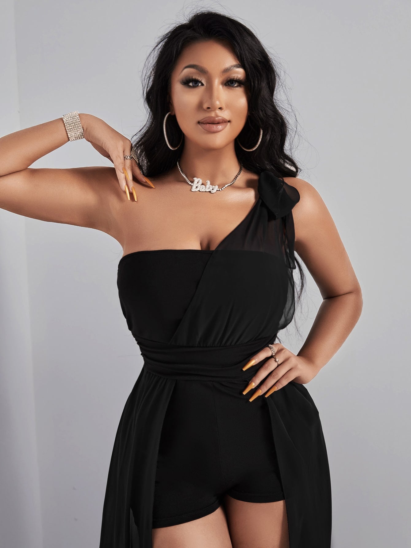 SXY Knot One Shoulder Asymmetrical Hem Romper