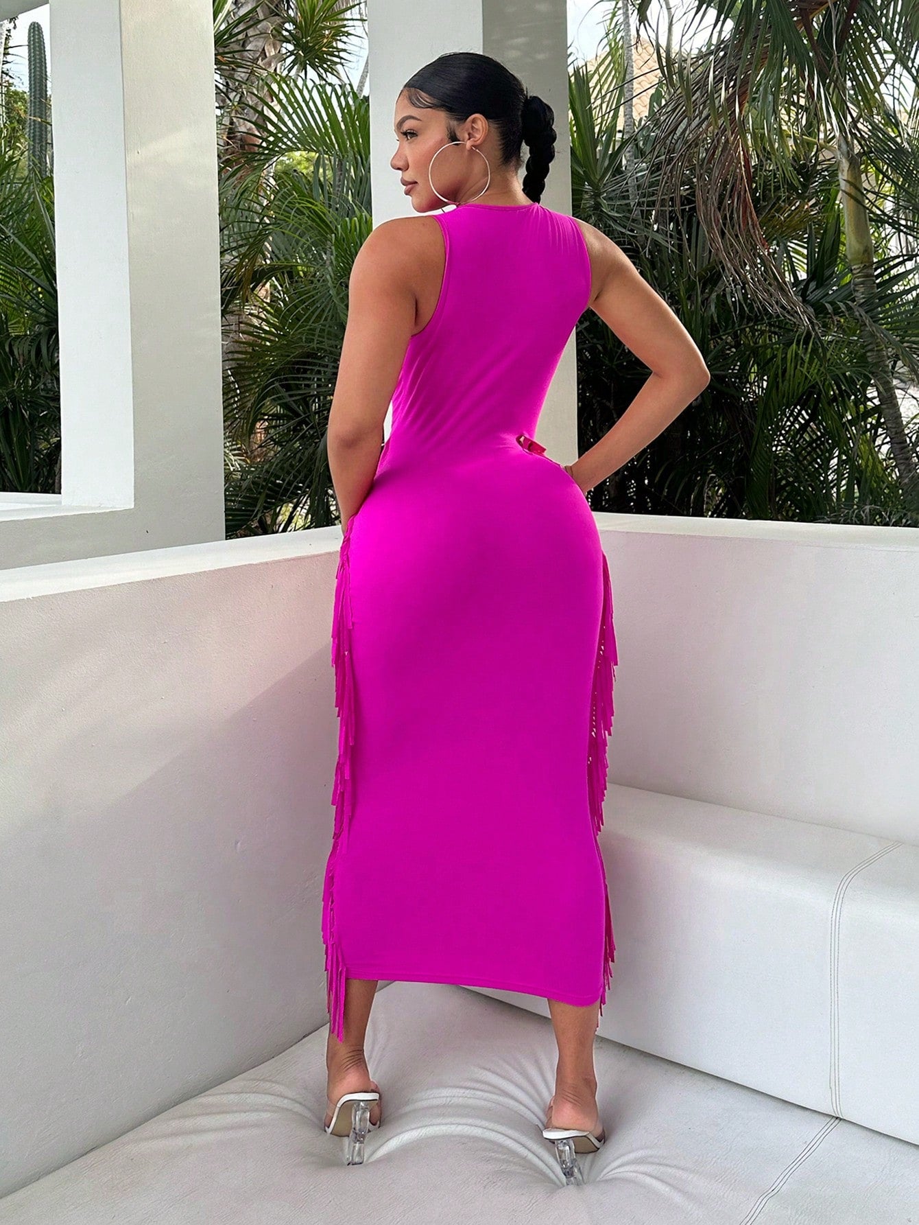 SXY Vacation Style Side Tassel High Stretch Knit Dress Spring Women Clothes Beach Vacation Women Clothes Boho Women Clothing Summer Dress Flowy Dress Beach Women Dresses Summer Sets Birthday Outfit