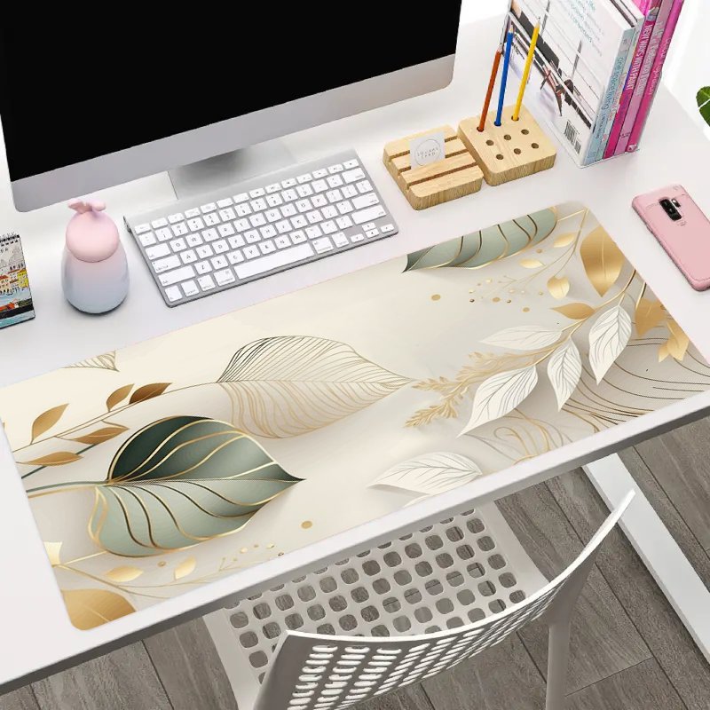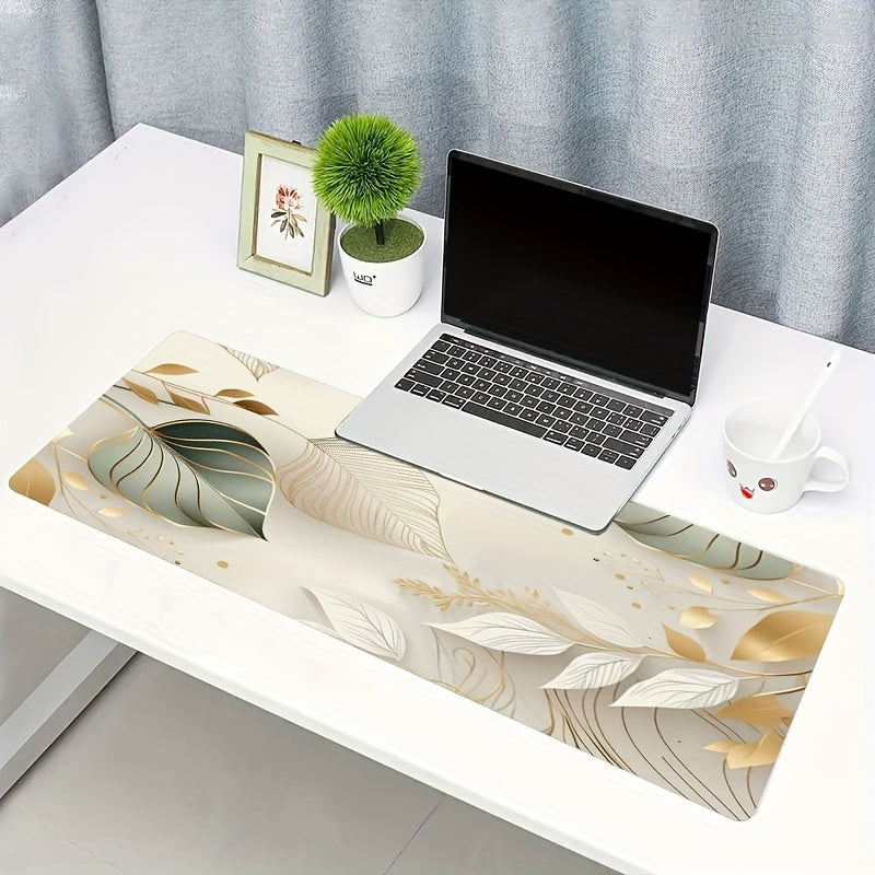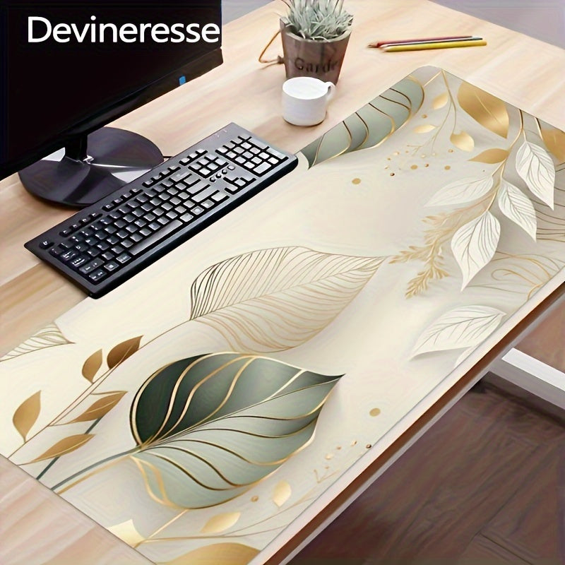 Tapis de bureau à motif de grandes feuilles Devineresse, base en caoutchouc antidérapante, tapis de souris de jeu oblong, tapis de clavier de bureau pour sports électroniques, accessoire de bureau à domicile, cadeau pour les femmes