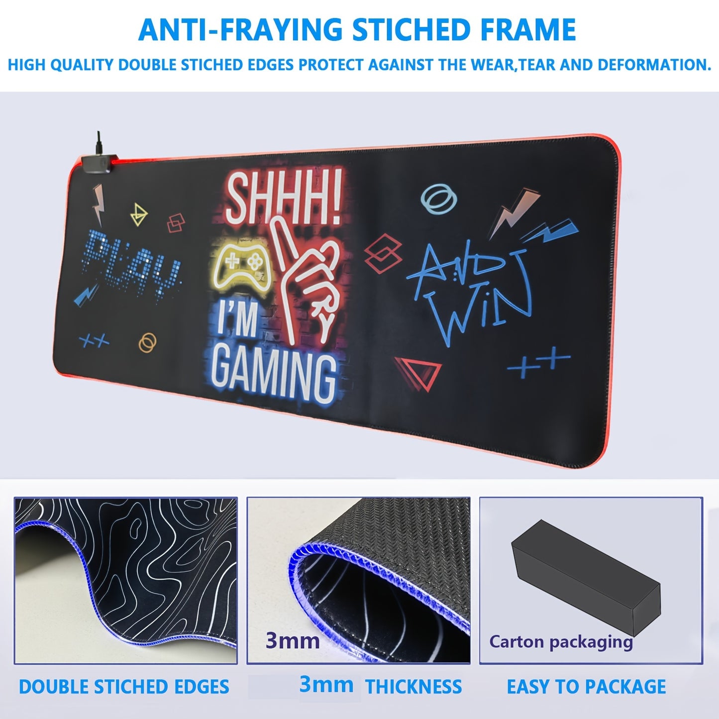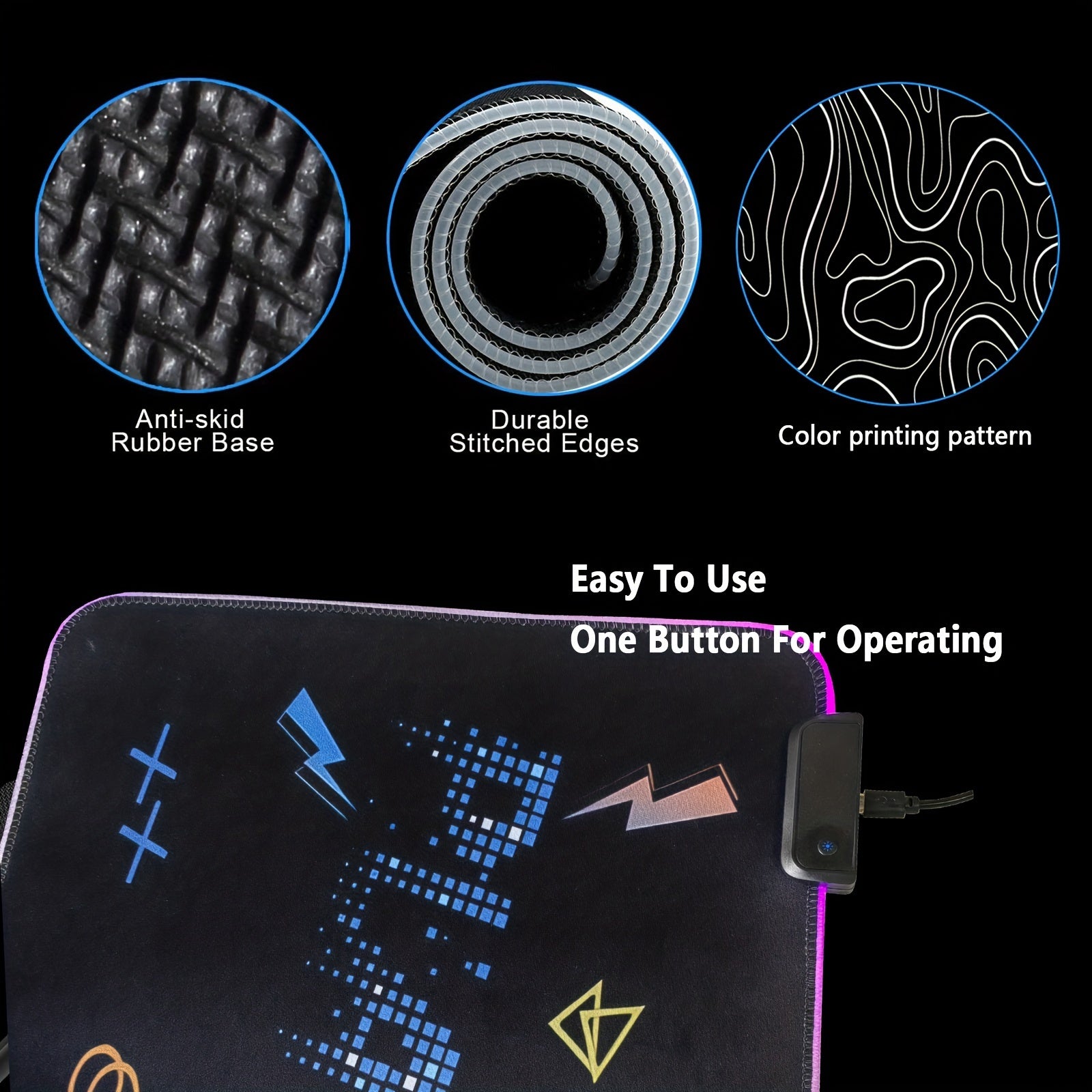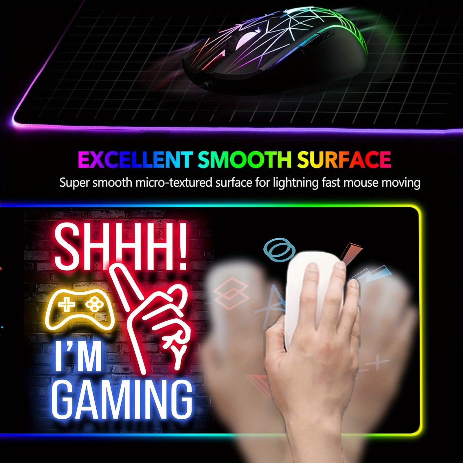 Tapis de Souris de Jeu Étendu FoBianJie avec Éclairage RGB - Base en Caoutchouc Antidérapante, Modes de Contrôle par Boutons, Surface en Silicone Souple pour Joueurs et Pros de l'E-Sport