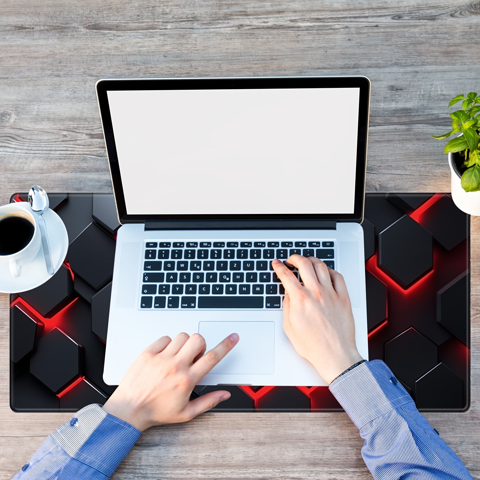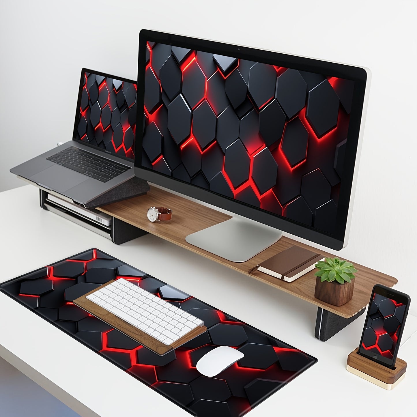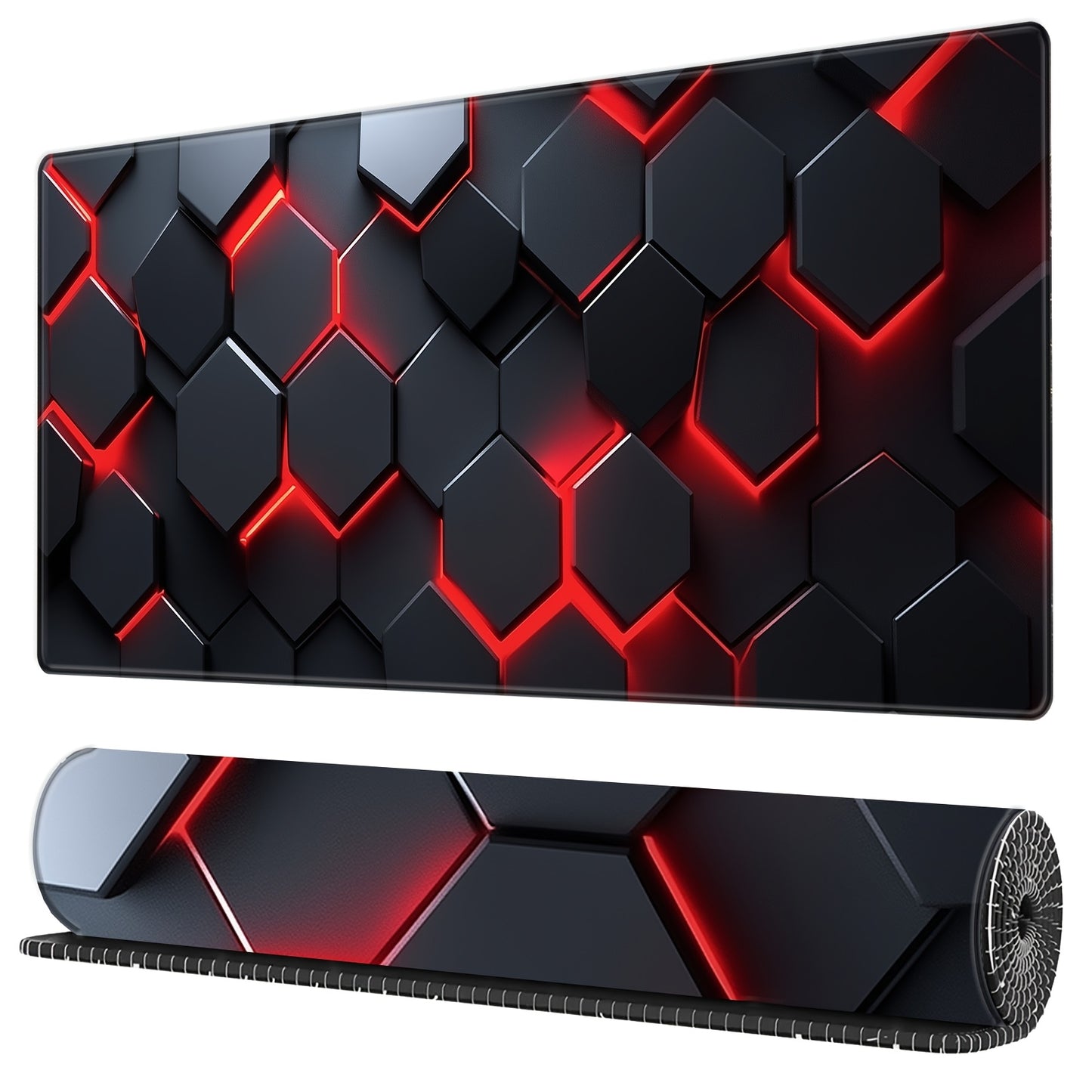 Tapis de Souris de Jeu, Tapis de Souris Étendu en Nid d'Abeille Rouge pour Science et Technologie, Tapis de Table de Jeu, Base Antidérapante et Bords Cousus, Long Tapis de Clavier et Souris pour Ordinateur, Convient pour le Bureau à Domicile 31.5"x11.8
