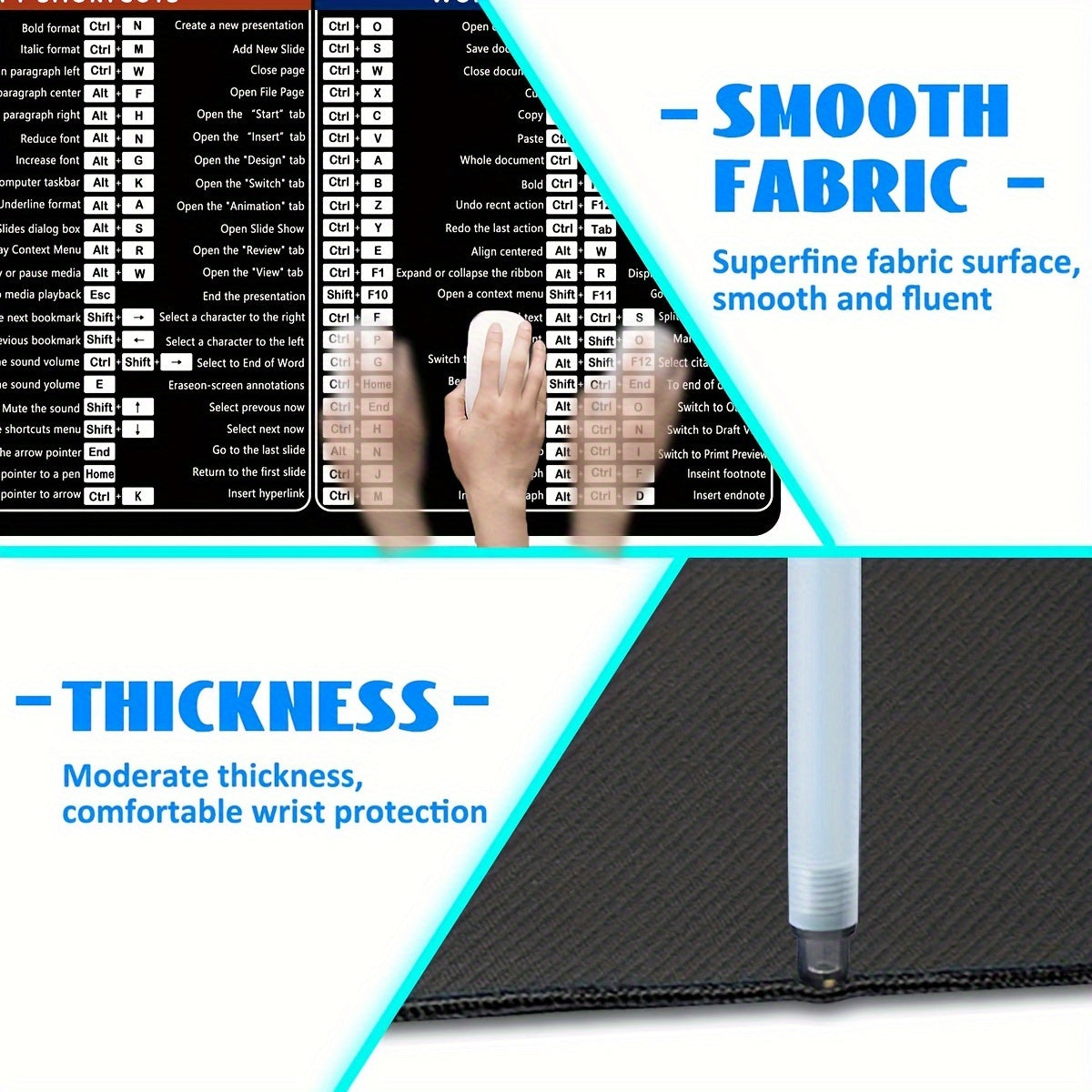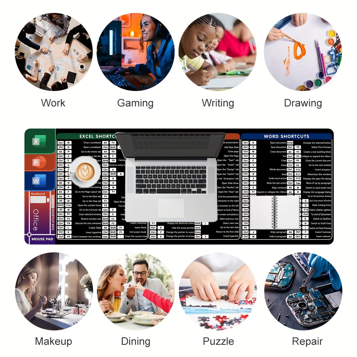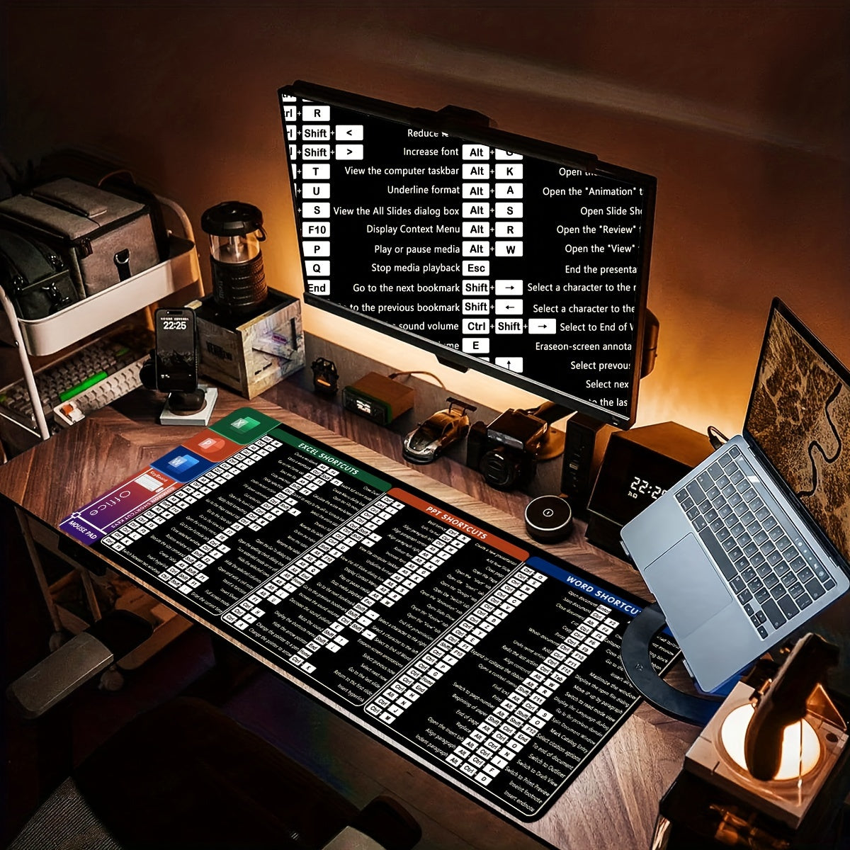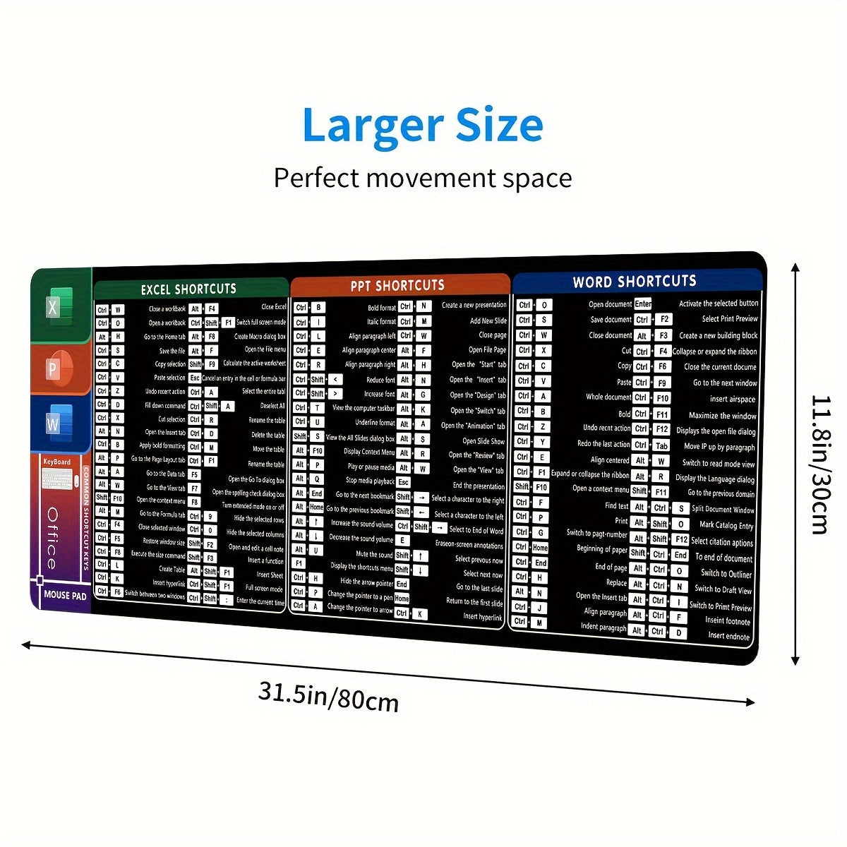 Tapis de souris de raccourci, tapis de bureau EXCEL/PPT/WORD raccourci 31. 5 X 11. 8 pouces tapis de souris de clavier, tapis de souris de jeu 3D pour salon chambre à coucher, décoration de la maison pour les joueurs, tapis de souris cadeau avec base en c