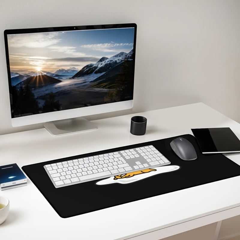 Tapis de Souris Gudetama Sanrio - Tapis de Bureau en Caoutchouc Mignon pour Ordinateur et Accessoires, Noir avec Motif Dessin Animé Jaune, Essentiel Élégant et Durable pour l'Espace de Travail, Tapis de Bureau Maison | Accessoire de Bureau Chic | Tapis en
