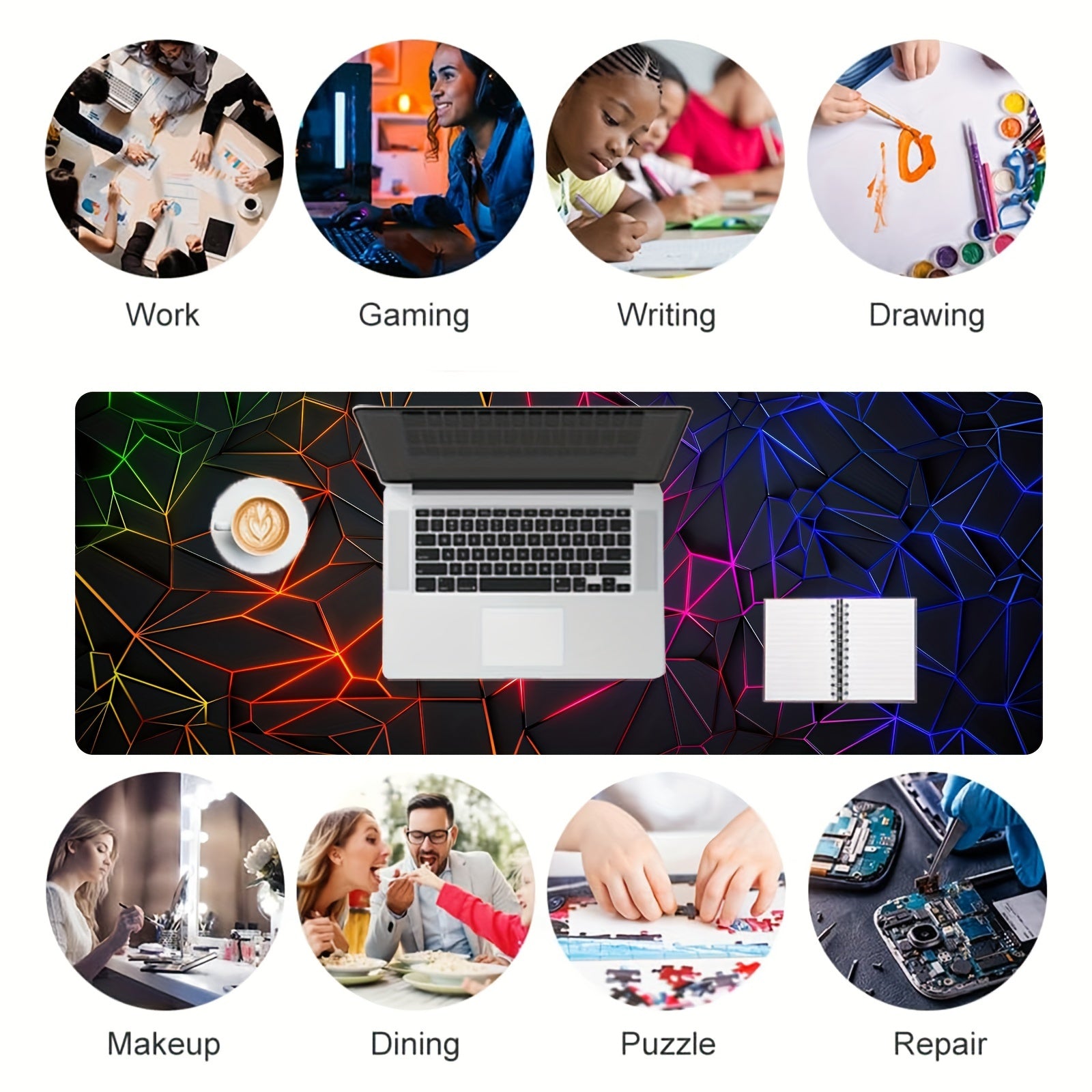 Tapis de souris XXL multifonctionnel Grand tapis de bureau pour le travail, les jeux, l'écriture et l'artisanat, base antidérapante, bords cousus durables, facile à nettoyer, idéal pour une utilisation au bureau et à la maison.
