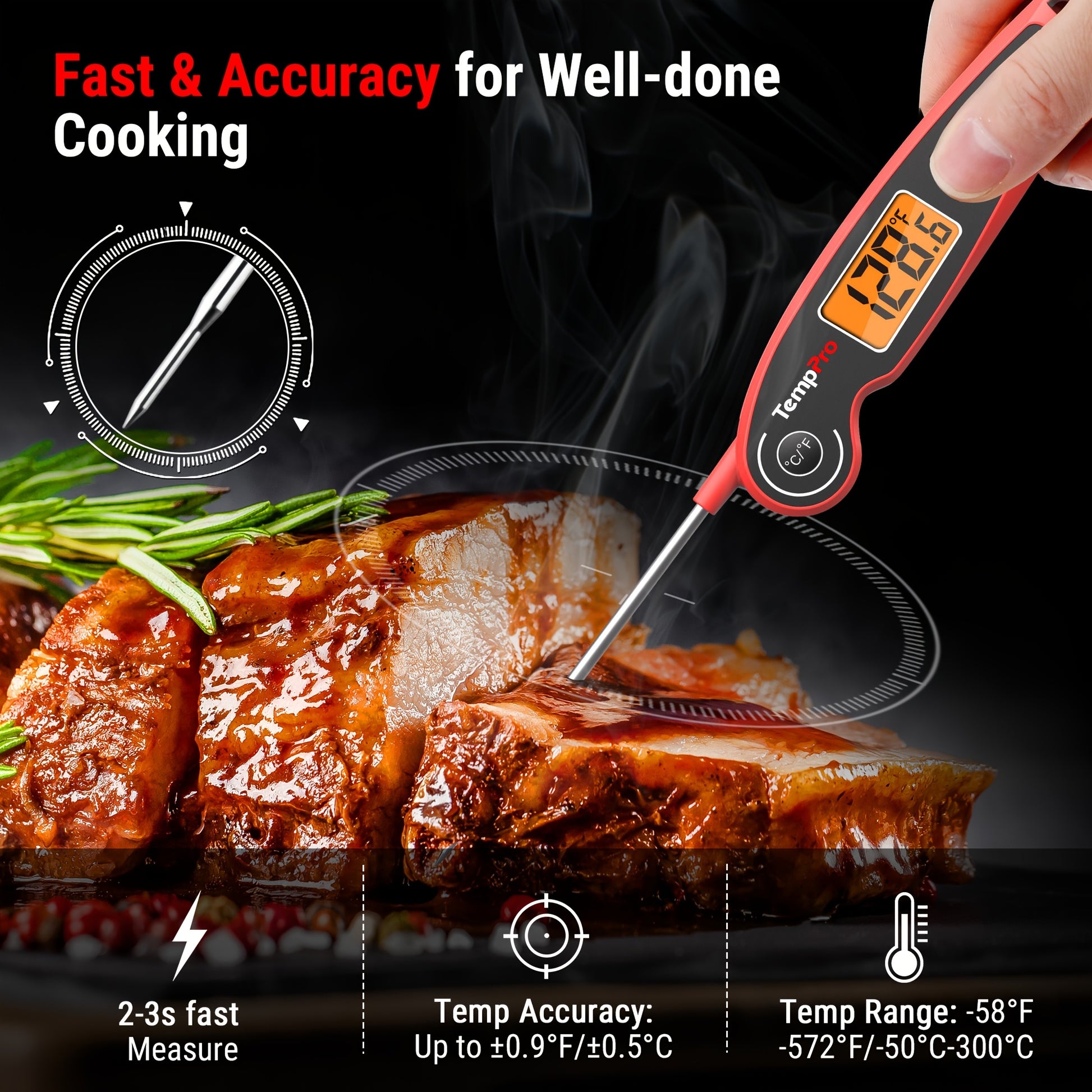 ThermoPro F05 Digital Meat Thermometer for Cooking with Motion Sensing, Food Thermometer for Kitchen BBQ Oil Grill Smoker Candy Thermometer