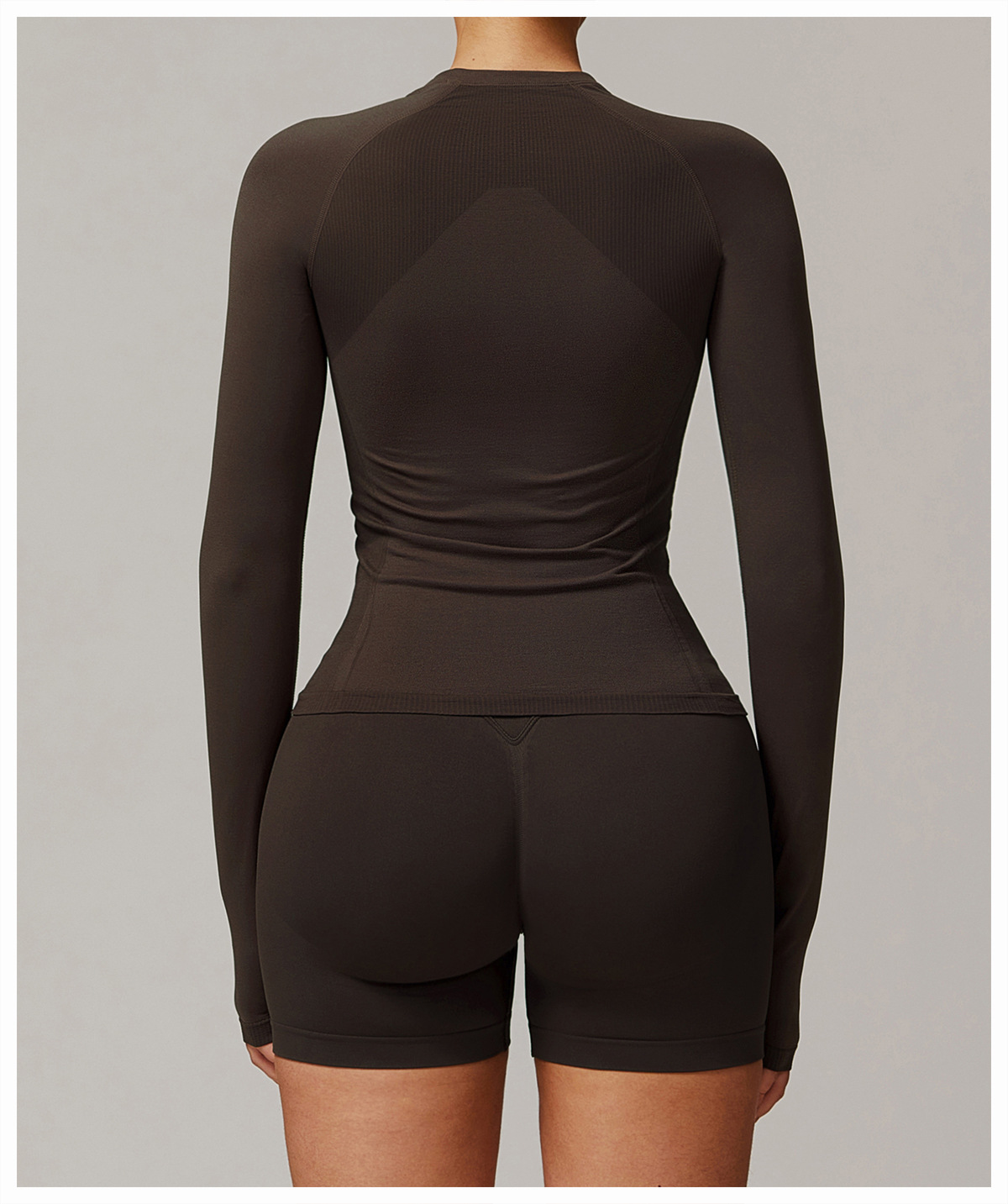 Threaded Tight Seamless Long Sleeve Yoga T shirt Quick Drying Workout Clothes Women Running Sport Long Sleeve Top