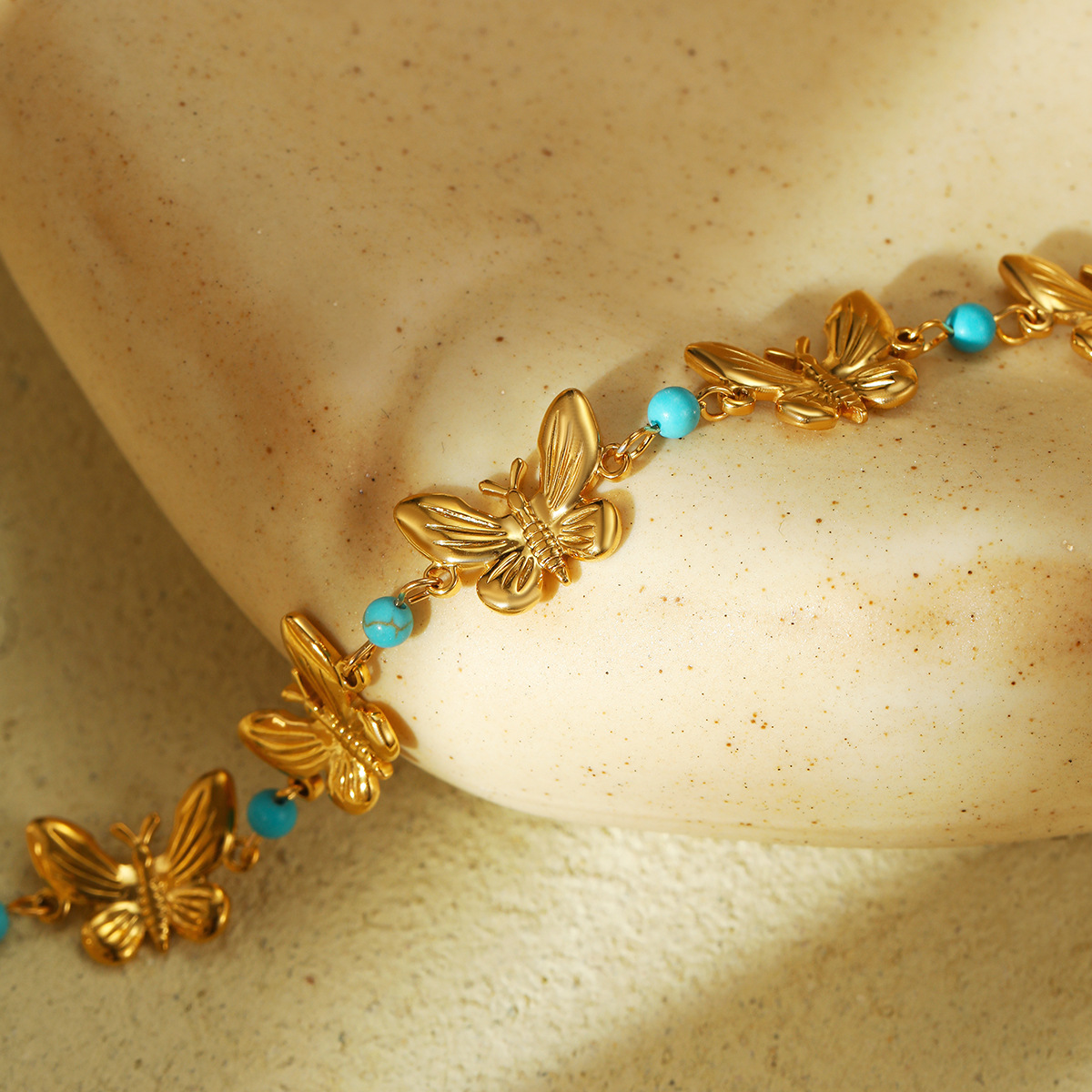 Trend Five Butterfly Titanium Steel Necklace Women 18K Gold Plated Personalized Minority Beaded Stainless Steel Embellished
