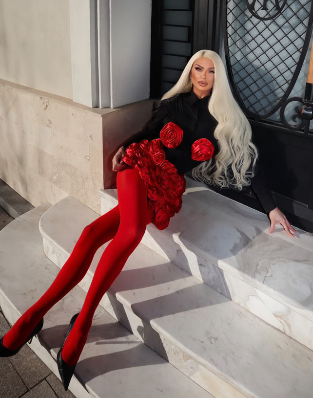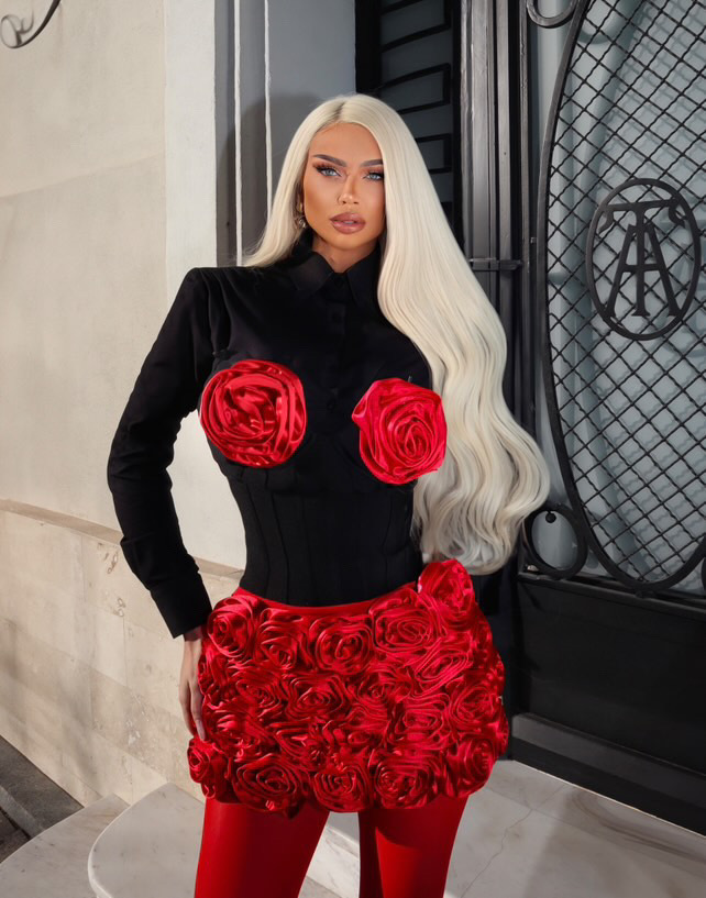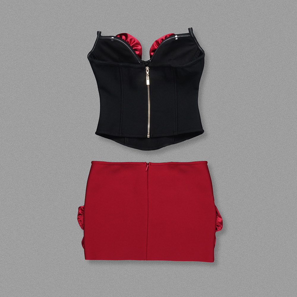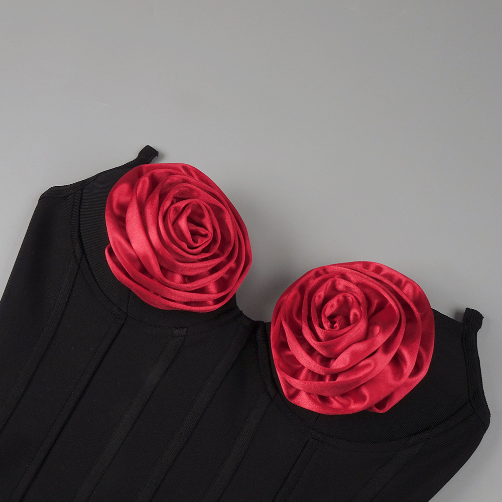Tube Top Floral Three Dimensional Decoration Top Hip Skirt Dress Christmas Casual Two Piece Sets