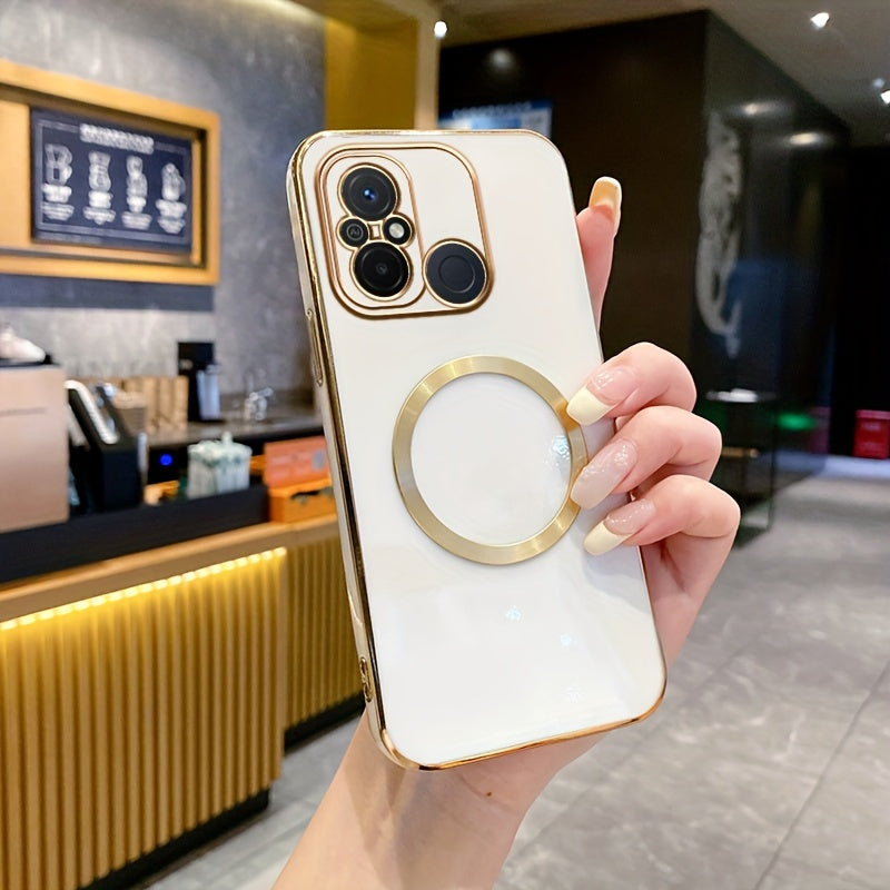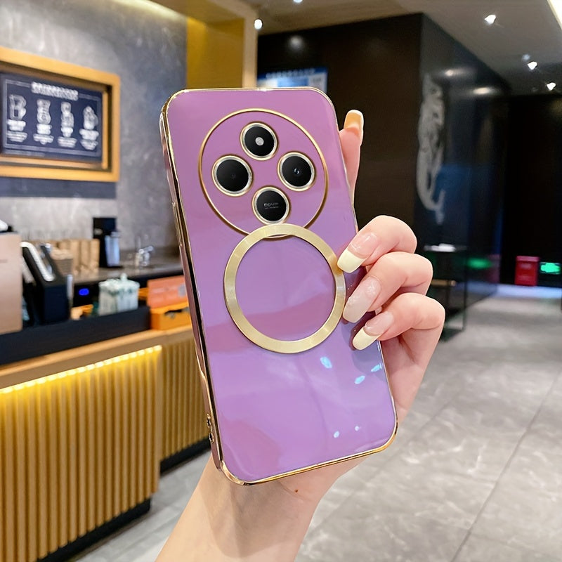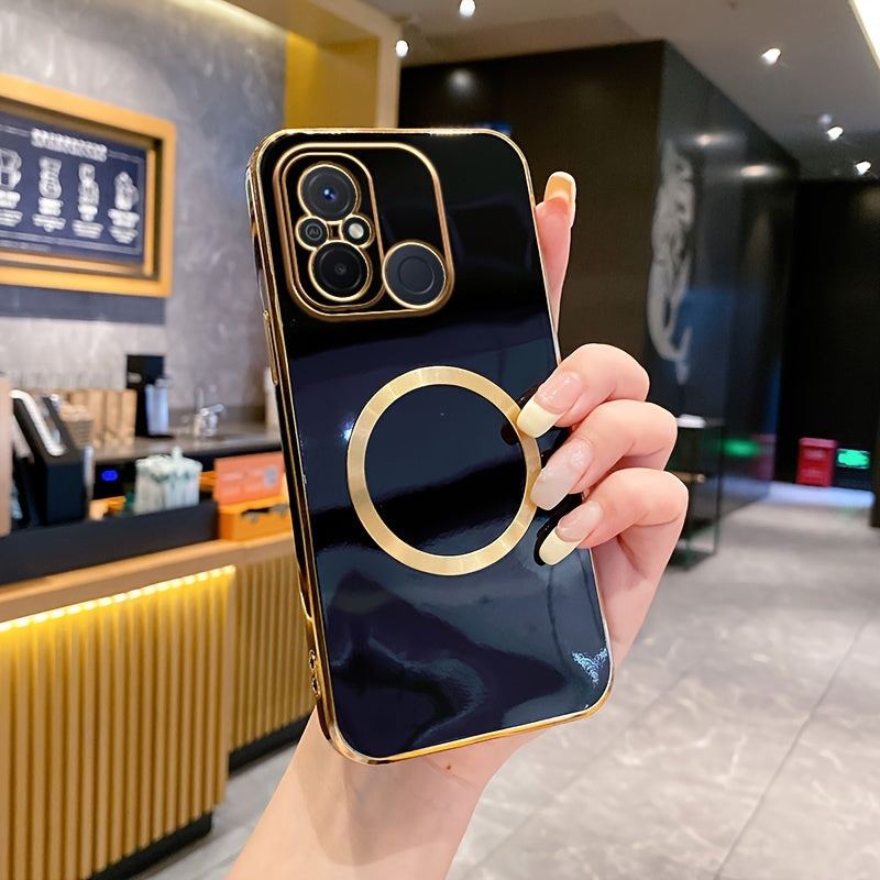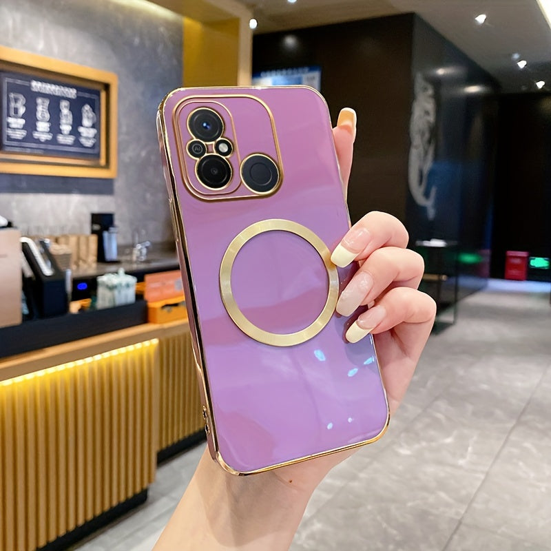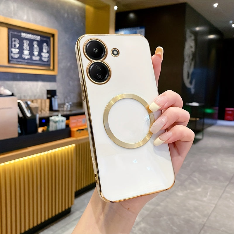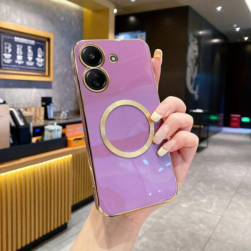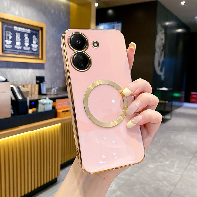 Une nouvelle housse de téléphone avec une monture de lentille tout-en-un de qualité supérieure, une anneau magnétique doré, un couvercle arrière électroplacé en TPU pour les modèles Redmi 12C, 13, 13C, 14C 4G et divers autres numéros de modèle.