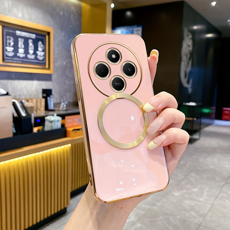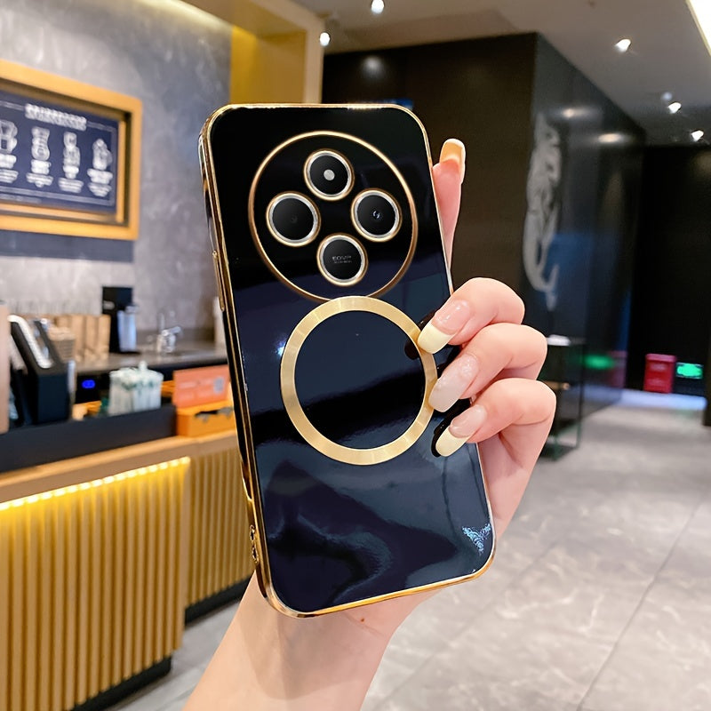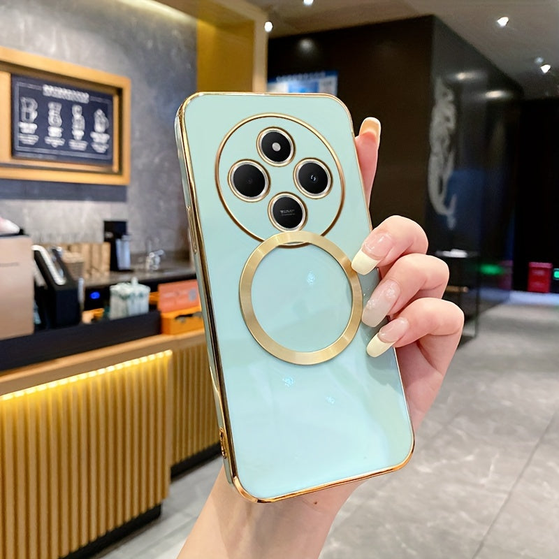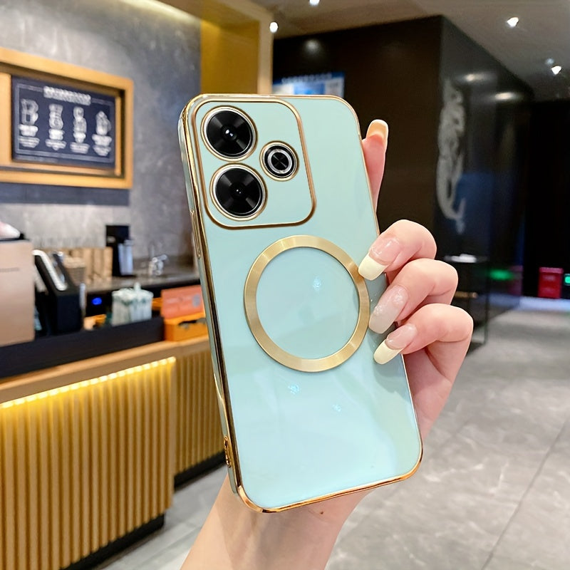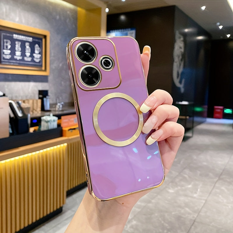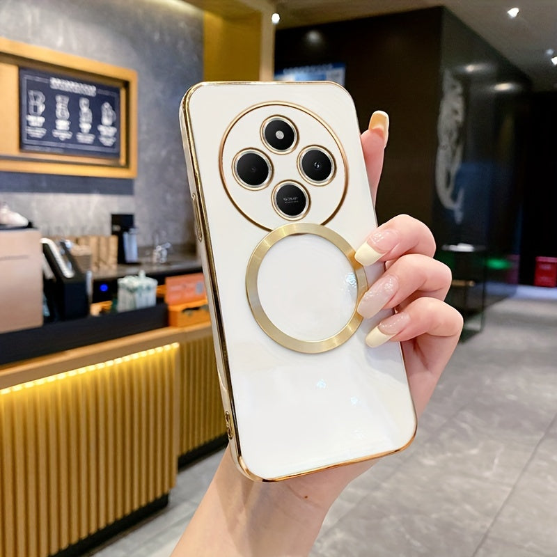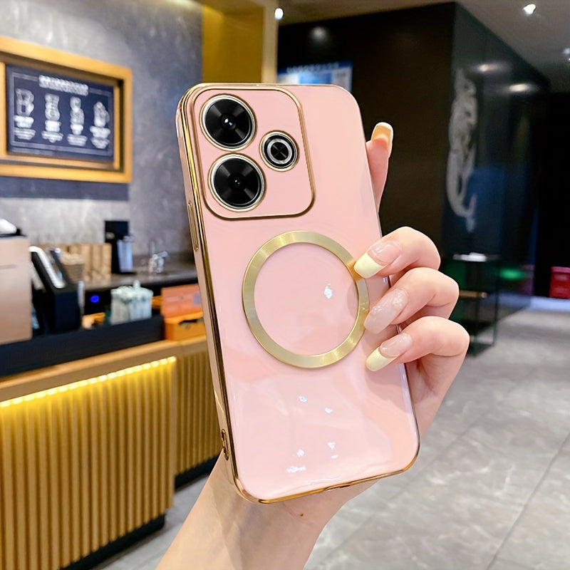 Une nouvelle housse de téléphone avec une monture de lentille tout-en-un de qualité supérieure, une anneau magnétique doré, un couvercle arrière électroplacé en TPU pour les modèles Redmi 12C, 13, 13C, 14C 4G et divers autres numéros de modèle.