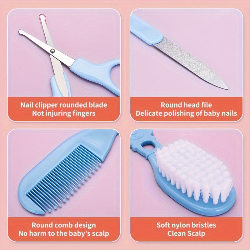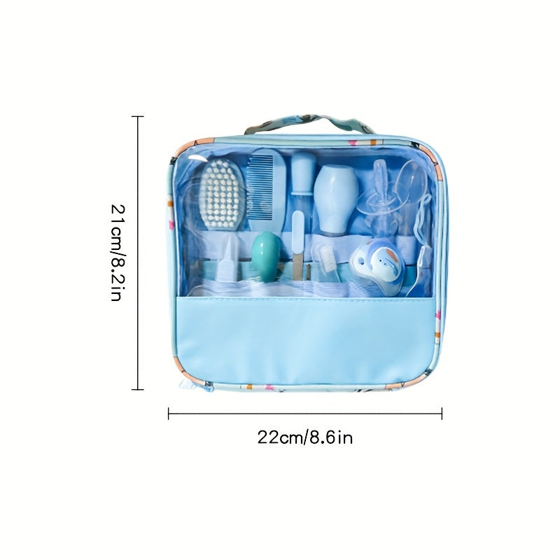 UNICHERRY 13pcs Youngsters Healthcare & Grooming Kit - Comprehensive Portable Set in Pink or Blue with Nasal Aspirator, Tongue Cleaner, Nail Clippers & More - Ideal Youngsters Shower Gift, Youngsters Grooming Essentials|Organized Grooming Set|Durable Plas