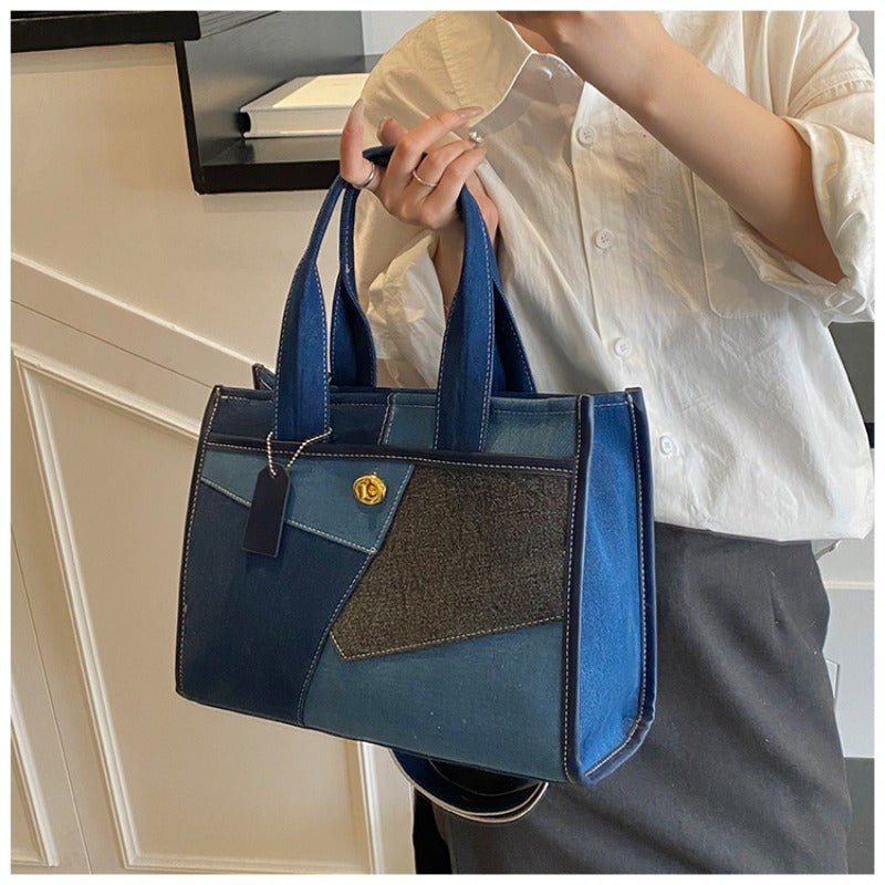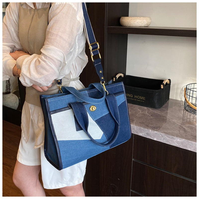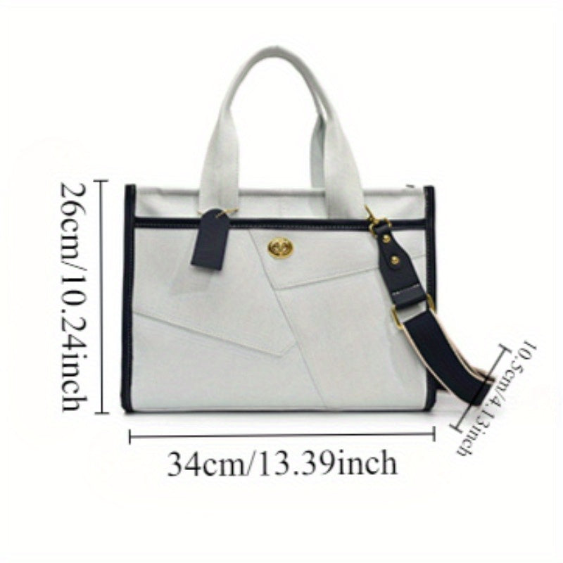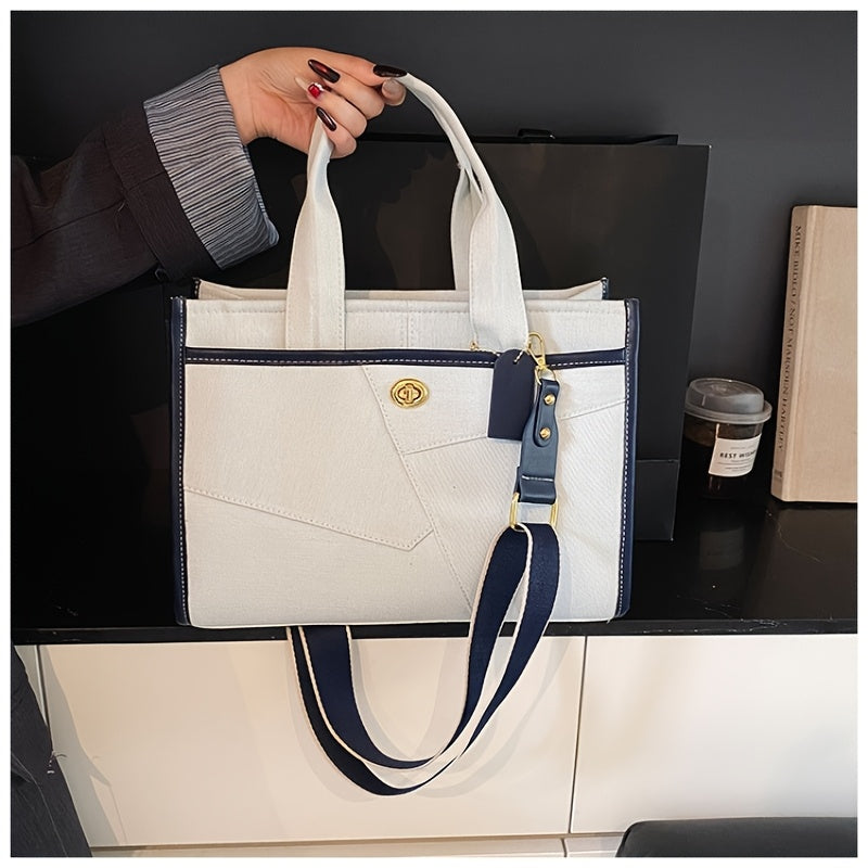 URCON RADUO Women'S Stylish Color Block Shoulder Bag - Geometric Pattern, Polyester, Buckle Closure, Casual Tote with Detachable Strap, White, Black, Blue, Green, Pink, Purple