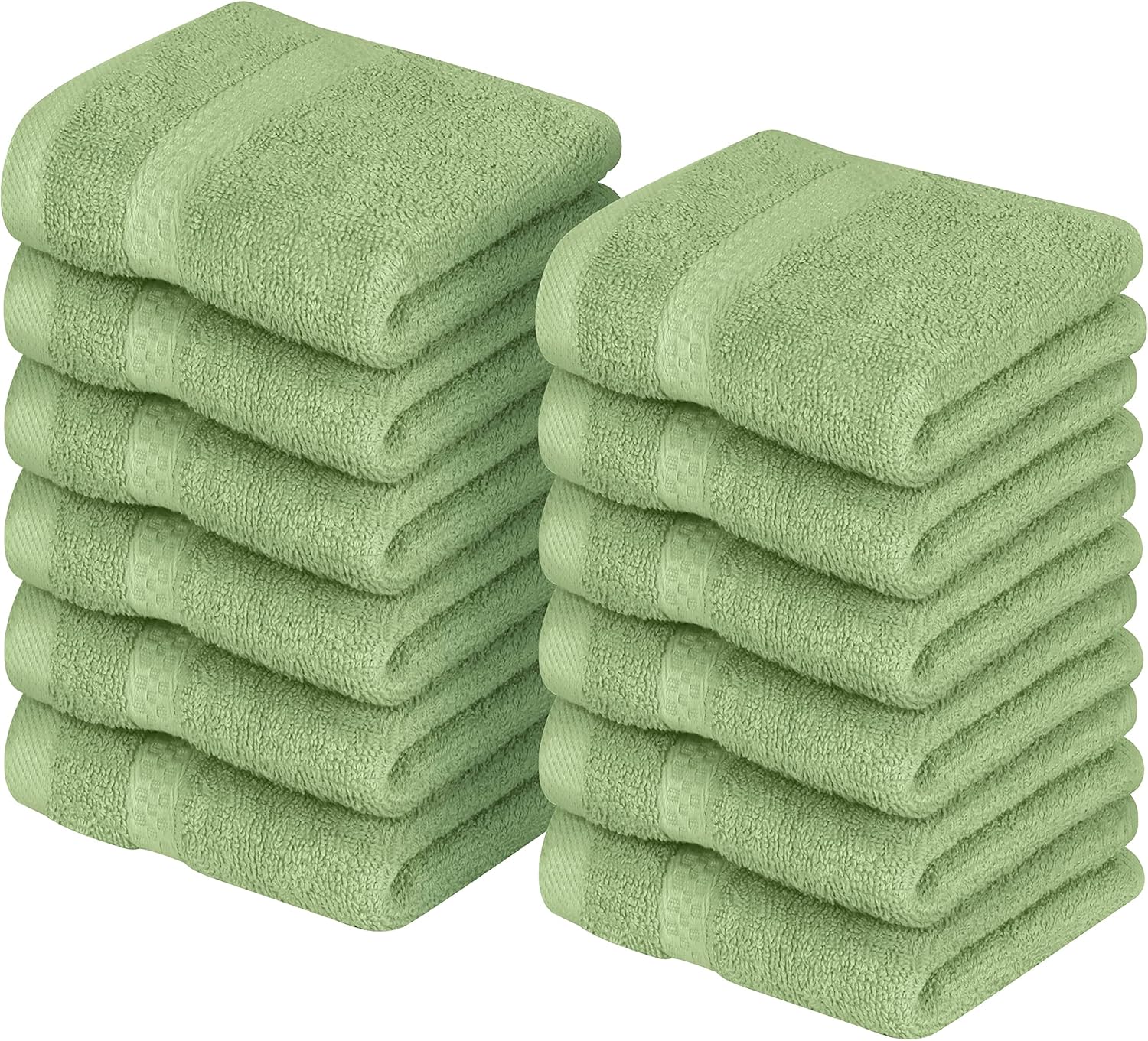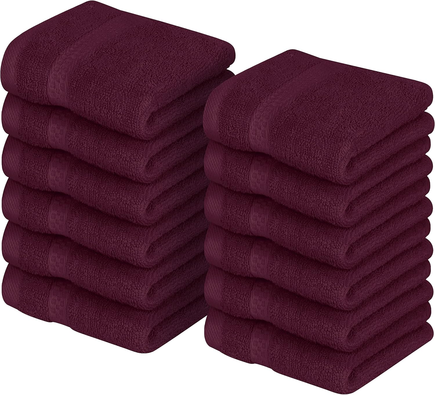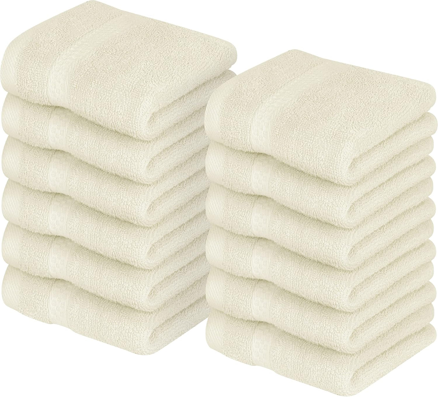 Set of 12 - Included 12 luxury cotton washcloths in measuring 12 by 12 inches each. Manufactured with 100% combed ring-spun cotton are meant to sufficiently cater to all your needs.