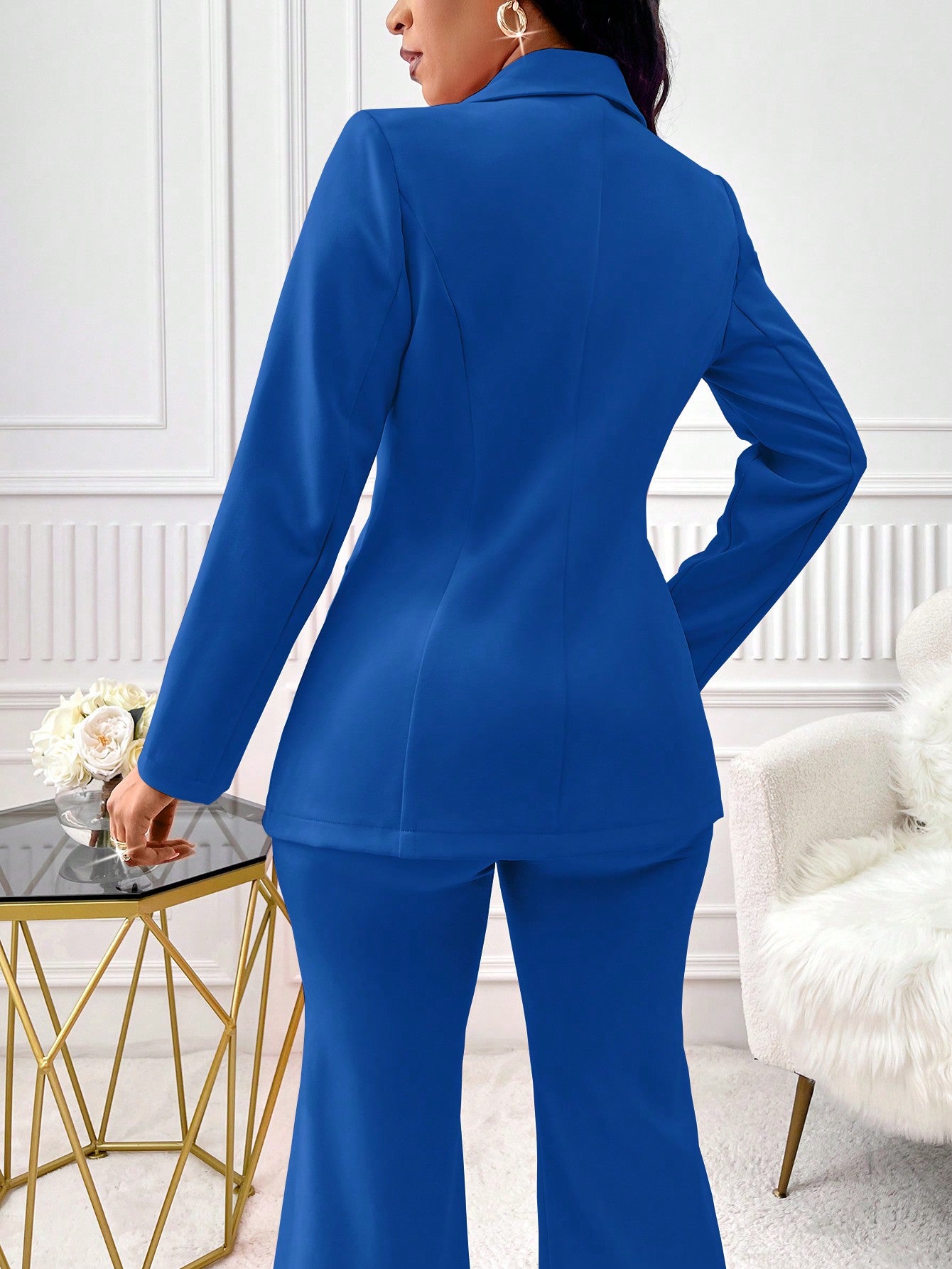 VaVaLuxe Women's Solid Color Simple Daily Long Sleeve Suit Jacket