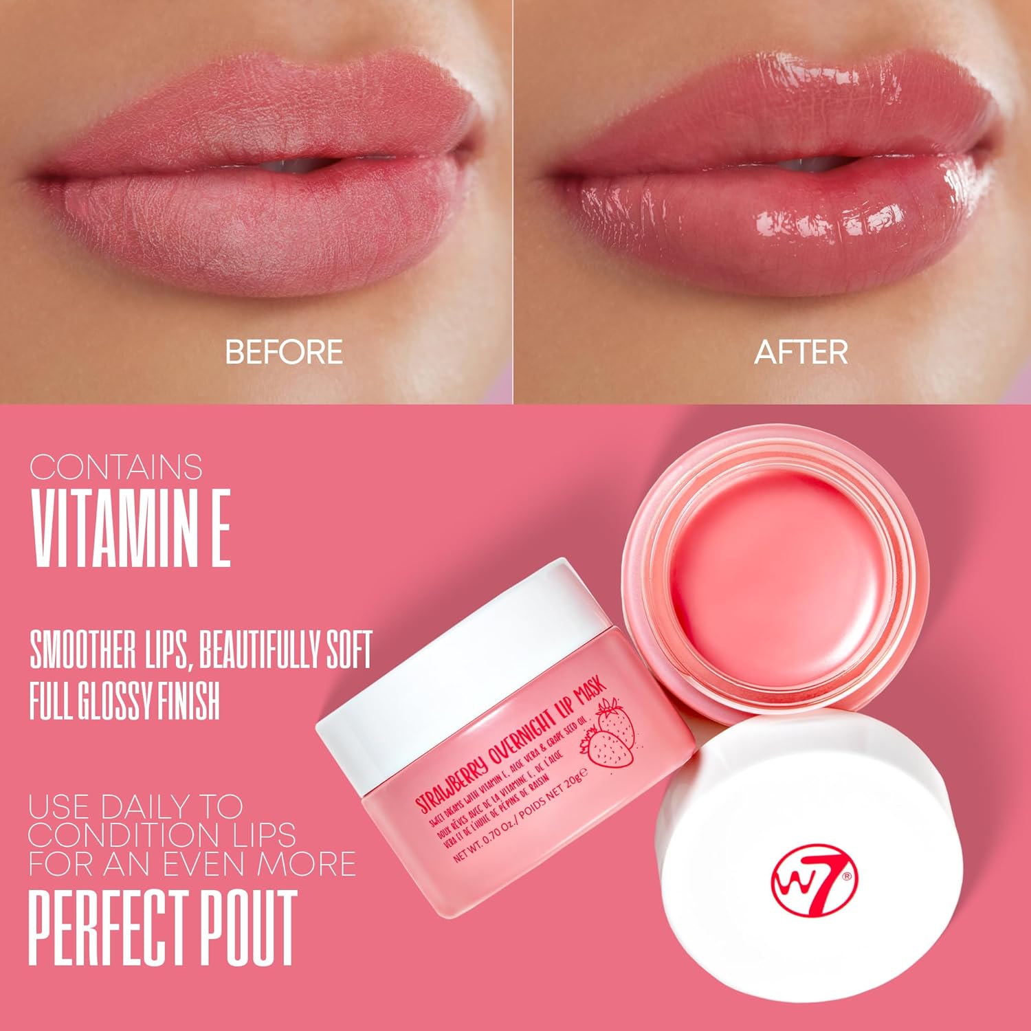 W7 Super Sweet Dreams Strawberry Lip Mask - Vitamin E, Aloe Vera and Grape Seed Oil - For Hydrated, Full Looking & Irresistible Lips - 0.67 Fl Oz