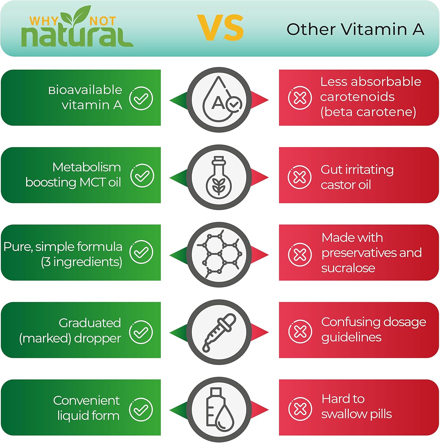 Why Not Natural Vitamin A Drops 10000 IU - Liquid retinyl Palmitate with Coconut MCT Oil, Vegan micellized VIT A Supplement for Skin, Acne - 1 oz sublingual Tincture