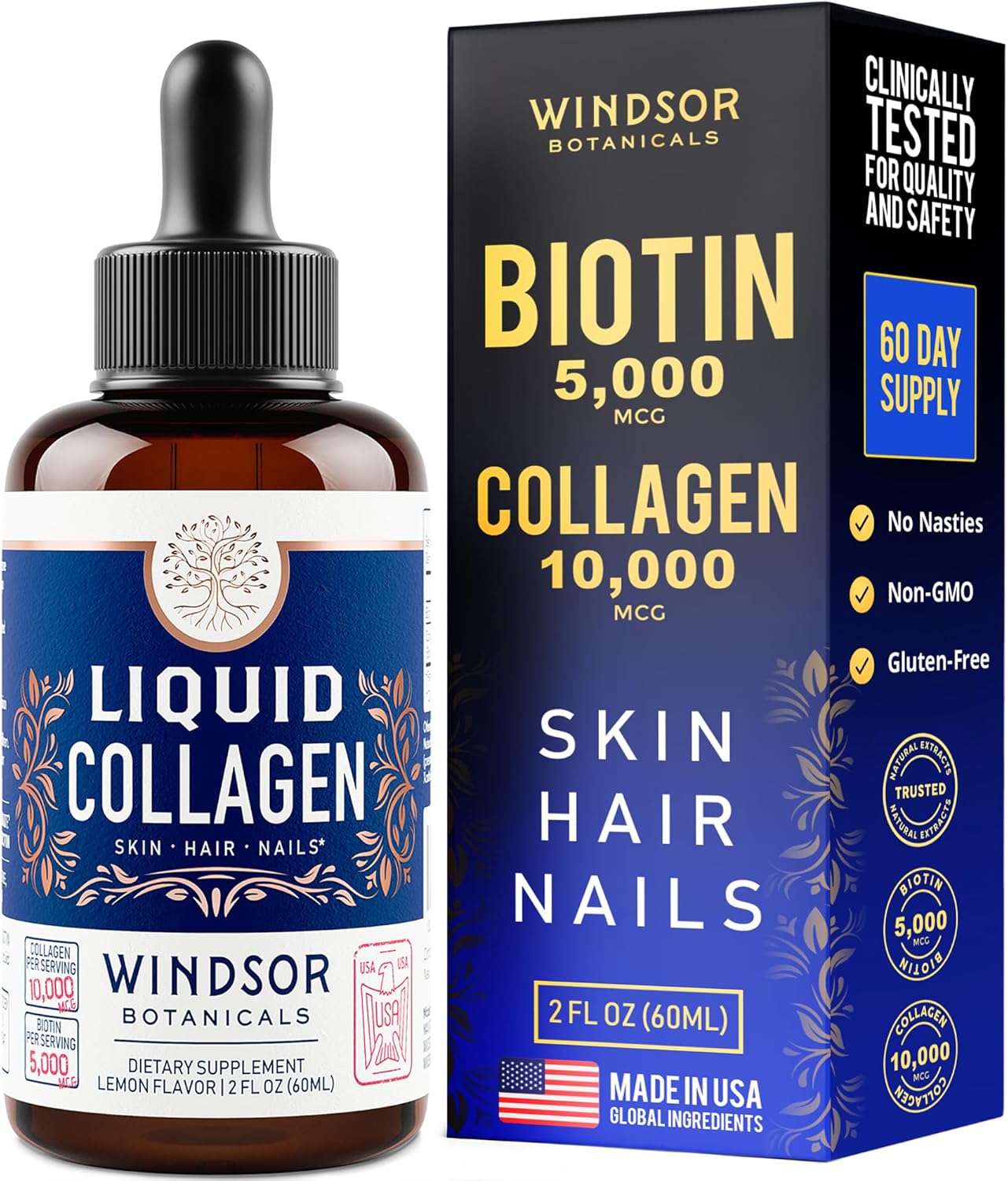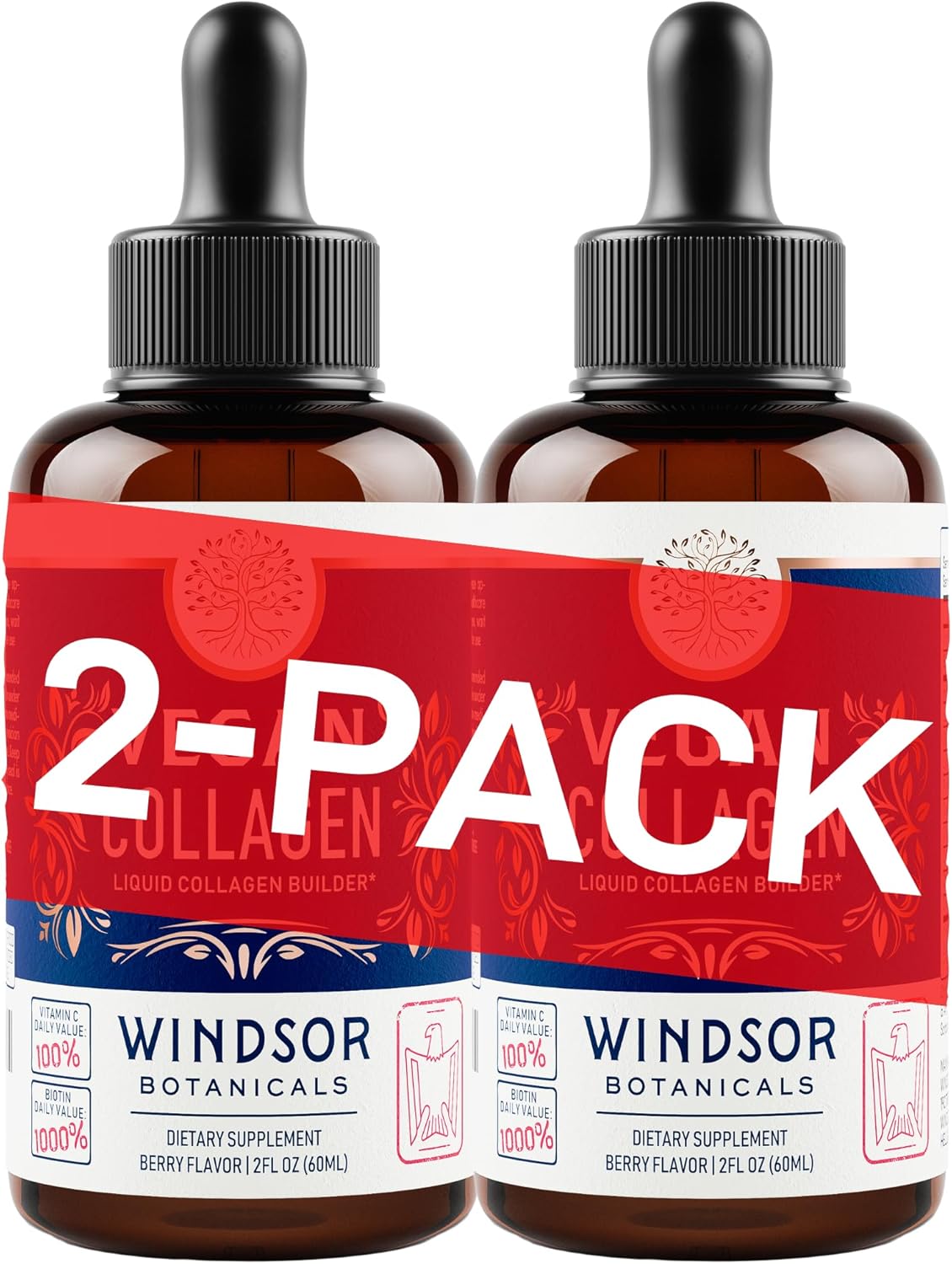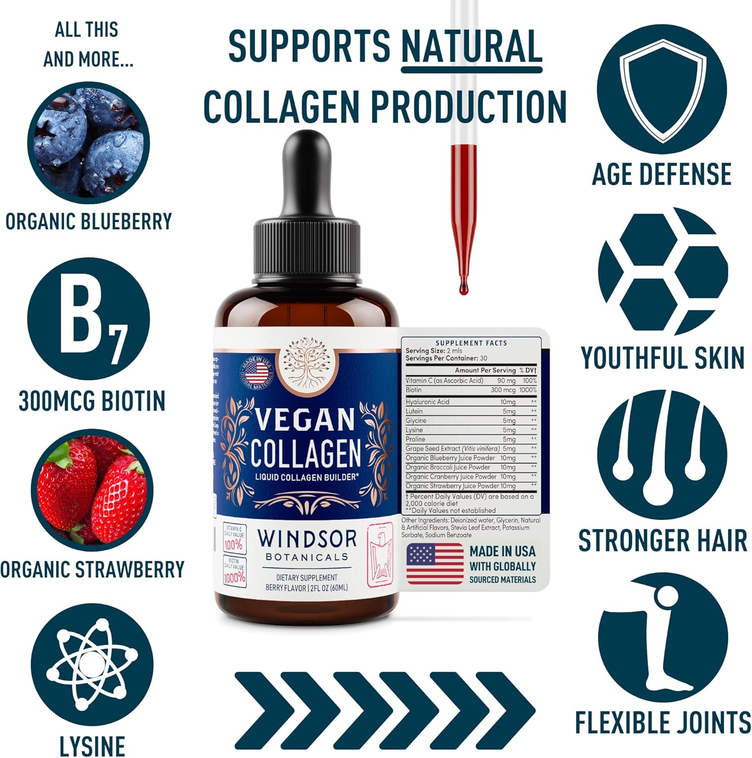 WINDSOR BOTANICALS Vegan Collagen Builder Liquid Supplement - Collagen Booster with Vitamin C, Biotin, Hyaluronic Acid & Amino Acids - Organic Fruit & Vegetable Blend - 60ml, 30 Day