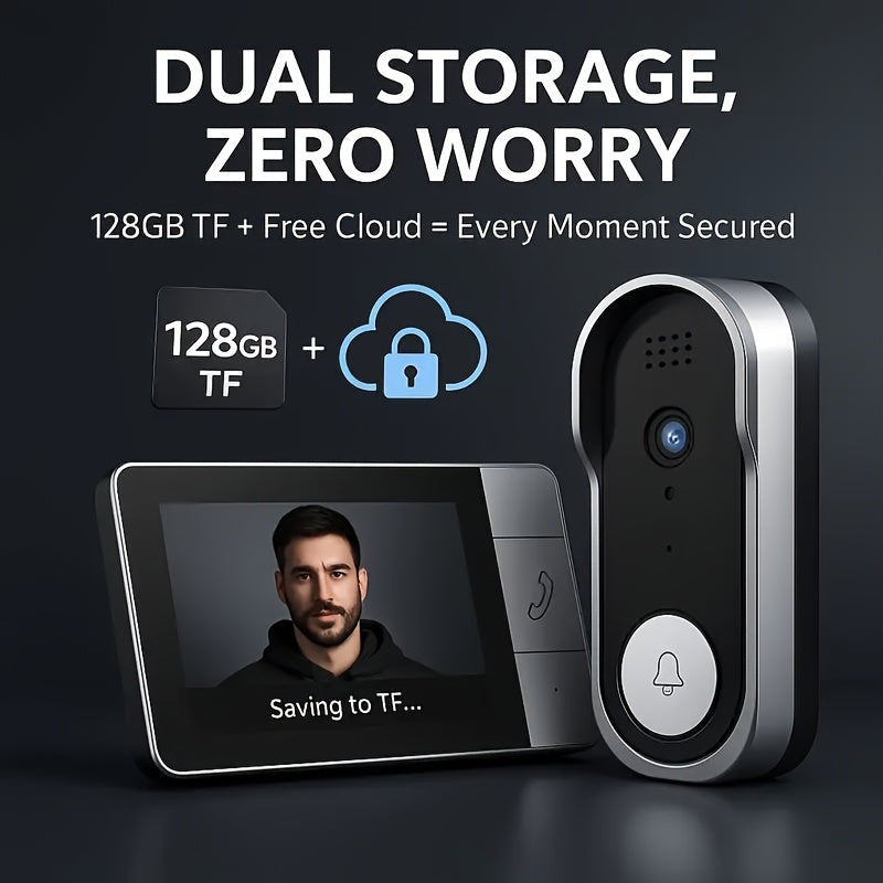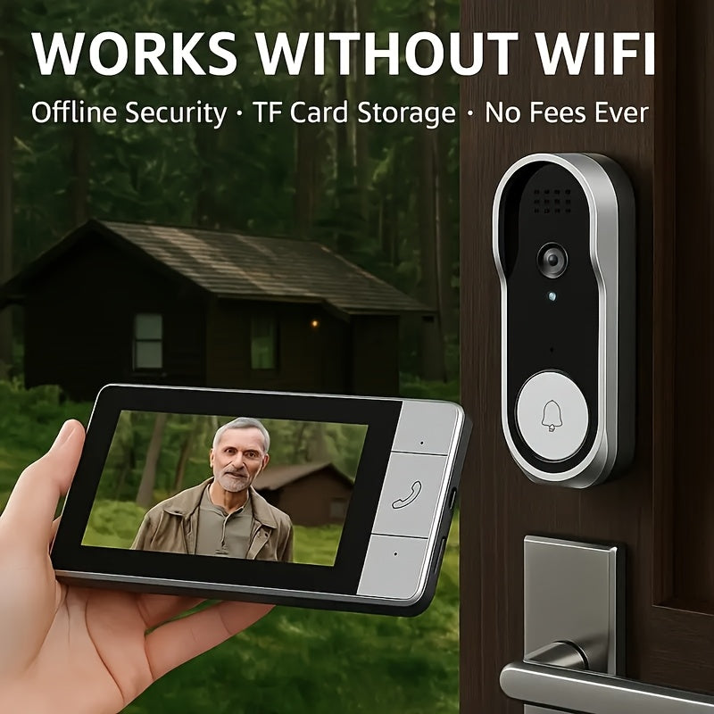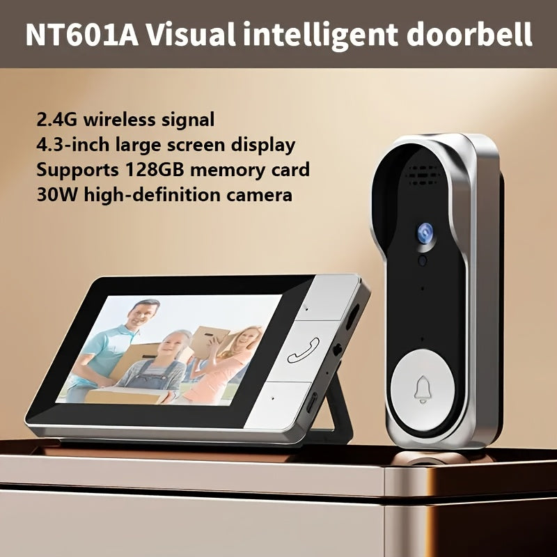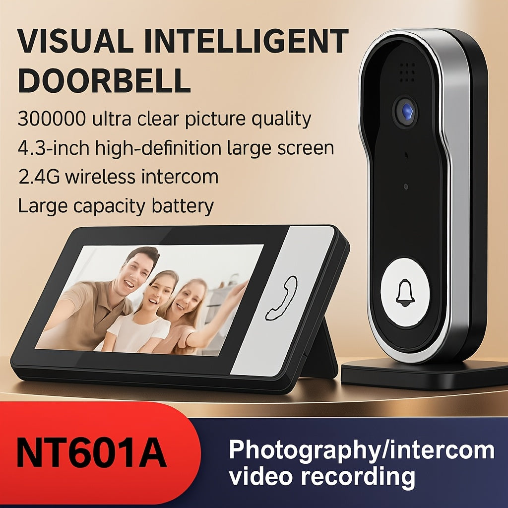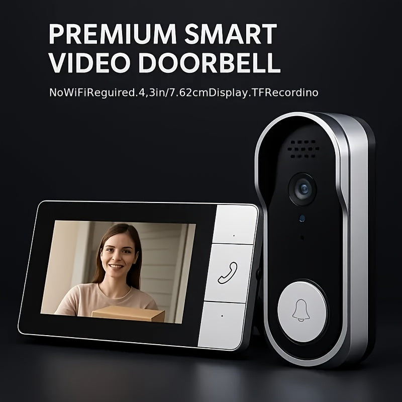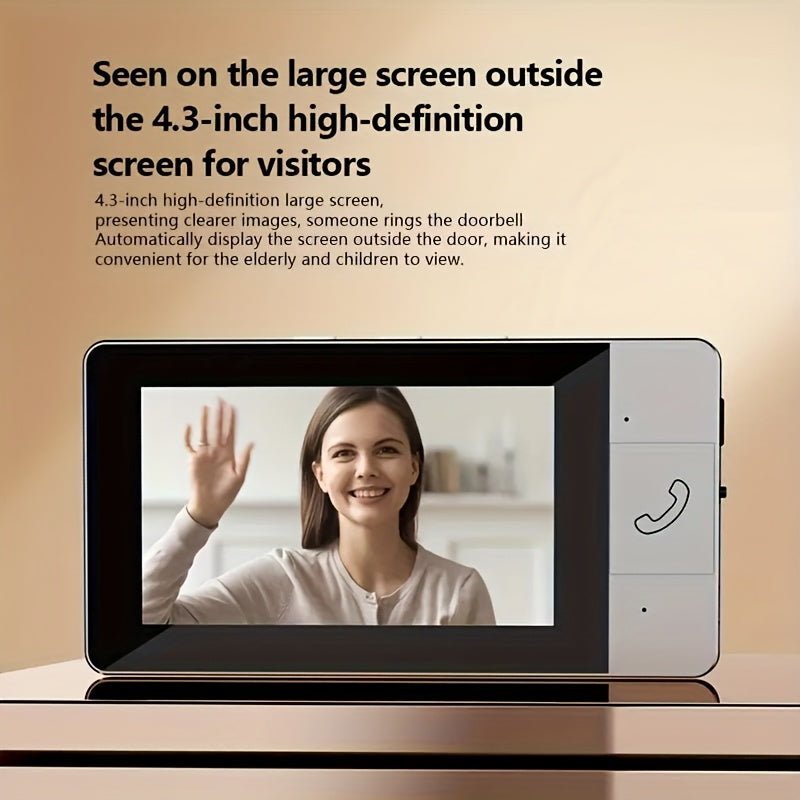 Wireless Smart Video Doorbell Camera, 4.3-Inch Large Screen, Infrared Night Vision, Two-Way Audio, Auto Snapshot, Trans Flash Card Storage, No Monthly Fee, No WiFi Needed, Long Battery Life, Easy Installation, Perfect Choice For Home Security