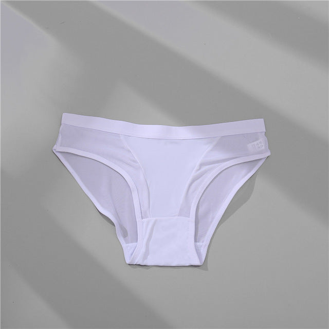 Women Briefs Low Waist Mesh Solid Color Briefs Cotton Crotch Panties