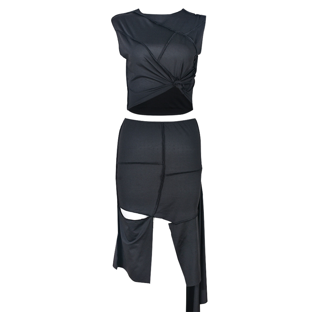 Women Clothing Summer Beggar Dress Cropped Exposed Irregular Asymmetric Trend Sexy Two Piece Set