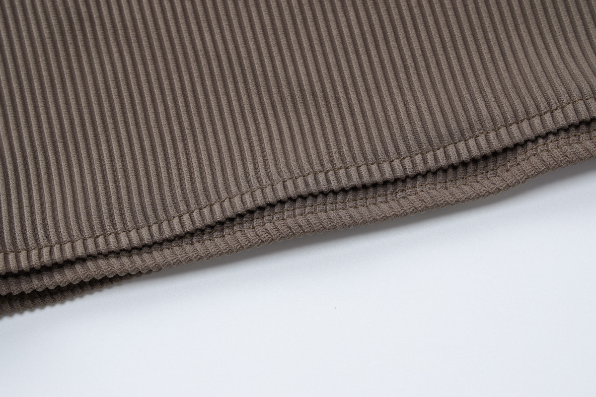 Women Clothing Summer Long Sleeve Swing Collar Rib Dress Two Piece Set Casual Set Women